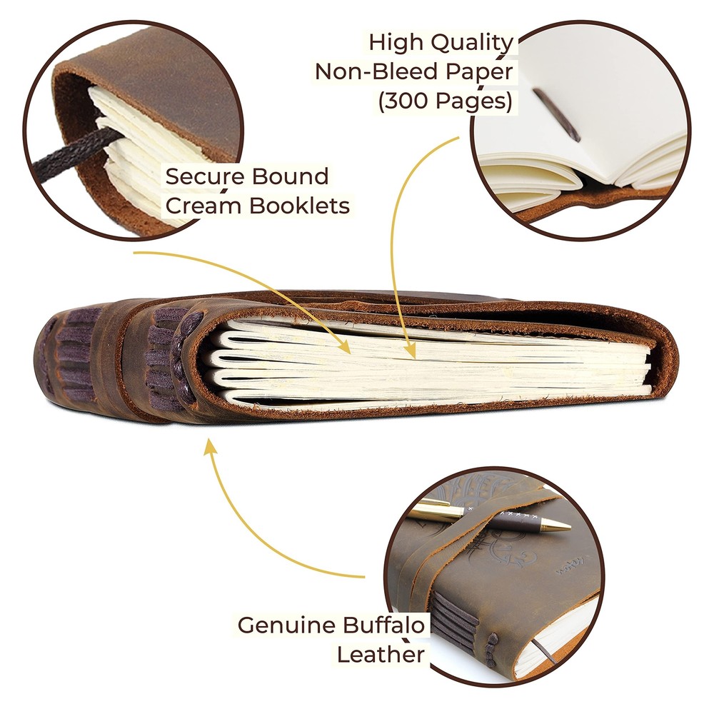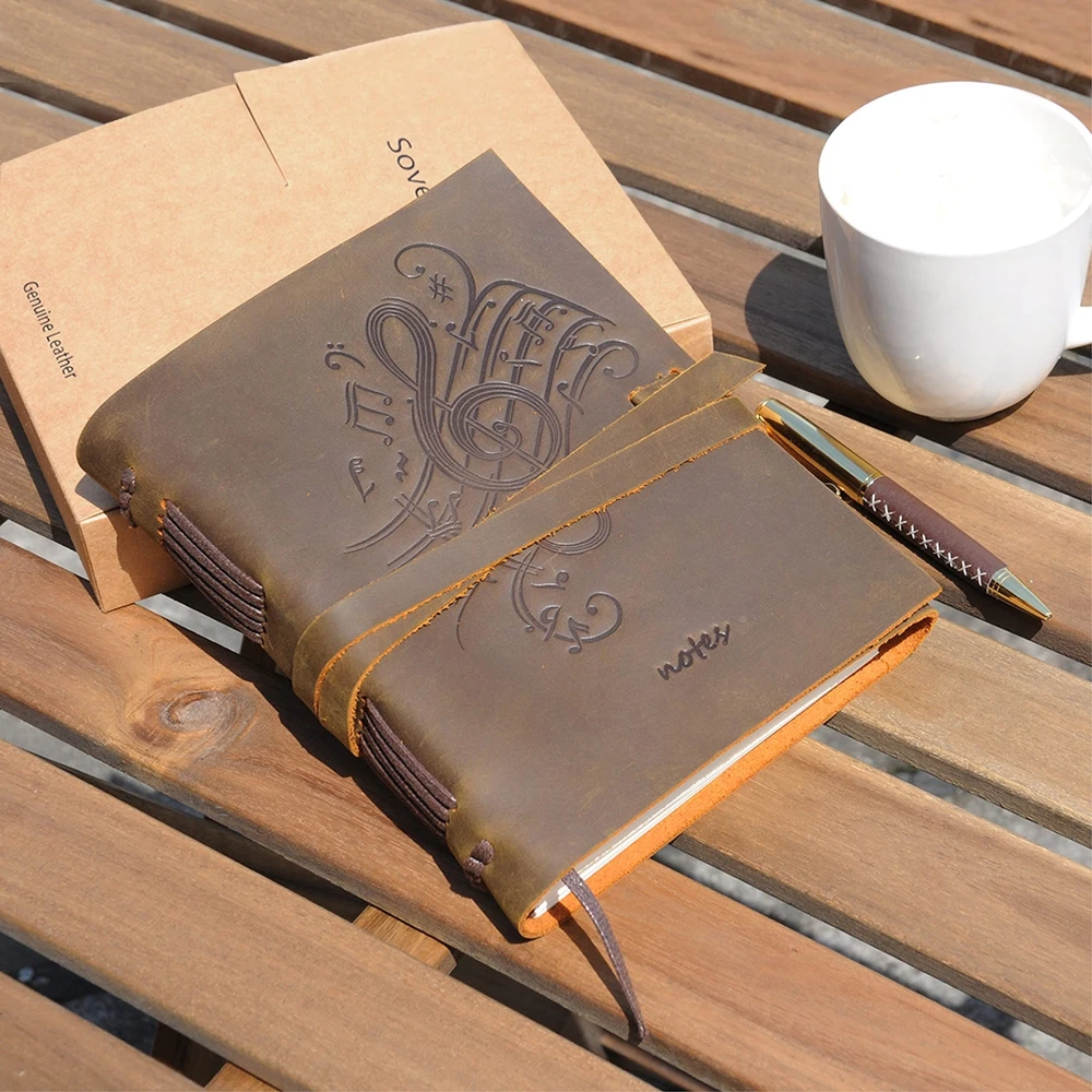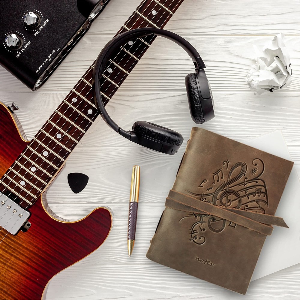 Description Features: UNIQUE GIFT SET: Handmade leather journal with beautiful Music Notes embossed front soft cover with matching bookmark, designer pen and hidden pen holder. Presented in an eco-friendly recycled box. A timeless gift for that special someone who loves to write. PREMIUM LEATHER: Crafted with delicate yet super tough buffalo leather, including a long strap that secures the journal firmly. Our genuine leather is thicker than competitors and offers lifetime durability with lasting softness. RUSTIC DESIGN: Achieves a unique and distressed look when scratched and features decorative stitching for added charm. Coated with special natural oils that make handling a joy. Plus, it has a wonderful authentic leather smell that inspires you to write daily. QUALITY CREAM PAPER: 300 premium unlined multipurpose sheets for notes, daily plans, sketches, inspiring ideas, memories and more. Zero bleed through with fountain pens. Not refillable. PERFECT SIZE: 8x6" made to suit a wide range of writing styles. A percentage of our profits go to Afrinspire - a not-for-profit organization that helps educate and provide local facilities to African communities. Product Details: Brand: Sovereign-Gear Color: Brown Theme: Music Sheet Size: A5 Pages: 300 Cover Material: Leather Style: Music Ruling Type: Ruled Special Feature: technical drawing, sketching, doodling, to-do or shopping lists, puzzles, diagrams, plans, maps, notebooks for men rock and roll journal for men, tune opera jazz soul music melody writing notebook, dad grandad medieval man woman girl grandmother grandma, field notes, task list, memo book, art, goals, pop star, journaling, letters, planning, reminders, travel notes, creative writing composition, diary entries, men, women, seniors, unisex children, travel, journeys, holidays, indoor outdoor, business gifts, musician music lover record music upload music, writers, poets, journalists, journalers, scribes See more Product Dimensions: 8"L x 6"W x 0.15"Th Manufacturer: Sovereign-Gear Brand: Sovereign-Gear Item Weight: 1.19 pounds Product Dimensions: 8.46 x 6.69 x 1.97 inches Item model number: SG-Music-Journal-8x6UK Is Discontinued By Manufacturer: No Color: Brown Cover Material: Leather Material Type: genuine leather, real leather and high quality thick paper Number of Items: 1 Size: 8"x6" Ruling: Ruled Sheet Size: A5 Manufacturer Part Number: SG-Music-Journal-8x6 Date First Available: March 26, 2020 Handling We will ship all orders within 3 business day of payment. Delivery We Do Not Ship Outside of the Continental US. Return Policy All items qualify for returns within 30 days of receipt. Buyer is responsible for return shipping on any item that is not damaged. Feedback We take our reputation seriously, we buy and sell online, so we understand the value of trust. If you are unsatisfied with your order, please contact us and we will work with you to resolve it to your satisfaction.