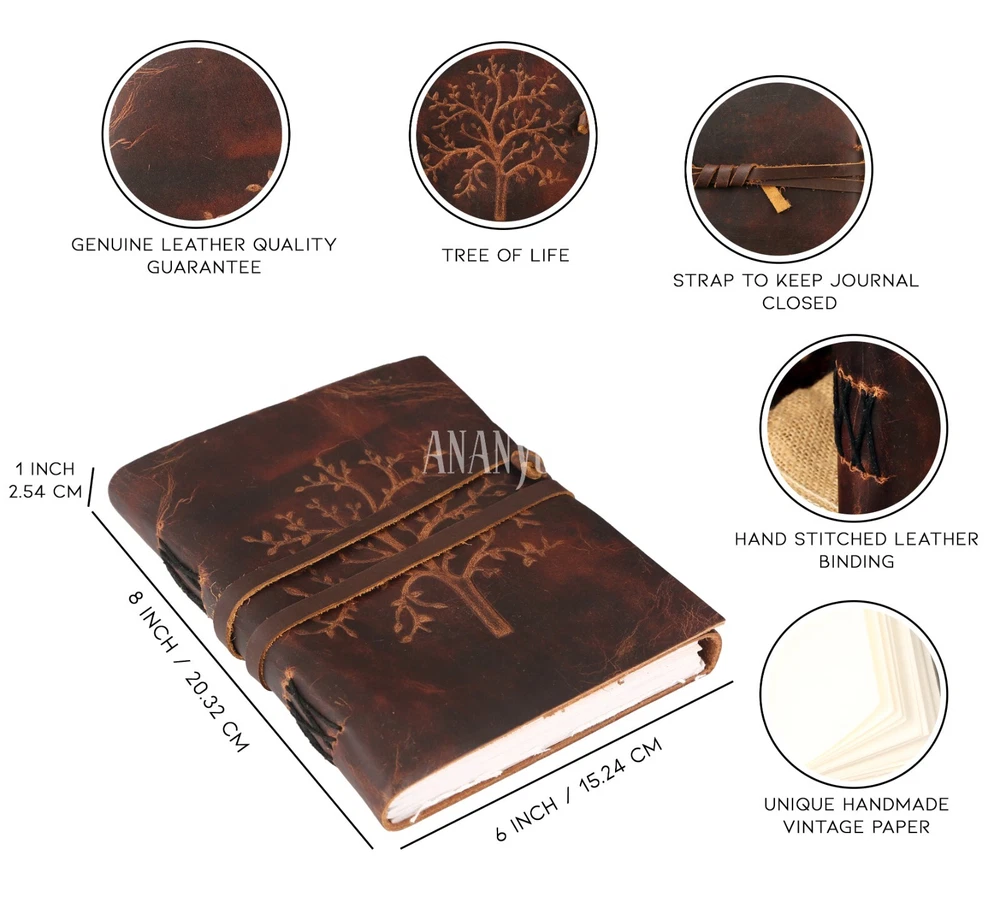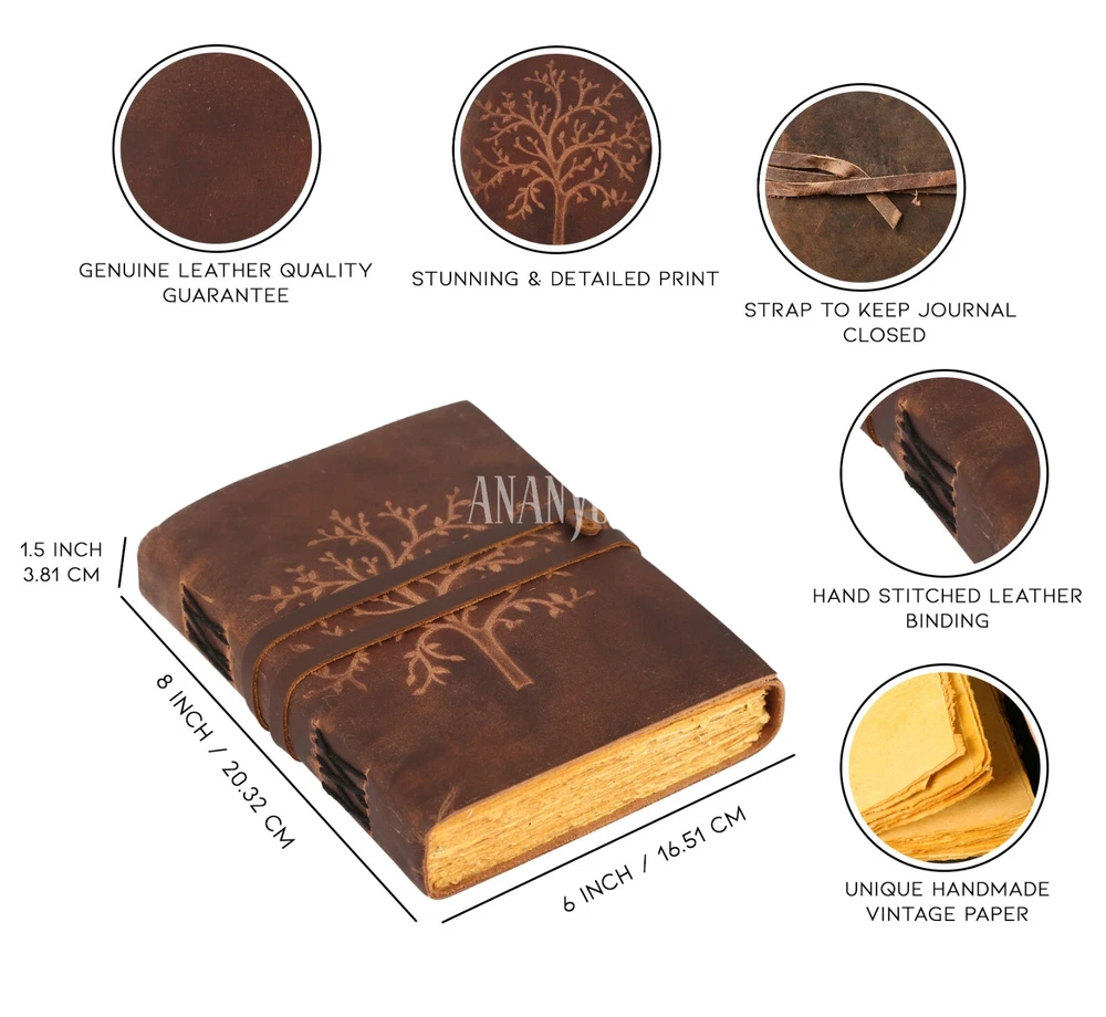 Ananyom Leather Journals – A Timeless Blend of Elegance & Functionality Experience the perfect combination of vintage charm and modern practicality with Ananyom Leather Journals . Designed for those who appreciate quality and craftsmanship, these exquisite journals are more than just writing companions—they are a reflection of your creativity and personal journey. Key Features: ✔ Exquisite Craftsmanship – Each journal is carefully handcrafted from premium leather, ensuring durability, a luxurious feel, and a timeless look. ✔ Unisex & Versatile – Perfect for both men and women, this leather-bound journal suits writers, artists, travelers, and professionals alike. ✔ Premium Leather & Quality Paper – The rich aroma of genuine leather paired with thick, high-quality pages offers an exceptional writing experience, free from ink bleed-through. ✔ Multi-Purpose Use – Whether for journaling, sketching, note-taking, or travel documentation, this notebook is your ideal creative companion. ✔ Perfect Gift Choice – A thoughtful and elegant gift for birthdays, anniversaries, graduations, or any special occasion for those who cherish writing and artistry. Embrace the art of journaling with Ananyom Leather Journals —where sophistication meets practicality, and every page tells a story Handmade Leather Journal Vintage Leather Notebook Tree of Life Journal Soft Leather Diary Rustic Writing Notebook Travel Journal for Men & Women Leather Sketchbook Refillable Leather Journal Artistic Drawing Notebook Antique Leather Bound Journal Personalized Writing Journal Unisex Leather Notebook Handmade Travel Diary Classic Leather Bound Journal Premium Gift Journal