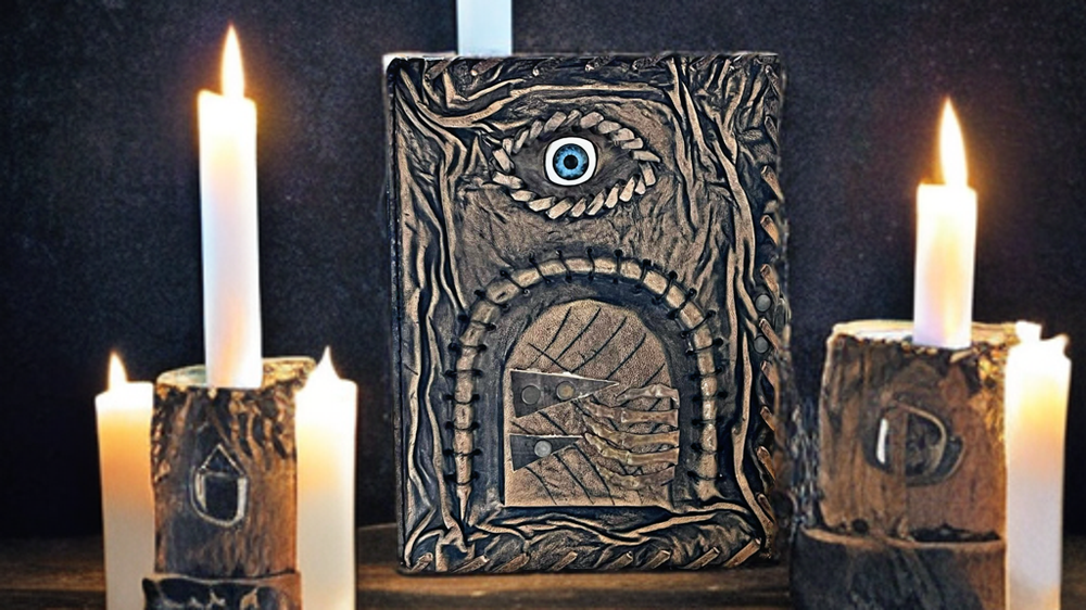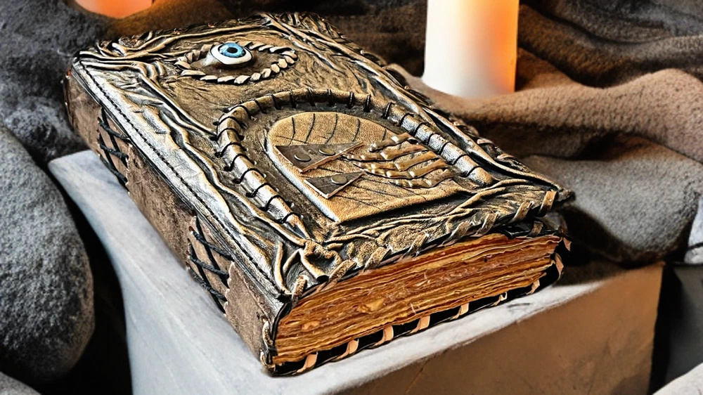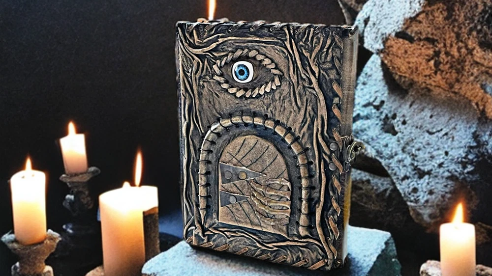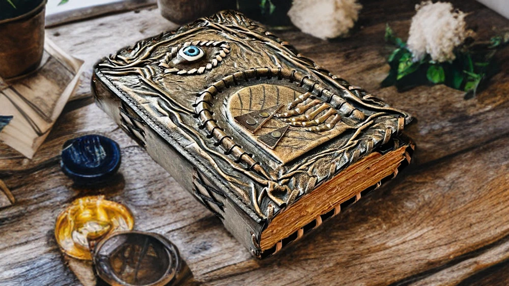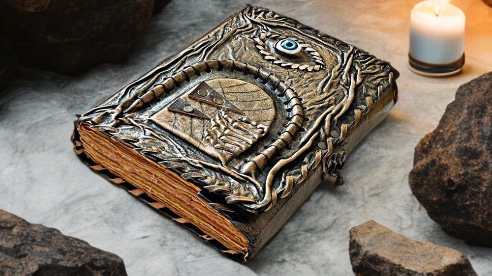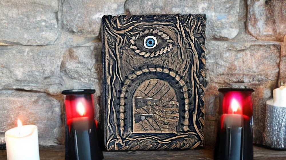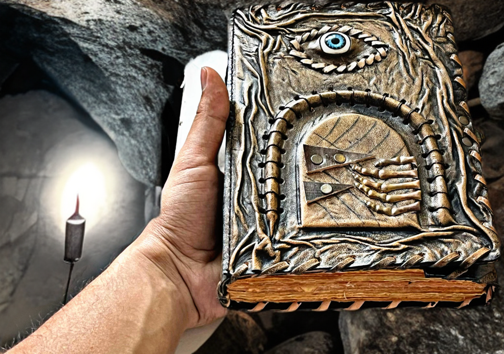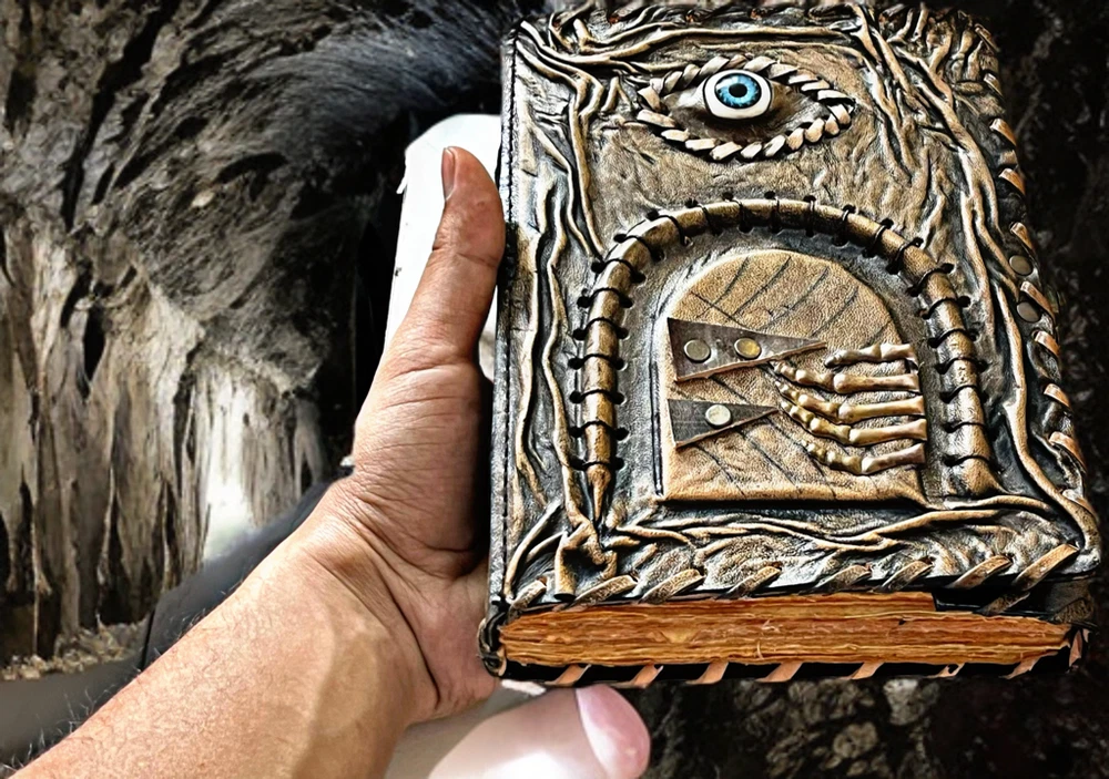 3D Eye Leather Spell Book – Handmade Journal with Leather Doors – Blank Book of Shadows for Witchcraft, Rituals, and Creative Magic Unlock the mysteries of your mind and soul with this Handmade Leather Journal , a stunningly unique creation designed for those who walk the path of magic, mystery, and imagination. This isn’t just a journal—it’s a portal. Crafted from rich, genuine leather, the cover features an eerie, lifelike 3D eye set between two intricately designed leather doors , which open to reveal the all-seeing gaze within. Whether it's watching over your spells or guarding your deepest secrets, this enchanted eye feels alive—making each journal completely unique and captivating. Inside, you'll find blank, unlined pages made of high-quality handmade paper, perfect for writing rituals, drawing sigils, documenting dreams, or crafting your personal Book of Shadows . The rough deckle edges add an ancient, grimoire-like charm to every page. Features: 👁️ 3D Realistic Eye Design – A magical centerpiece embedded in the cover, symbolizing intuition, awareness, and the hidden realms. 🚪 Opening Leather Doors – Functional leather flaps that open and close to reveal the mystical eye—like a book that guards its own secrets. 📜 Blank Handmade Paper – Thick, unlined pages with deckle edges, ideal for writing, sketching, spells, or rituals. 🖤 Handmade Leather Craftsmanship – Carefully tooled and stitched by hand, giving each journal its own character and soul. 🎁 The Ultimate Gift for Mystics & Creators – A powerful gift for witches, warlocks, fantasy lovers, writers, and spiritual seekers. Whether you're crafting moonlit incantations, writing forbidden tales, or simply seeking a sacred space for your thoughts, this 3D Eye Leather Journal with Doors is a powerful and personal talisman. A journal that doesn’t just hold your magic—it watches over it .