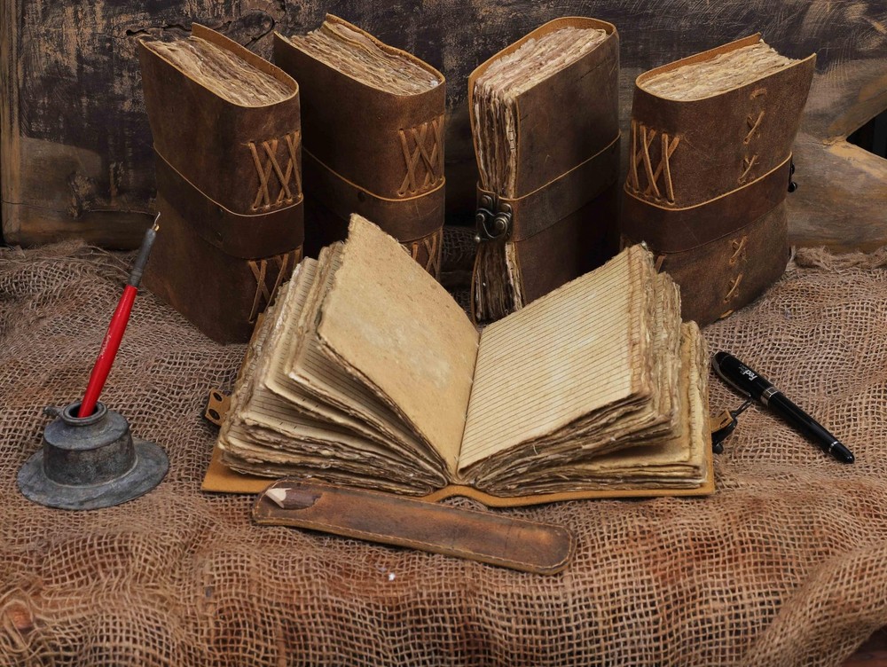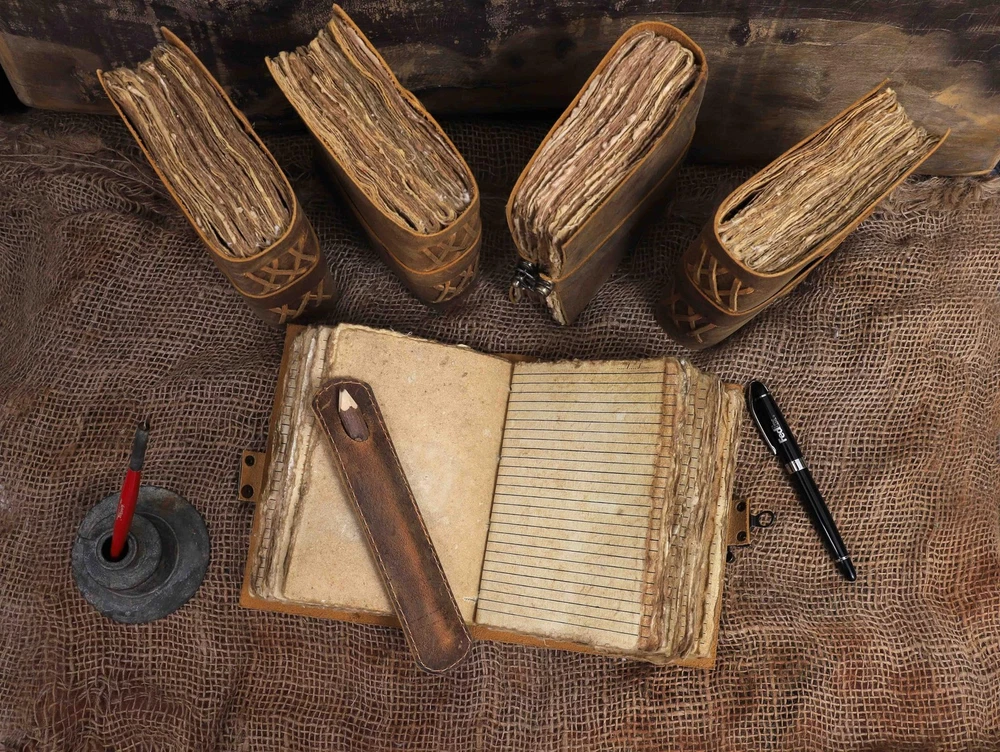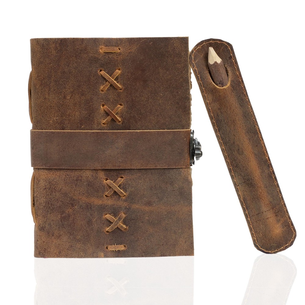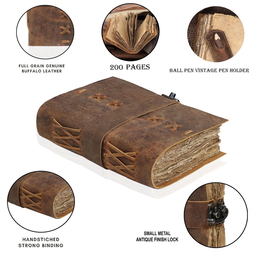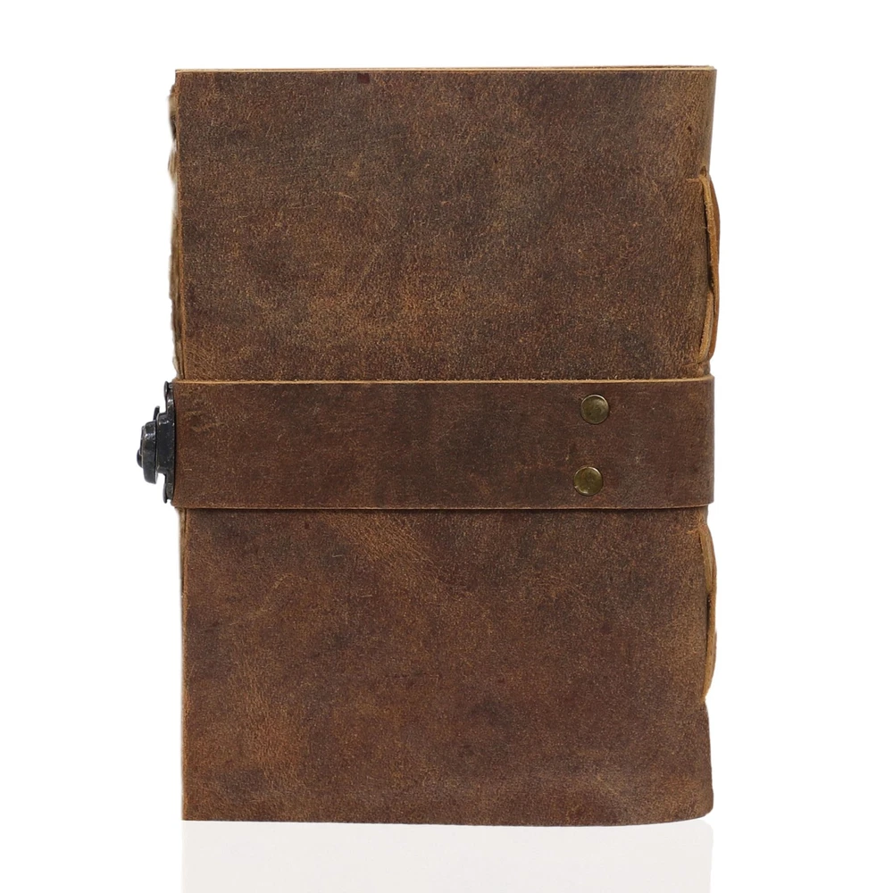 Immerse yourself in the mystical realms with this captivating Leather Bound Vintage Journal for Women. Crafted from premium leather, this journal exudes an aura of ancient wisdom and timeless elegance. The intricate embossed designs on the cover pay homage to the rich tapestry of Celtic, Norse, and Pagan symbolism, inviting you to unlock the secrets of the arcane arts. Whether you're a practicing Wiccan, a tarot enthusiast, or simply drawn to the allure of the occult, this journal provides the perfect canvas to record your spells, rituals, and profound insights. With its sturdy binding and thick, acid-free pages, this journal is built to withstand the test of time, ensuring your musings and revelations remain preserved for generations to come. Measuring approximately 10 x 7 inches, it strikes a perfect balance between portability and ample writing space. Embrace the magic within and let this Leather Bound Vintage Journal be your trusted companion on your spiritual journey. VINTAGE LEATHER JOURNAL: A Perfect Journal for Women and Men by Vintage Couture. This Vintage Journal is Made from Genuine Buffalo Leather which is naturally tanned with oils and is chrome free. As these Daily Journals are made with genuine Cruelty free leather so each vary in look and shade producing a unique item. JOURNAL NOTEBOOKS WITH STURDY BINDING: Belt Wrap around closure with Antique Bras lock to keep the papers of the journal safe when not being used. A sturdy hand stitched binding to make sure that no paper comes out loose. WATERCOLOR PAPER: This leather Sketchbook comes with handmade deckle edges paper which is made from recycled cotton waste these old Paper are No Bleed Scrapbook Paper. The Mixed Media Sketchbook is Suitable for Writing, Watercolor, Acrylic Colors, Pastel Color and all Dry & Wet Mediums. Use it like Sketch Pad, Watercolor Sketchbook etc. PERFECT GIFT: This vintage-inspired journal serves as an exquisite and timeless gift suitable for a diverse range of recipients, including women, men, teen girls, boys, and cherished grandparents. A lovely treat for your loved ones for an anniversary, birthday or graduation present, or for someone starting a new adventure VINTAGE COUTURE PROMISE: - VC Leather Bound Journal comes with the Trust and promise of Purity of craftsmanship with each Writing Journal.
