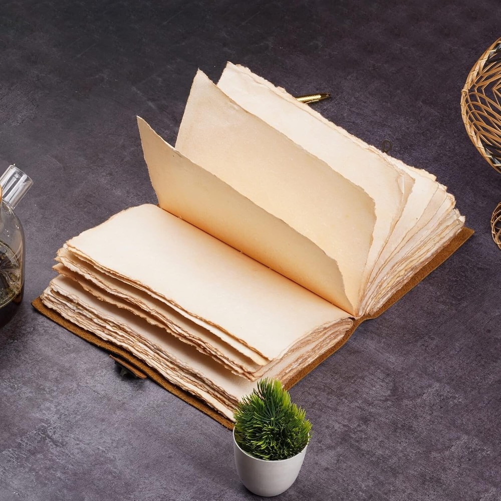 Leather Bound Vintage Journal for Women & Men - Book of Shadows - Lock Closure This Vintage Journal is Made from Genuine Buffalo Leather which is naturally tanned with oils and is chrome free. As these Daily Journals are made with genuine Cruelty free leather so each vary in look and shade producing a unique item. JOURNAL NOTEBOOKS WITH STURDY BINDING: Belt Wrap around closure with Antique Bras lock to keep the papers of the journal safe when not being used. A sturdy hand stitched binding to make sure that no paper comes out loose. WATERCOLOR PAPER: This leather Sketchbook comes with handmade deckle edges paper which is made from recycled cotton waste these old Paper are No Bleed Scrapbook Paper. The Mixed Media Sketchbook is Suitable for Writing, Watercolor, Acrylic Colors, Pastel Color and all Dry & Wet Mediums. Use it like Sketch Pad, Watercolor Sketchbook etc. PERFECT GIFT: This vintage-inspired journal serves as an exquisite and timeless gift suitable for a diverse range of recipients, including women, men, teen girls, boys, and cherished grandparents. A lovely treat for your loved ones for an anniversary, birthday or graduation present, or for someone starting a new adventure
