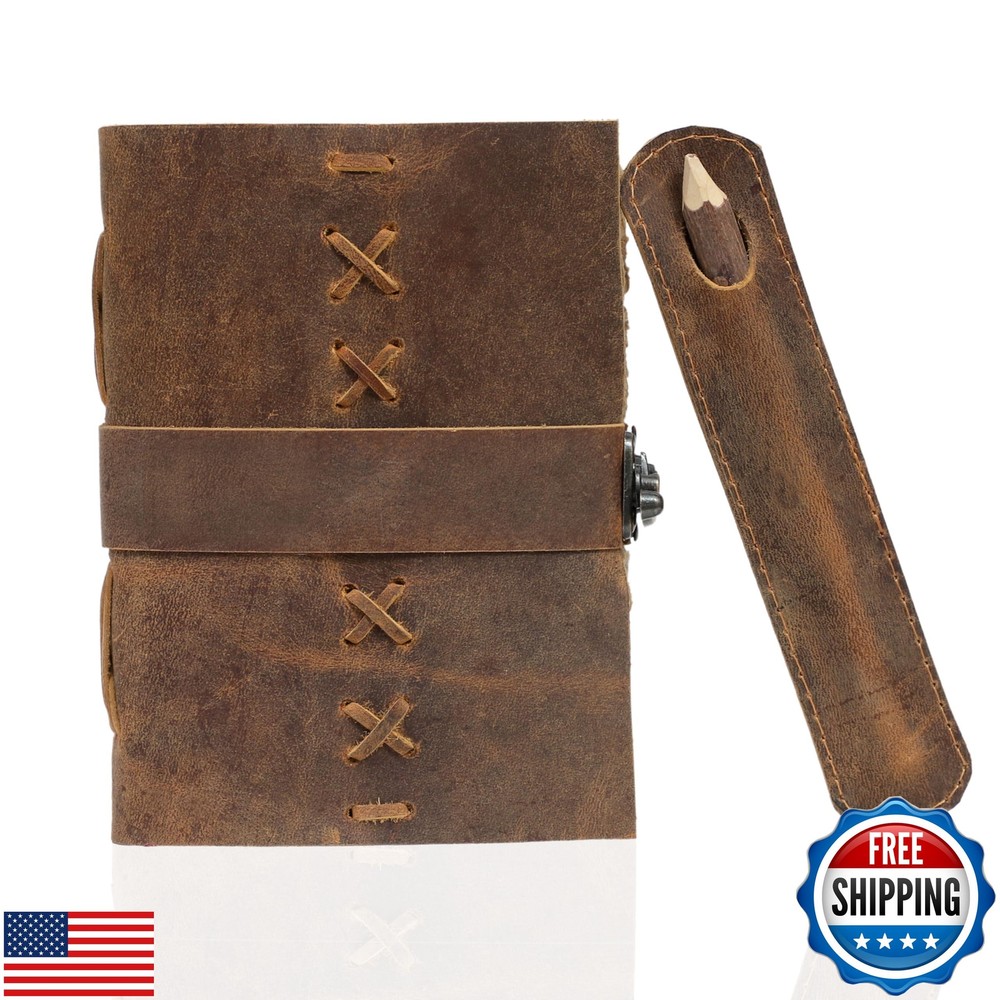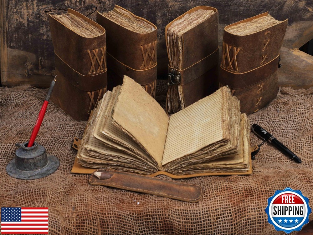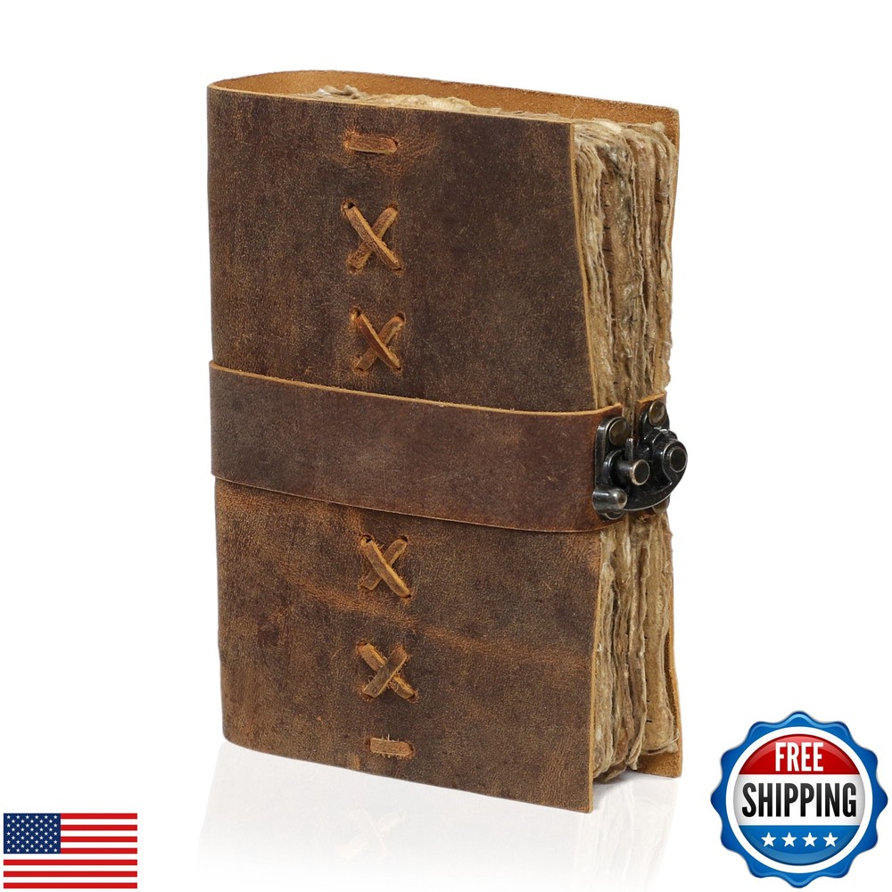 Leather Bound Vintage Journal for Women and Men - Book of Shadows - Lock Closure - 200 Pages of Antique Deckle Edges Handmade Paper - Rustic Brown Color Features VINTAGE LEATHER JOURNAL: A Perfect Journal for Women and Men by Vintage Couture. This Vintage Journal is Made from Genuine Buffalo Leather which is naturally tanned with oils and is chrome free. As these Daily Journals are made with genuine Cruelty free leather so each vary in look and shade producing a unique item. JOURNAL NOTEBOOKS WITH STURDY BINDING: Belt Wrap around closure with Antique Bras lock to keep the papers of the journal safe when not being used. A sturdy hand stitched binding to make sure that no paper comes out loose. WATERCOLOR PAPER: This leather Sketchbook comes with handmade deckle edges paper which is made from recycled cotton waste these old Paper are No Bleed Scrapbook Paper. The Mixed Media Sketchbook is Suitable for Writing, Watercolor, Acrylic Colors, Pastel Color and all Dry & Wet Mediums. Use it like Sketch Pad, Watercolor Sketchbook etc. PERFECT GIFT: This vintage-inspired journal serves as an exquisite and timeless gift suitable for a diverse range of recipients, including women, men, teen girls, boys, and cherished grandparents. A lovely treat for your loved ones for an anniversary, birthday or graduation present, or for someone starting a new adventure VINTAGE COUTURE PROMISE: - VC Leather Bound Journal comes with the Trust and promise of Purity of craftsmanship with each Writing Journal. Shipping Free & Fast Shipping: We offer free shipping to most of the USA with a normal delivery time of 3-7 days. However, due to the current situation, additional delivery time (up to 3 weeks) may be required for some items. Alternative Carriers: We may use alternative carriers (e.g., USPS, FedEx, UPS) to ensure your package arrives safely and on time. Due to the use of multiple carriers, we are unable to provide a tracking number automatically. Handling Time: Orders are processed and shipped within 1-2 business days of receiving cleared payment. Shipping Restrictions: Shipping to Alaska, Hawaii, Puerto Rico, Guam, and other US territories may incur shipping charges or delivery restrictions. Please contact us before ordering, or your order can be refunded/cancelled. State Restrictions: Certain items may not be shipped to California due to state regulations. Contact for Tracking Updates: If you require tracking updates or have any concerns about the delivery of your order, please feel free to contact us, and we will be happy to assist you. Return Policy 30-Day Hassle-Free Returns: If you are not completely satisfied with your purchase, you can return the item for free within 30 days of receiving it for a full refund or exchange. Easy Return Process: Contact us, and we will provide you with a prepaid return shipping label and detailed instructions. No Restocking Fee: There are no restocking fees for returns. However, the buyer is responsible for return shipping costs if the return is not due to a seller's error. Refund Processing: Refunds will be processed within 1 business day of receiving the returned item in its original condition. Payment We accept all major credit cards, PayPal, and Apple Pay for your convenience. Your payment information is secure and encrypted to ensure a safe and seamless transaction. Please complete your payment within 3 days of purchase to avoid any delays in shipping. Feedback Your feedback is extremely important to us. We strive to provide the best products and customer service possible. If you are satisfied with your purchase, please take a moment to leave us a positive review. If you have any concerns or issues with your order, please contact us before leaving negative feedback. We are committed to resolving any problems and ensuring your satisfaction. Contact Us If you have any questions or concerns, please feel free to reach out to our customer support team. You can contact us through the eBay messaging system. We are available Monday to Friday, 9:00 am to 5:00 pm EST, and we will do our best to respond to your inquiry within 24 hours. Thank you for supporting our small family business!