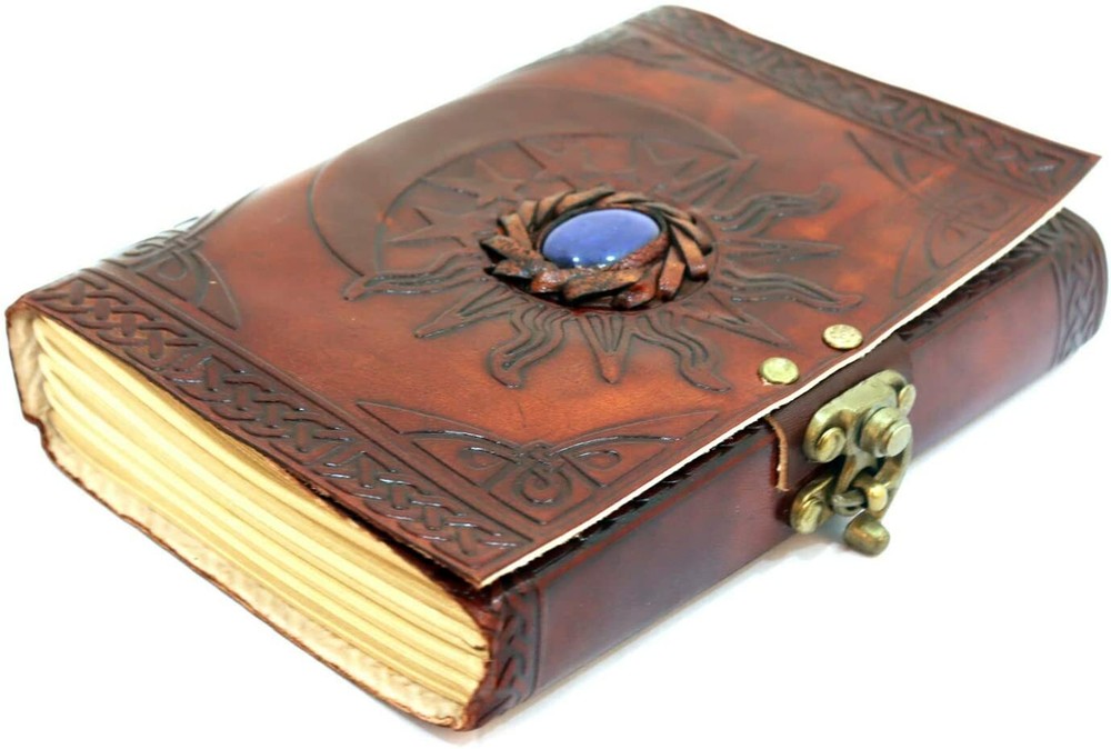 Leather Bound Writing Journal for Women & Men - Sun & Moon Blue Stone PERFECT SIZE: (7 x 5 inch) leather journal HANDMADE: Made by hand and inside 180 pages Perfect for use with many pen types. Thick paper prevents bleed through. Pages are Unlined with 5.5mm spacing. Note: page count is 180 pages, 90 sheets VINTAGE AND ANTIQUE APPEARANCE: tree of life embossed in between the journal lovely hand work PERFECT USE: as a writing journal , diary , appointment journal , notebook , collage journal gift A special keepsake: Give your loved ones something truly special that will last for years to come! Great for a birthday, anniversary, or graduation Thread colors vary by stock availability. Product is handmade and slight variations in color, size, etc. are not considered defects. Contact Us If you have any queries, please contact us via ebay. We usually respond within 24 hours on weekdays. Thank you for shopping at our store.