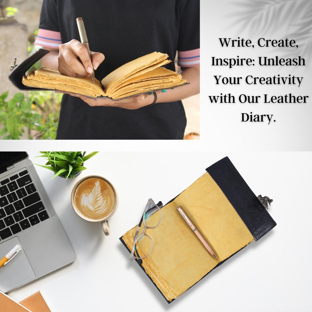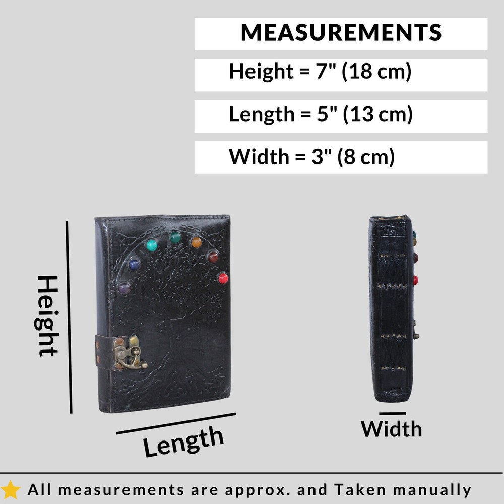 Welcome To MADOSH (Brand: Madosh- Mad Over ShoppingTM) Indulge in the art of journaling with our Timeless Elegance Leather Diary. Immerse yourself in the calming embrace of nature with Tree and Stone Leather Journal. Designed with versatility in mind, our diary is a portable haven for nature lovers, writers, and artists. Slip it into your bag and carry the serenity of nature wherever inspiration takes you. This journal is not just a blank canvas, it's a work of art that speaks to the beauty of nature. With 200 unlined pages made from high-quality, acid-free paper, this journal provides the perfect space for your thoughts, sketches, and creative expressions to flourish. A Clasp closure not only adds a touch of rustic charm but also ensures the security of your innermost thoughts. Make it a thoughtful gift for a friend, family member, or yourself, and share the beauty of nature with our responsibly sourced and eco-friendly leather. SIZE: Height: 7" (18 cm) | Length: 5" (13 cm) | Width: 3" (8 cm) FEATURES: Genuine leather 200 Pages Stone studded Clasp closure Vintage paper Handmade Country of origin: India NOTE: 100% Genuine leather diary. Color may slightly vary from pictures. Paper used in diary are 100% recycled cotton acid free paper.