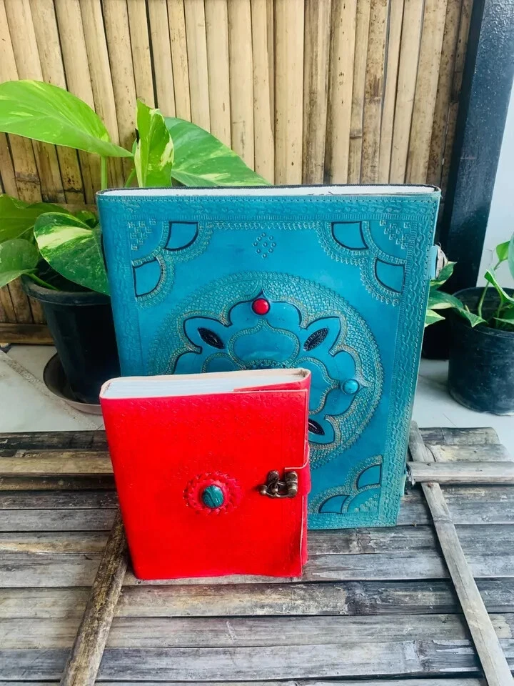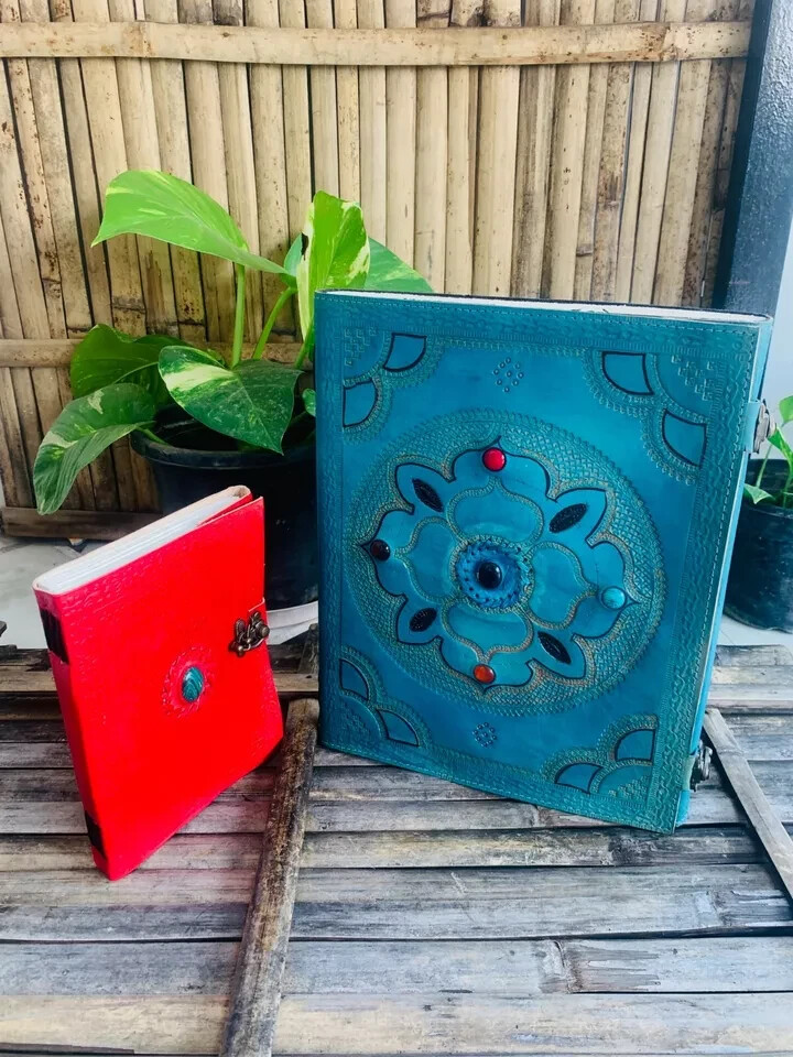 This black leather embossed journal is a must-have for anyone looking for a high-quality notebook. The journal is handmade and features a leather bound cover material from India. It also has C-locks to keep your pages secure. The journal is perfect for those who want a blank diary with special attributes. It is not personalized and is not signed. This seven stone chakra journal is ideal for those who want a durable and reliable notebook. Get your hands on this amazing piece of art today! Book size is 10x13x3.