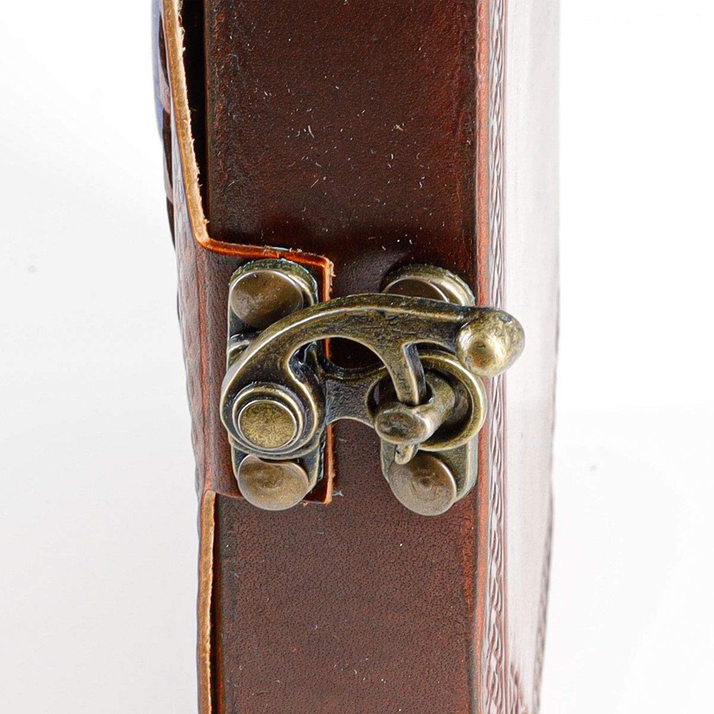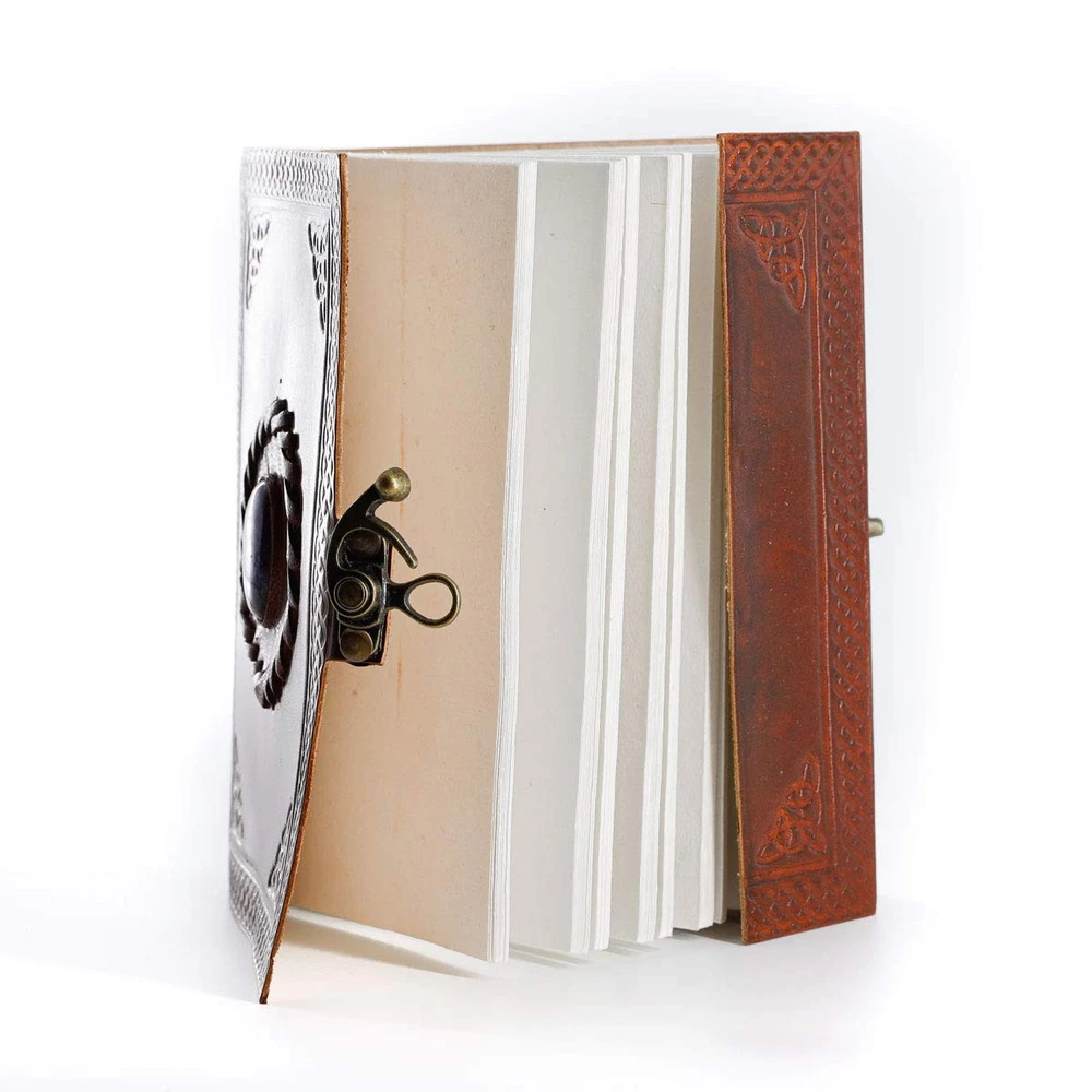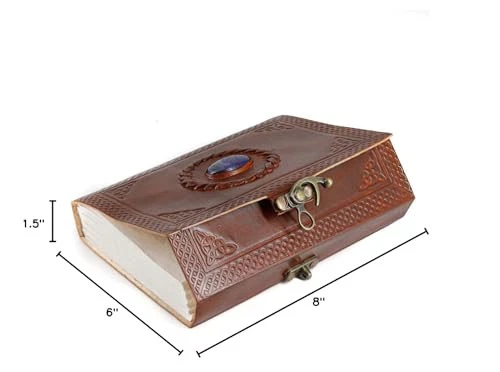 Premium Handmade Vintage Paper: This unique journal by is crafted from high-quality genuine buffalo leather, tanned with oils for a rich, luxurious feel. One-of-a-Kind Originality: Each journal is handmade, resulting in variations in appearance and color, ensuring that no two pieces are alike. Its antique vintage paper and distinctive stone design make it perfect for a Book of Shadows or a spellbook. Non-Refillable Unlined Journal: Ideal for sketching, doodling, and writing, this unlined leather journal accommodates various writing tools, including calligraphy pens, fountain pens, and brushes. Compact Size with 1-Year : Measuring 8 x 6 x 1.5 inches, this journal is easy to carry. It comes with a one-year , and if you receive a damaged product or are unsatisfied, we're here to provide a prompt solution. Sturdy Binding and Secure Lock: The hand-stitched binding ensures that your pages stay intact, while the secure metal lock keeps your journal's contents safe. Perfect Gift for Any Occasion: This journal makes an ideal gift for anniversaries, Valentine's Day, Christmas, and birthdays. It's a thoughtful present for artists and travelers, offering a lasting way to capture memories and creativity.