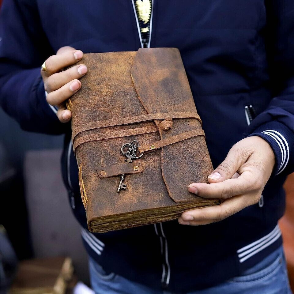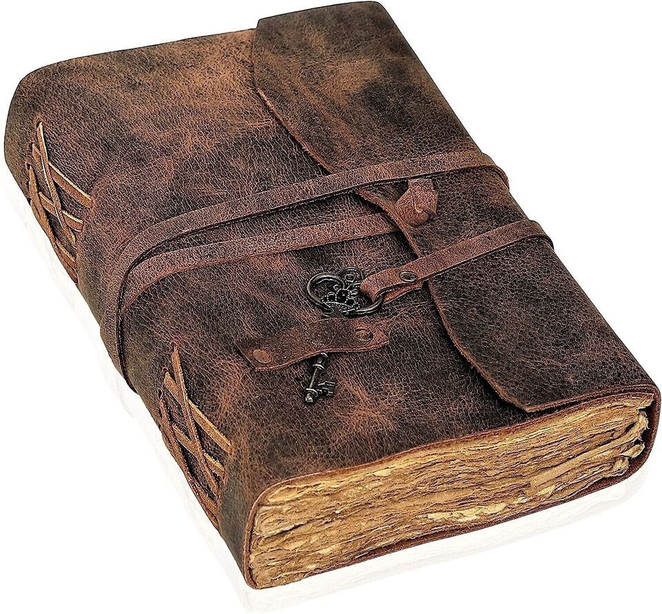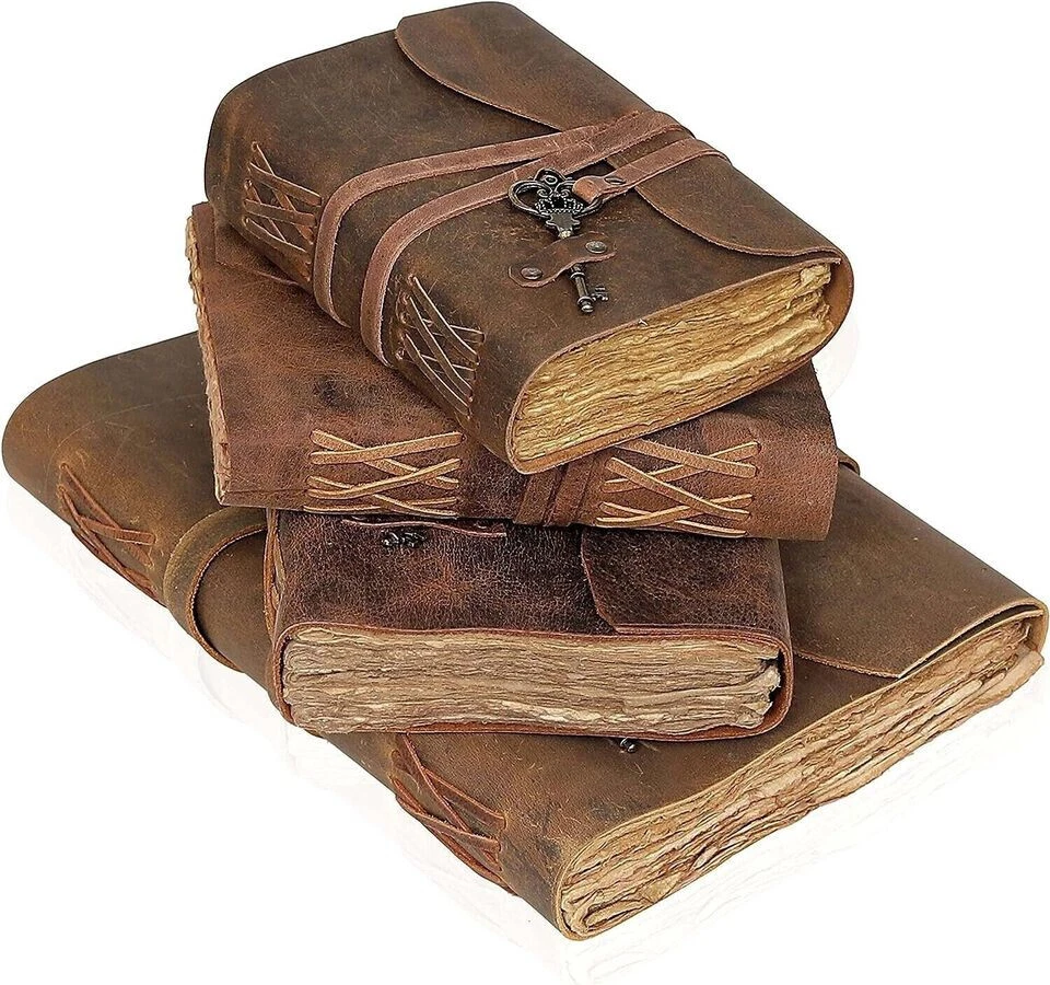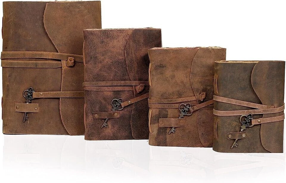 PERFECT HANDCRAFT JOURNAL - Made from 100% Buffalo Leather with Antique Deckle Edge Paper. This Book Is Hand Crafted by Artisans Working with Leather for Decades. The Color of The Journal Is Very Unique Vintage Brown. USE ANY KIND OF PEN - Write/sketch/doodle on your journal notebook with a Fountain Pen Calligraphies, Ball Pen, Brush Pen, Acrylic Colors, Watercolor. IDEAL USE AND PERFECT GIFT – Perfect Use for Business Executive, Poetry Work, Journalists, Craftsman, Writer. A Lovely Treat for Your Loved Ones for An Anniversary, Birthday or Graduation Present, Or for Someone Starting A New Adventure and A Perfect Gift for Those Who Love Vintage One. DIMESNIONS – (All sizes available check above) With Uncut Deckle Edge Paper, Easily Handle Notebook, You Can Fit with Minimum Space, Easily Handle in Long Journey. Once You Have Used It You Will Feel Like You Have the Best Journal in the World. BINDING AND KEY BOOKMARK – Binding Is Made by Hand Stitching Which Having Enough Strength That the Paper Never Comes Out. The Key Is Very Antique Can Be Used as Bookmark. The Leather Strap Wrap Around the Journal Is Complete Solution for Paper Safety and Open-Close the Journal. The Journal Made by High Quality Buffalo Leather and Paper Have Been Used Is Vintage Historical Paper Which Is Very Durable. OUR GUARANTEE - If for any reason you don’t love the Wanderings vintage notebooks please let us know and we’ll send you a refund - no questions asked. It is as simple as that!