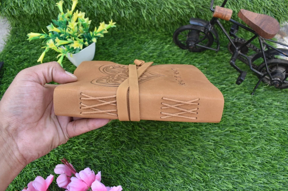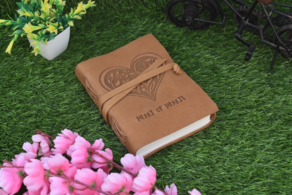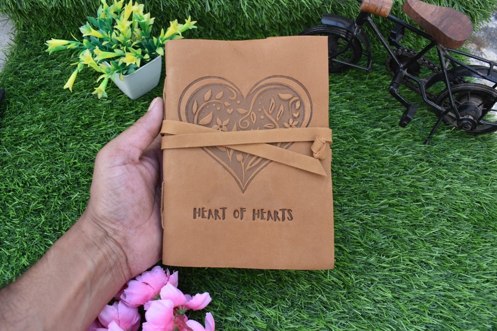 Handmade leather journal Size - 7x5 Inch Weight - 400 gram Pages - 200 pages Beautiful and precious quality Leather Journal - Antique Handmade white unlined Paper Leather Bound Journal - Leather Journal for Women brown Embossed Heart of Hearts Gift for Mother , Daughter , Wife , Girls Heart Unlined Love Diary Travel Notebook - Leather Sketchbook - Drawing Journal - Great Gift ( brown) Our handmade artisan leather journals are crafted from genuine leather. embossed on to the cover using hand tools by highly skilled artisans. Being hand-made from 100% natural leather, our journals can vary in look & shade producing a unique item, no two are quite the same. 【QUALITY PAPER】 Inside this 1.5 inch thick leather bound journal you will discover 200 pages (100 sheets) 【PERFECT FOR GIVING】 Suitable for both men or women, this daily travelers notebook is a perfect present for an avid writer. Ideal to give for birthday, valentines, graduation or wedding anniversary. 【OUR PROMISE】 We are positive you will love our products, but if you don't for any quality reason, we will replace or refund for up to 14 days after purchase. Our friendly customer service team are always available to answer any questions you might have.