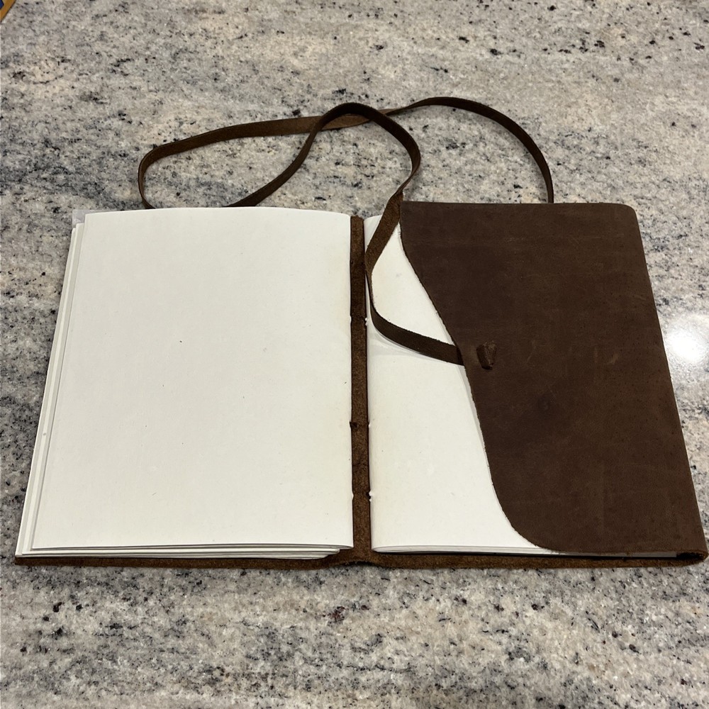 This leather journal is a rare find for all the writing enthusiasts out there. Its handmade construction ensures uniqueness and durability, while the unlined paper pages provide a blank canvas for your thoughts and ideas. The notebook is perfect for planners and writers who appreciate a touch of luxury in their stationery collection. The cover is made of high-quality leather, giving the journal a sophisticated and timeless look. Personalization and signatures are not available for this item. Please ask questions no refunds no returns
