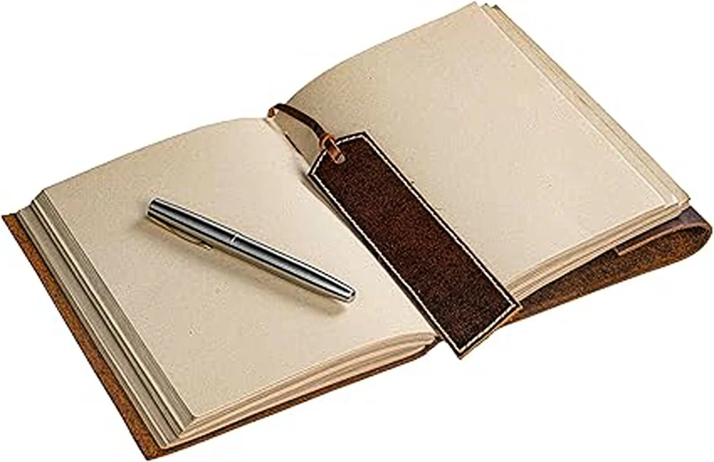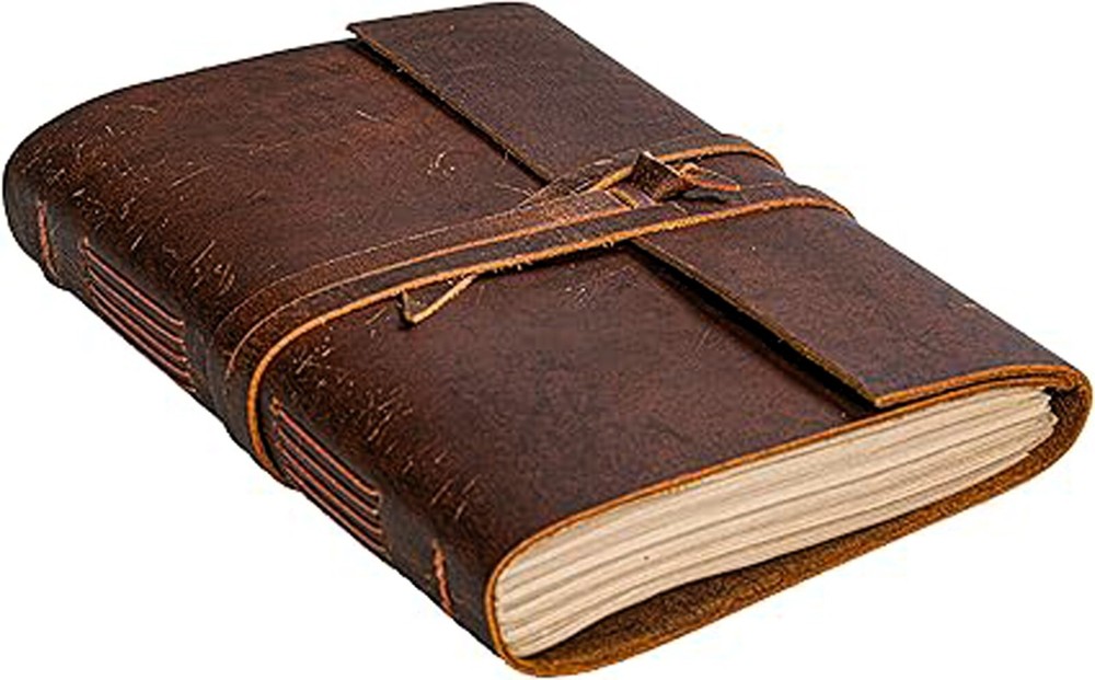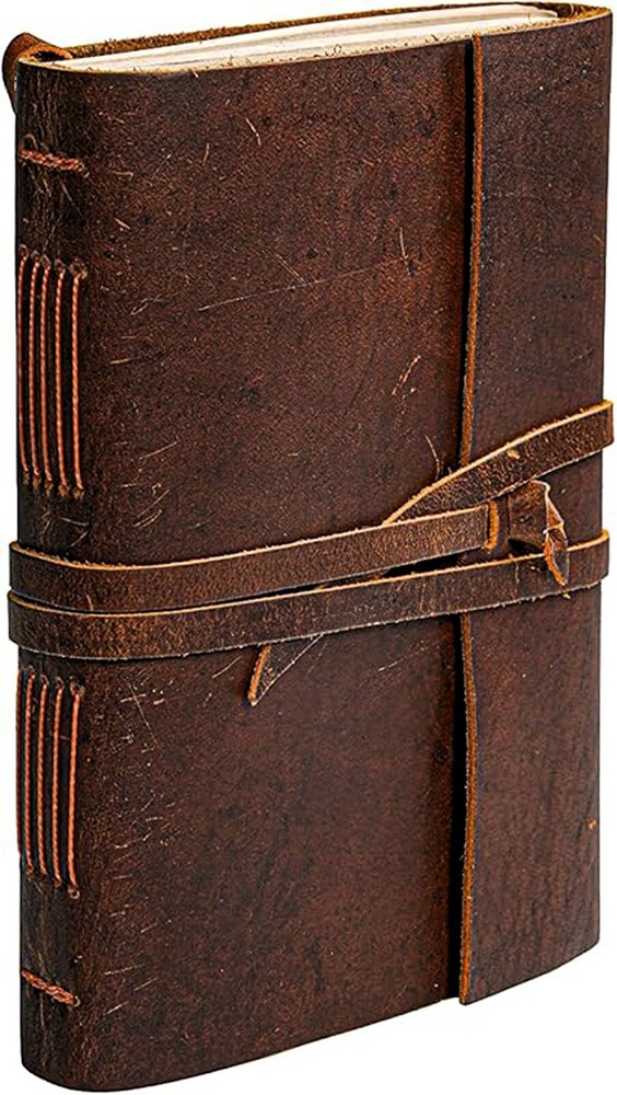 Leather Journal Notebook - Rustic Handmade Leather Bound Journals for men & women - Leather Craft Unlined Paper 210 Pages, Personalized Gift. This beautifully handcrafted leather journal is made premium split leather, offering a timeless & rustic charm. Ideal for men & women alike, the journal's durable design is complemented by artful hand stitching, creating a unique space for thoughts, sketches, or planes. Available in two convenient sizes, 7x5 inches & 8x6 inches, in comes with unlined paper featuring a thickness of 150 GSM, perfect for writing, drawing, or note taking without ink bleeding. With 210 pages, it's a perfect gift for those who value quality craftsmanship & enjoy journaling.
