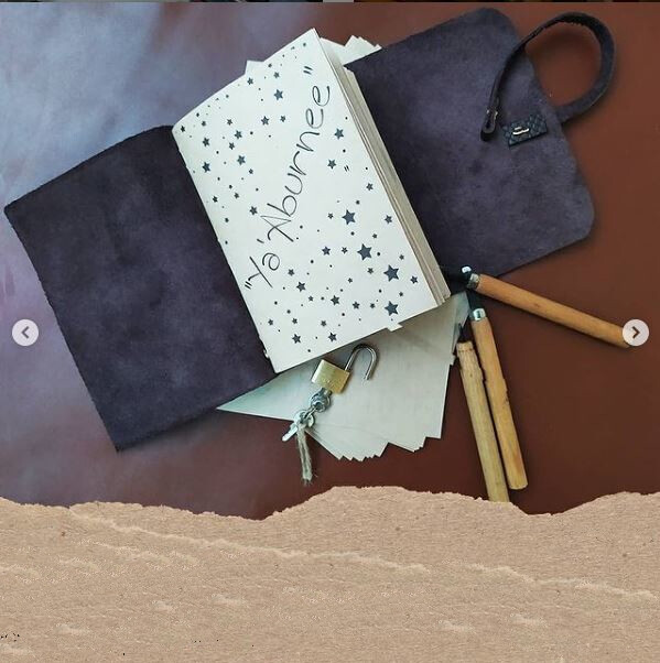 These personalized leather journals make a great gift for any occasion! Perfect to fill with notes, recipes, goals, drawings, memories and photos. Made with tough rustic leather, these journals are built to endure. As the journals are handled they will gain unique markings, making them even more personal and truly one of a kind. The pages of your notebook will be hand bound onto genuine leather covers using the long stitch binding method in durable waxed thread. Unique handmade leather bound journal/notebook with real Lock and Key is handmade with care and love using high-quality leather to appeal its distinct, attractive and timeless feature. Pages: 100 sheets Size: A6 (148mm*105mm)