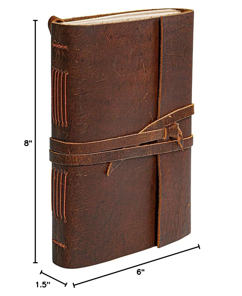 Leather Journal Notebook(6x8 in) - Vintage Leather Bound Journals Handmade Rustic Finish Book for Men and Women Unlined Leather Craft Paper 300 Pages, Leather Notepad Diary, Pocket Diary To Write In Description Features: HANDCRAFTED FROM GENUINE LEATHER: Each journal is specially designed and handmade from premium split leather. Artful hand stitching to create a timeless space for your thoughts OUR 1 YEAR REPLACEMENT PROMISE & IDEAL SIZE: Handheld, medium size (8 x 6 x 1.5 inches). Easily carry this journal in your daily life and on your most exotic adventures. You don't have to take risk If your vintage journal arrives damaged & any mistakes with the craftsmanship, YOU CAN DIRECTLY CONTACT TO US within 1 year and we will send you a FREE REPLACEMENT or FULL REFUND. No questions asked, Makes an Awesome FRIEND'S Birthday Gift! Buying 2, 3 etc Thanks. THICK UnlINED PAPER: 300 pages of thick, natural 100 GSM cream paper. Perfect for use with fountain pen, felt pen, markers. Pages are Unlined. Note: page count is 300 pages, 150 sheets Approx TELL YOUR STORY: We designed this classic leather journal as a time capsule for your thoughts. Capture your important memories, accomplishments (and failures), life-changing moments and evolving dreams as a keepsake to reflect upon in years to come THE PERFECT GIFT QUALITY YOU CAN TRUST: high-quality craftsmanship makes this an essential tool for Poetry, Art, Sketching, Writing, Drawing, Calligraphy Leather Journal Give your loved ones a thoughtful gift that will last for years to come! Great for a birthday, anniversary, or graduation Product Details: Brand: HLC Color: Brown Theme: Book Sheet Size: 6 x 8 inches Pages: 300 Cover Material: Paper, Leather Style: Vintage Ruling Type: Plain Special Feature: Soft cover Product Dimensions: 8"L x 6"W x 1.5"Th Manufacturer: hlc Brand: HLC Item Weight: 3.53 ounces Product Dimensions: 6 x 2 x 8 inches Item model number: Color: Brown Cover Material: Paper, Leather Material Type: leather Number of Items: 1 Size: 6" x 8" Inch Ruling: Plain Sheet Size: 6 x 8 inches Manufacturer Part Number: Date First Available: October 31, 2020 Handling We will ship all orders within 3 business day of payment. Delivery We Do Not Ship Outside of the Continental US. Return Policy All items qualify for returns within 30 days of receipt. Buyer is responsible for return shipping on any item that is not damaged. Feedback We take our reputation seriously, we buy and sell online, so we understand the value of trust. If you are unsatisfied with your order, please contact us and we will work with you to resolve it to your satisfaction.