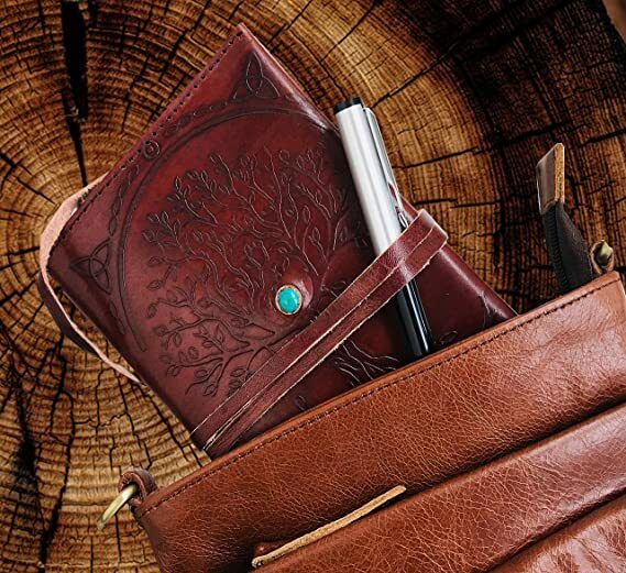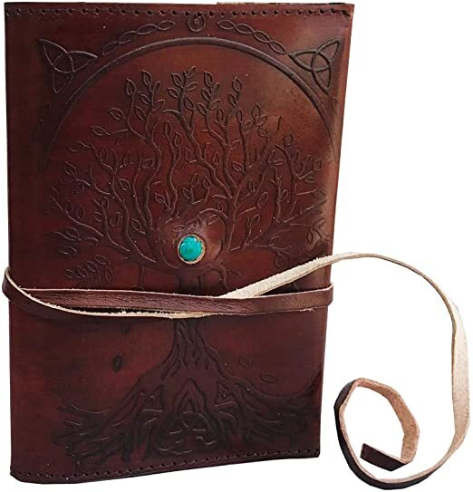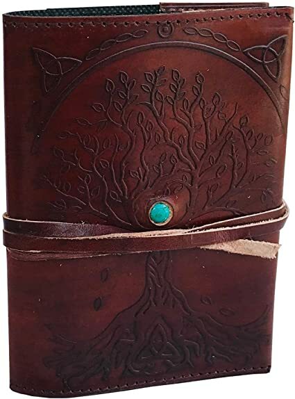 GENUINE LEATHER CRAFTSMANSHIP - Leather Tree of life Embossed journal with high-quality goat leather Crafted, this Re-filled leather journal offers a soft touch exterior. IN this tree of life embossed cover journal paper can be re-filled. PERFECT SIZE & MANY USES: - Compact 9" x 6" x 1.5'' size, easy to carry when travelling or in your daily life. 0.5” thickness, easy for handwriting, drawing or sketching and compact for carrying in your bag. Ideal for an alternative Artists Sketchbooks, Girls Diaries, Travelling, Teen Journals, Poetry Work, Food Planner, Scrapbook and Christian Bible Journalist. EARTH-FRIENDLY: 60 sheets/120 pages off-white/cream colored (unlined paper), hand-crafted with recycled cotton which is acid free & tree free - environmentally kind! NO BLEED THROUGH: Use any pen on this thick quality paper which has a natural fiber variation, weighing 80 gram. MULTIPURPOSE JOURNAL & PLANNER - A lovely treat for your loved ones for an anniversary, birthday or graduation present, or for someone starting a new adventure. This versatile men's and women's journal can be used as an appointment book, daily journal, and sketchbook.