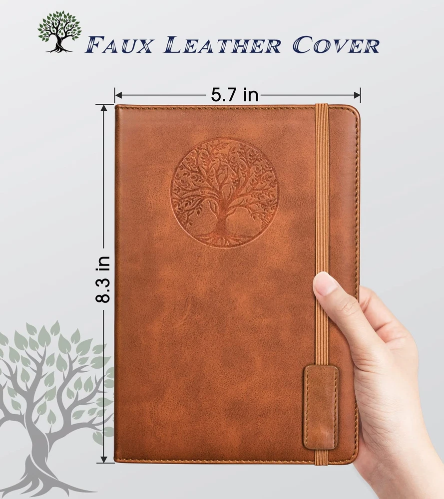 【vintage Leather Journal Notebook】The perfect rule notebook is perfect for travelers,business people,students for writing journals,journaling, personal daily journals,travel journals,work notebooks or for taking notes in college classes or meetings.The “TREE” symbolizes tenacious vitality,which will always remain alive.No matter what difficulties and obstacles you face,you can face it firmly. 【Hardcover Leather journal】This medium 5.7 x 8.3 inchs A5 lined journal notebook features a waterproof brown faux leather cover,Leather feels soft and comfortable,inner ribbon bookmark and elastic closure band,for all your drawing, writing, sketching, note-taking, traveling, etc.At the same time, it is perfect to carry around or put in a bag or purse. 【256 Pages Premium Paper】We use 256 Pages (128 Sheets) 80Gsm acid-free paper thick lined paper,Line spacing 8.5mm,so you can confidently use most pens, pencils, and markers without ghosting and bleed-through.The Light yellow paper resists damage from light and air and the paper protects your eyes from irritation. 【180° Lay Flat Design】The 180° lay flat design makes writing easier, reading more convenient, and taking notes more efficient.At the same time, the hardcover notebook is designed with elastic closure band to make it tightly closed to protect your content, and the inner paper will not be curled and kept flat. 【Ideal Business Notebook Gift】Journal with beautiful print is perfect for mom,dad,girls, boys, children,friends,wife,husband,friends,daughters, sons,granddaughter,teachers, students, artists,writers,designers, journalists,office clerks,business women/men,on Christmas, Halloween, New Year, Nirthday, Children's Day,Mothers Day,Fathers Day,Valentine's Day,Anniversary Gift,etc. PEACH-STORE THE BEST FOR YOU 🍑 Kindly note 🍑: If you would like to order more quantity than shown is available, you are welcome to place one order for the maximum available quantity and place one more order again because we always have more, than shown in available items. TRANSLATE with x English Arabic Hebrew Polish Bulgarian Hindi Portuguese Catalan Hmong Daw Romanian Chinese Simplified Hungarian Russian Chinese Traditional Indonesian Slovak Czech Italian Slovenian Danish Japanese Spanish Dutch Klingon Swedish English Korean Thai Estonian Latvian Turkish Finnish Lithuanian Ukrainian French Malay Urdu German Maltese Vietnamese Greek Norwegian Welsh Haitian Creole Persian