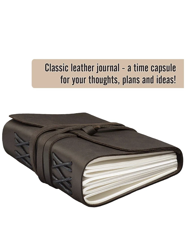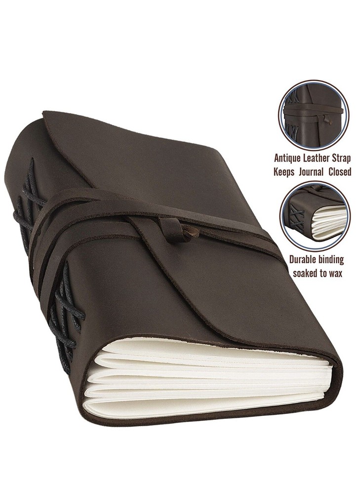 Description This leather journal set is a perfect gift. Whether it's a men leather journal or a leather journal for women – leather bound journal is good for anyone and everyone. Impress your loved ones with a memorable gift or present yourself a unique item. ✅ A PERFECT COMBINATION OF LUXURIOUS LEATHER COVER AND PERFECT QUALITY PAPER. The leather bound journal naturally tanned with special oil and made from premium buffalo leather. The beautiful and soft leather cover is not the only advantage of our travel notebook, in addition to that you will get 240 pages of high-quality blank Swiss cream paper. ✅ ORIGINAL LOOK. This leather journal with antique strap looks impressive due to its unusual decor and the leather band. Choose this leather journal for men who know the practical value of things or order the leather journal for women who appreciate designer things. ✅ COMPACT SIZE (7 x 5 inches) You can take the old leather journal while traveling as a special keepsake for your thoughts, plans & ideas. Also, it will not take up much space at home on the shelf or on the bedside table. ✅ 100% MONEY BACK GUARANTEE - we are sure that our “COMFY STRAP” sketch unlined journal will meet your expectation. But if you are unhappy with leather journal, you'll get full refund no questions asked within 90 DAYS. YOU HAVE NOTHING TO LOSE! BUY IT NOW! ✅ LEATHER JOURNAL – is a perfect gift for any occasion, whether it's a birthday, anniversary, Valentine's Day, Christmas or professional holiday. ✅ Life is so beautiful, so do not put off until tomorrow the opportunity to capture the joyful sensations not only in your thoughts but also on paper! Make your lucky purchase right now, Click the “Add To Cart” button! Features & details ✅ The best leather journal, served perfectly as personal journal or LUXURY GIFT. In addition to that, may be served as personalized sketchbook,travel notebook, refillable diary etc. ✅ Premium buffalo leather with quality SWISS paper (240 PAGES/120 SHEETS). The journal is handmade with genuine soft leather, covered with rich brown color for more enjoyable use. ✅ Compact travel size (7 x 5 inches) and easy to use. This leather bound journal is perfectly sized, compact enough to carry in your bag as well as large enough to make notes. ✅ Handmade rustic journal with antique bound design. This vintage travel journal with dark brown genuine leather creates impression without any words.