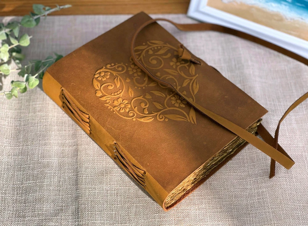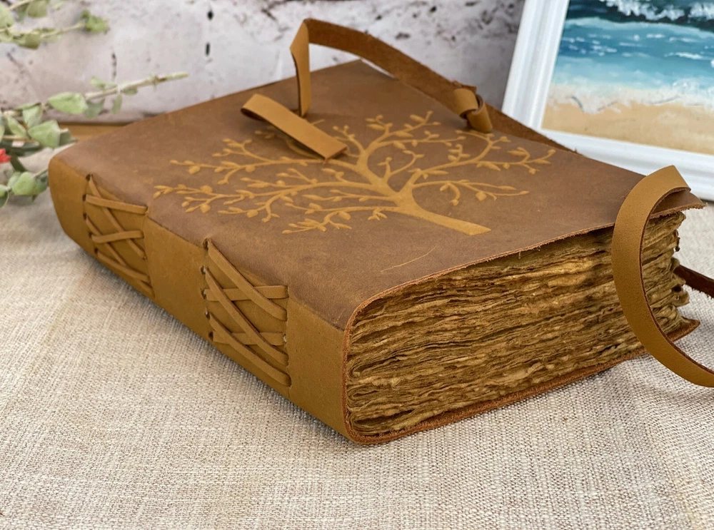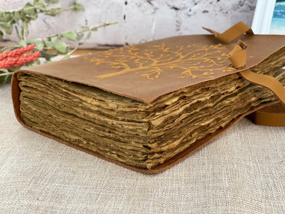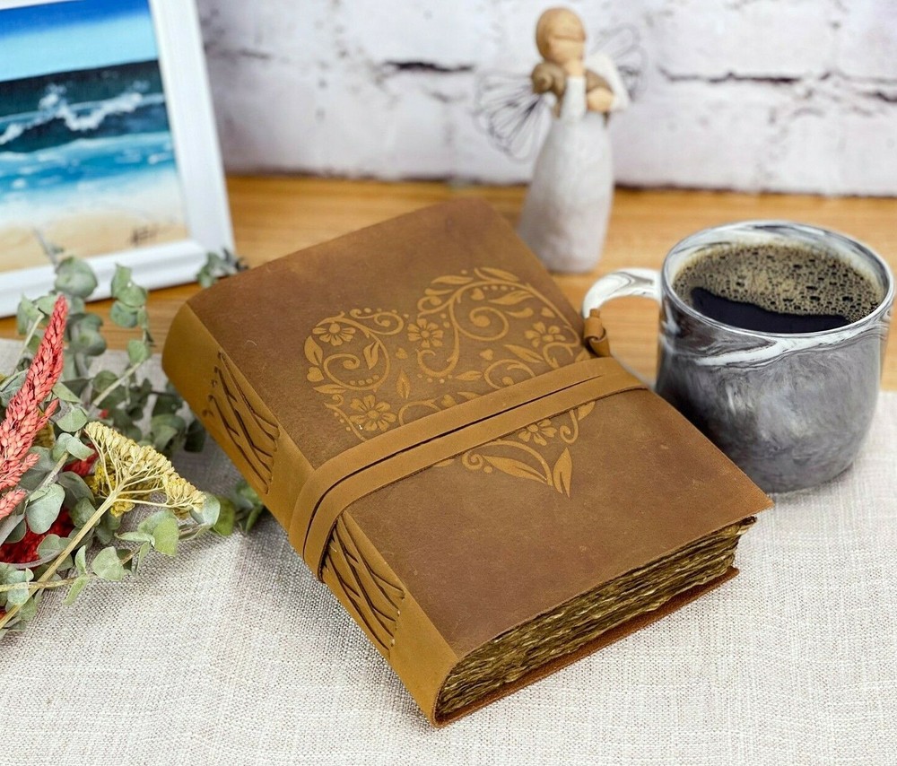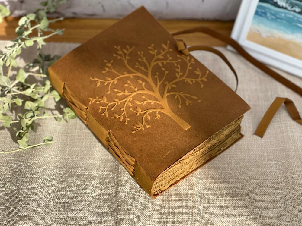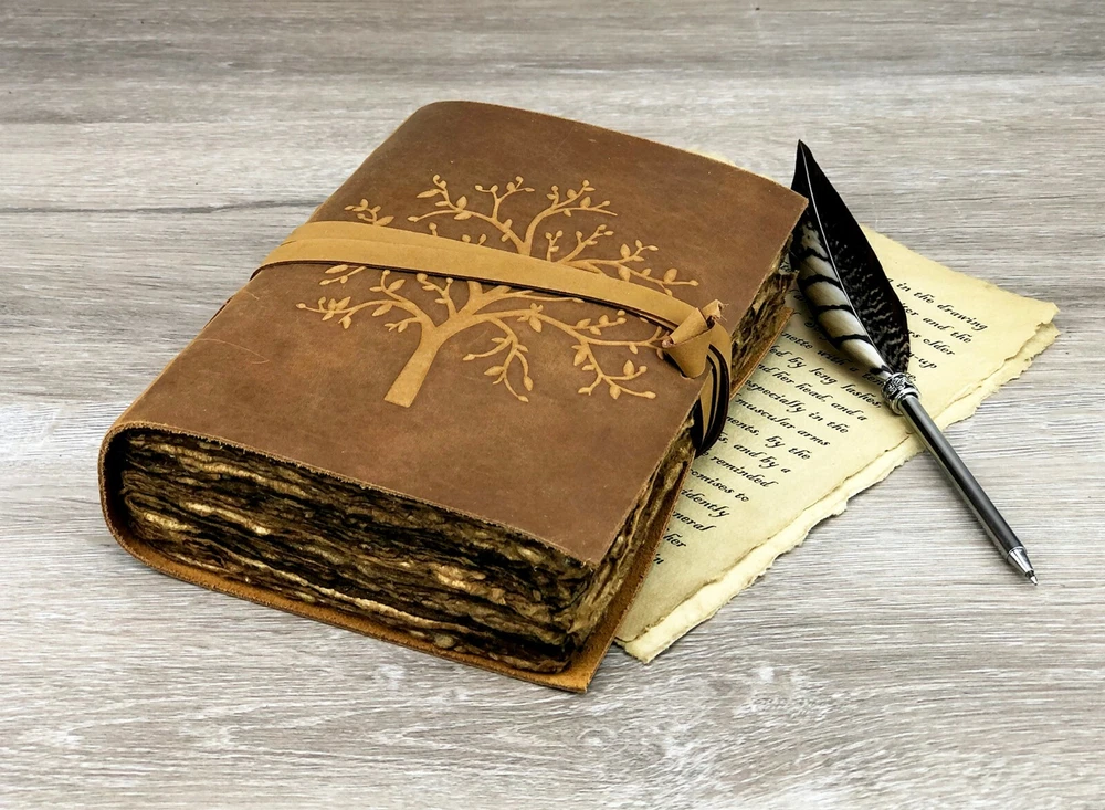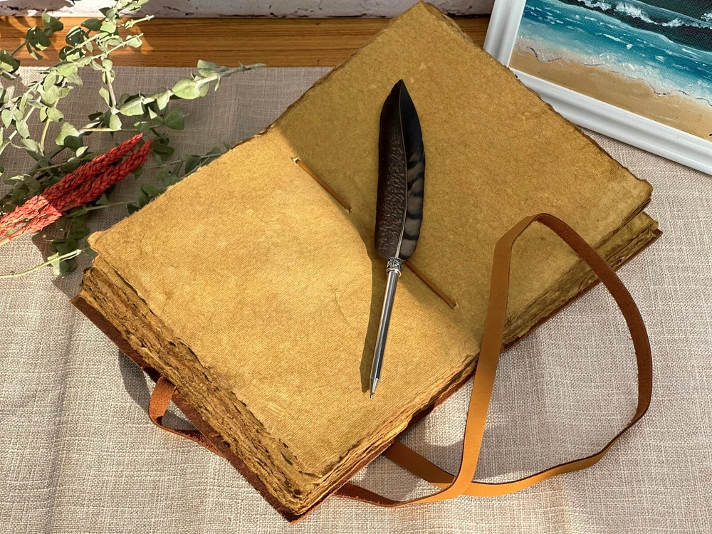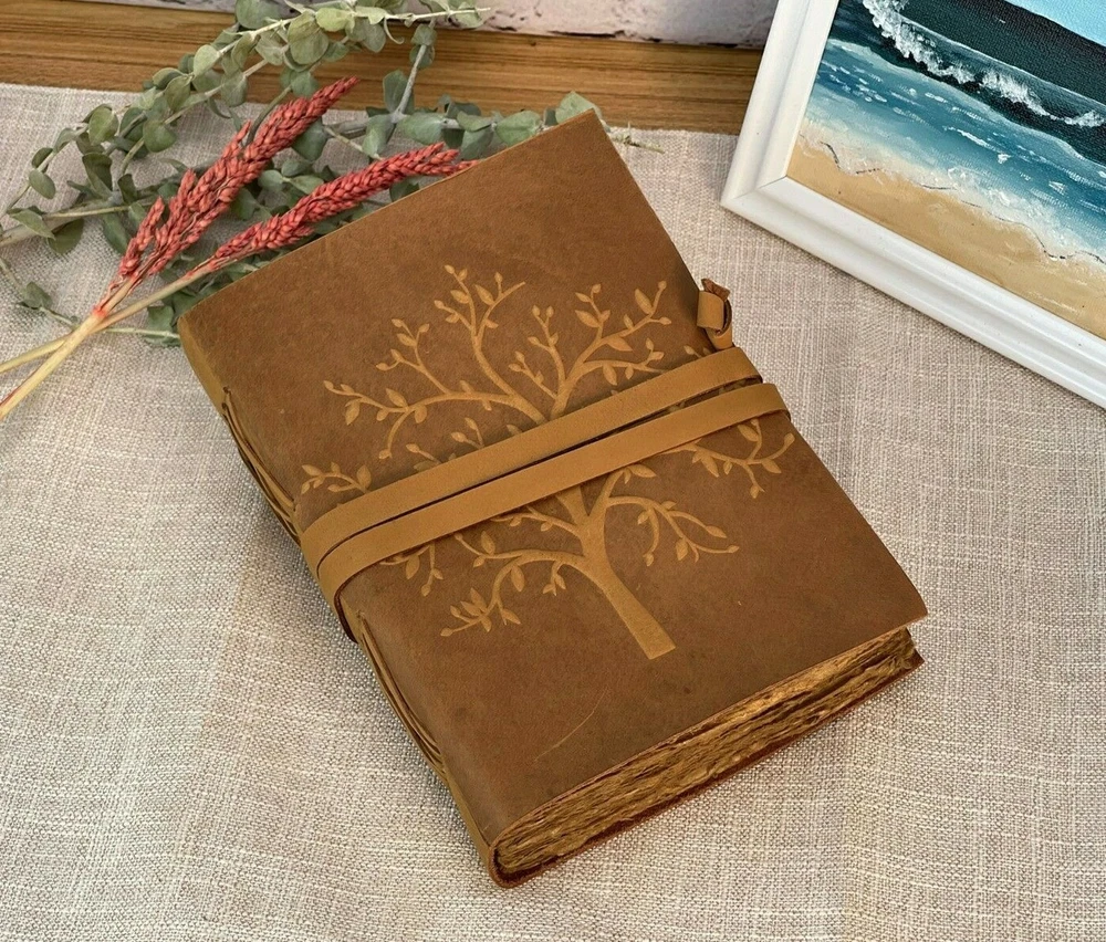Leather Journal for Women Handmade Leatherbound Writing Notebook Deckle Edge Unique Handmade Deckle Edged Vintage Paper which looks like it was pulled from history Unique leather-bound journal with vintage handmade paper looks and feels like a thousand years old and is a treat to write on. 200 blank Deckle edge paper pages. A Beautiful Leather Journal of the Highest Quality Entirely handcrafted by artisans, each leather bound journal is a work of art. We use a thicker, higher grade leather combined with incredible craftsmanship to create a journal that is soft and supple in the hand with that fabulous, intense leather scent. Ideal for travel and personal use - makes a perfect gift for any occasions. The natural color variations make each journal unique. Product Dimensions: 8 x 6 x 2 inches 7 x 5 x 2 inches Option : Feather ballpoint pen with black ink. Made from natural Pheasant feather. The perfect gift: You will find excellent packaging, exquisite design, antique style. Powerful eBay listing templates by 3Dsellers