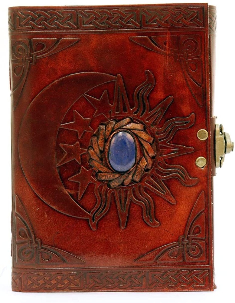 Leather Journal with Unlined Pages Sun & Moon Blue Stone Leather Bound Writing Journal for Women & Men (6x8 in) Unlined Journals for Women, Leather Bound Notebook Journal & Diary, Embossed Stone Handcrafted from genuine top grain leather: Each journal is specially designed and handmade from premium top grain leather. The artful design and hand stitching to create a timeless space for your thoughts Handcrafted from genuine top grain leather: Each journal is specially designed and handmade from premium top grain leather. The artful design and hand stitching to create a timeless space for your thoughts Unlined paper: 180 pages of thick, natural 115GSM kraft paper. Perfect for use with many pen types. Thick paper prevents bleed through. Pages are Unlined with 5.5mm spacing. Note: page count is 180 pages, 90 sheets Tell your story: We designed this classic leather journal as a time capsule for your thoughts. Capture your important memories, accomplishments (and failures), life-changing moments and evolving dreams as a keepsake to reflect upon in years to come A special keepsake: Give your loved ones something truly special that will last for years to come! Great for a birthday, anniversary, or graduation Shipping We ship within Three business days of payment, usually sooner. Some delivery times are longer than normal due to increased demand. We use a selection of shipping services such as UPS, FedEx, USPS etc. We only ship to the lower 48 states, no APO/FPO addresses or PO Boxes allowed. Local pickups and combined shipping options are not provided at this time. Return You can return a product for up to 30 days from the date you purchased it. Any product you return must be in the same condition you received it and in the original packaging. Please keep the receipt. Payment We accept payment by any of the following methods: PayPal Please pay as soon as possible after winning an auction, as that will allow us to post your item to you sooner! Feedback Customer satisfaction is very important to us. If you have any problem with your order, please contact us and we will do our best to make you satisfied. Contact Us If you have any queries, please contact us via ebay. We usually respond within 24 hours on weekdays. Thank you for shopping at our store.