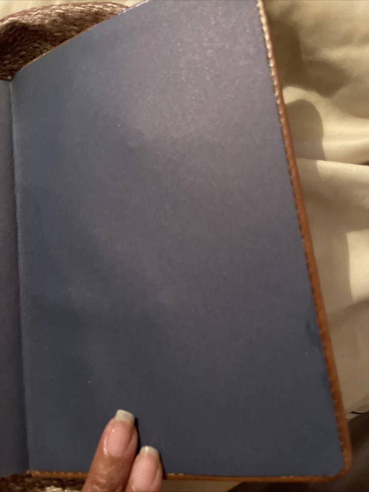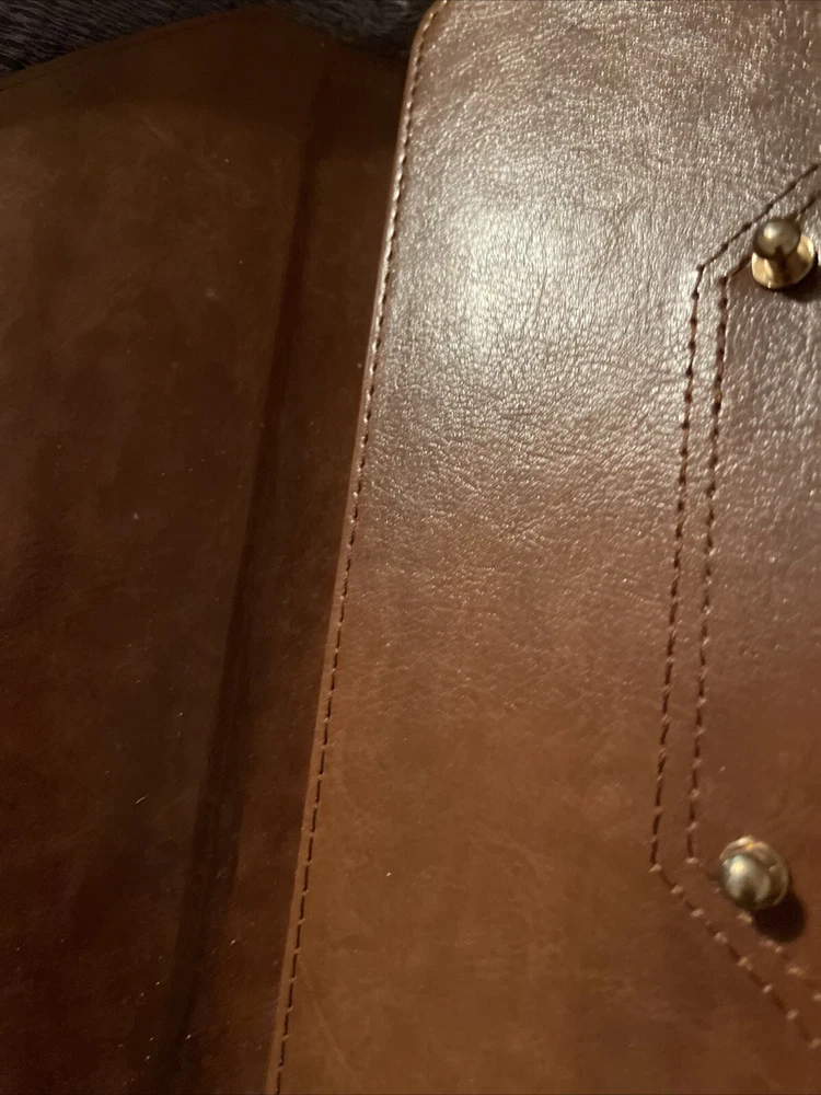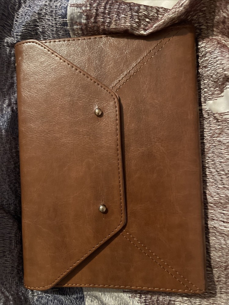 Gorgeous brown leather bound journal with two snaps to keep it secure you’ll love it. Don’t miss it.