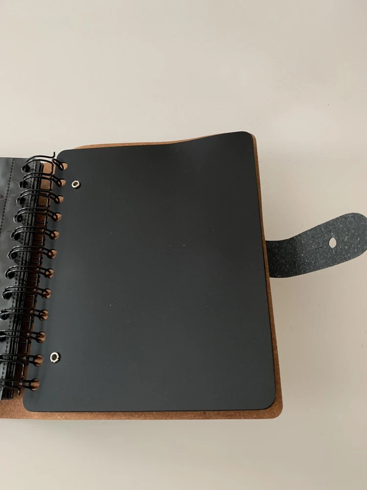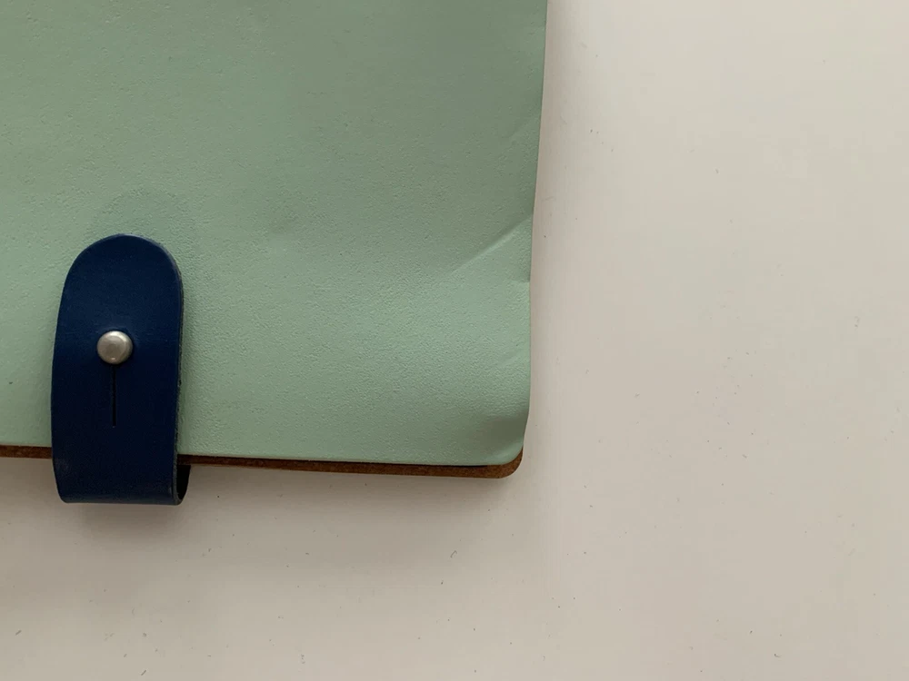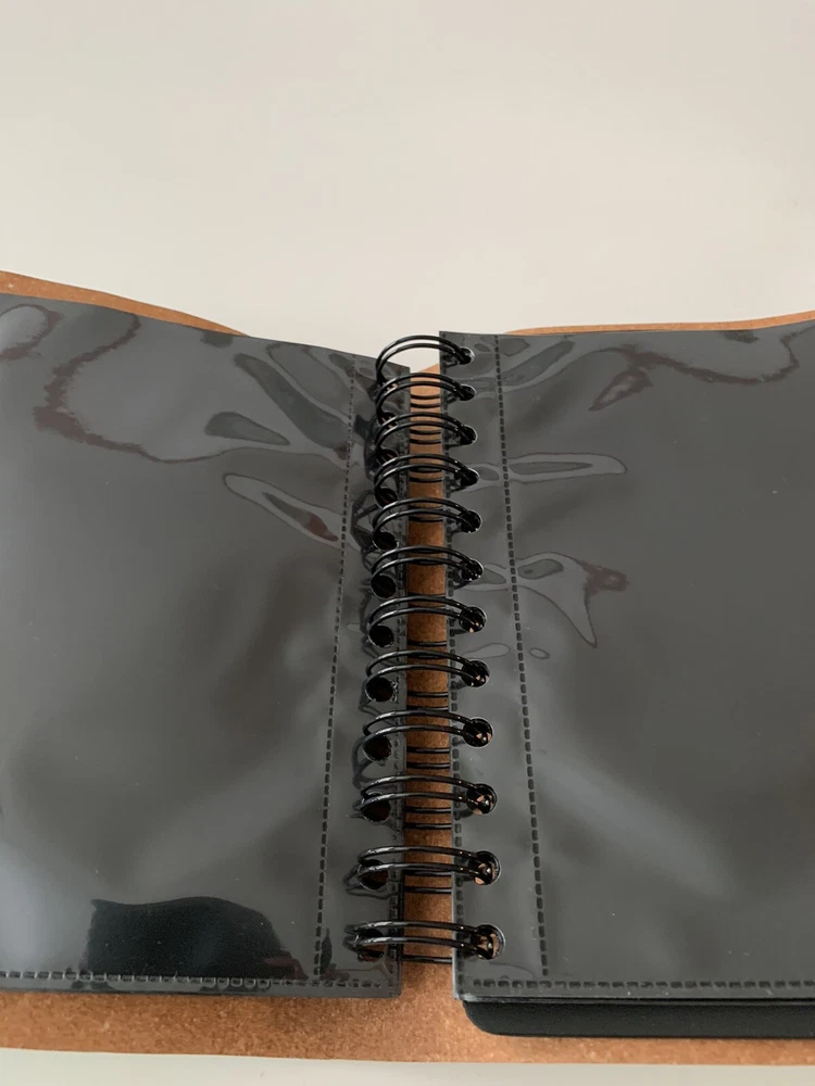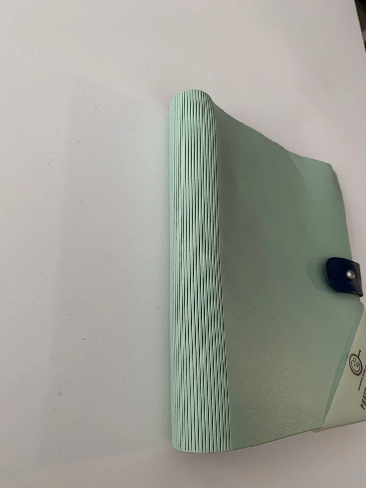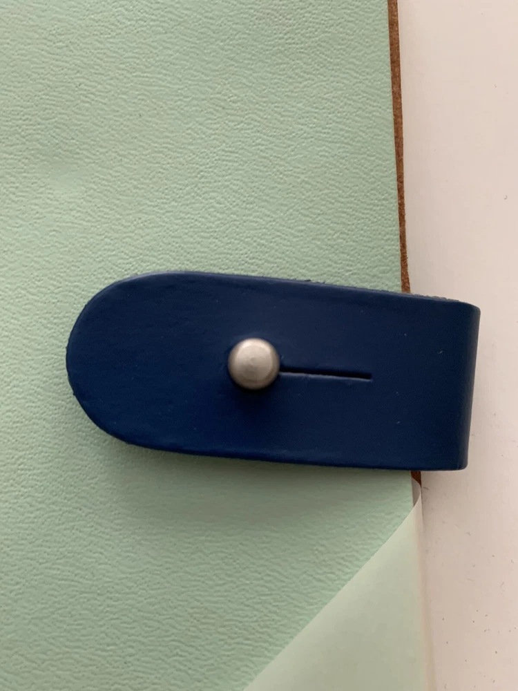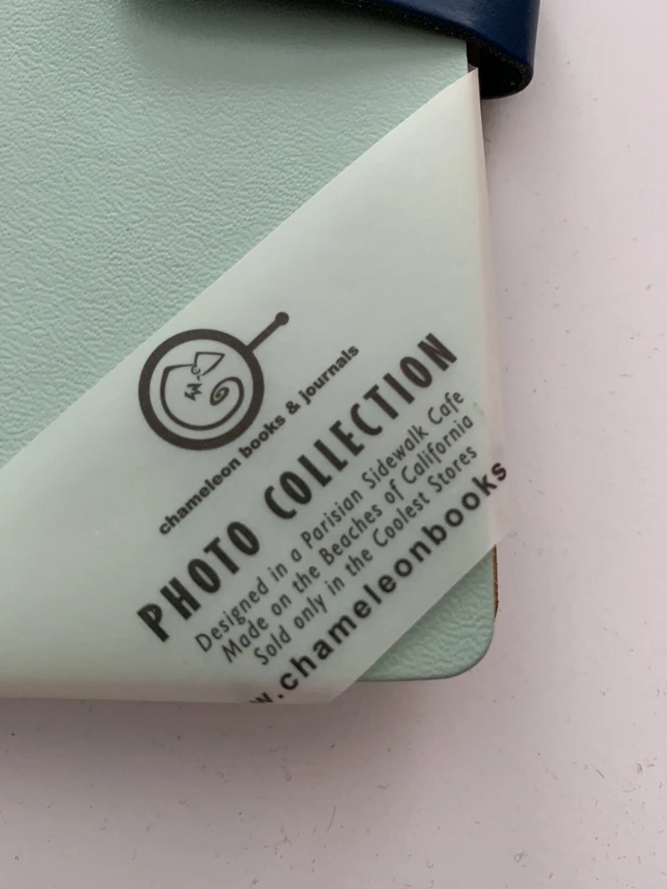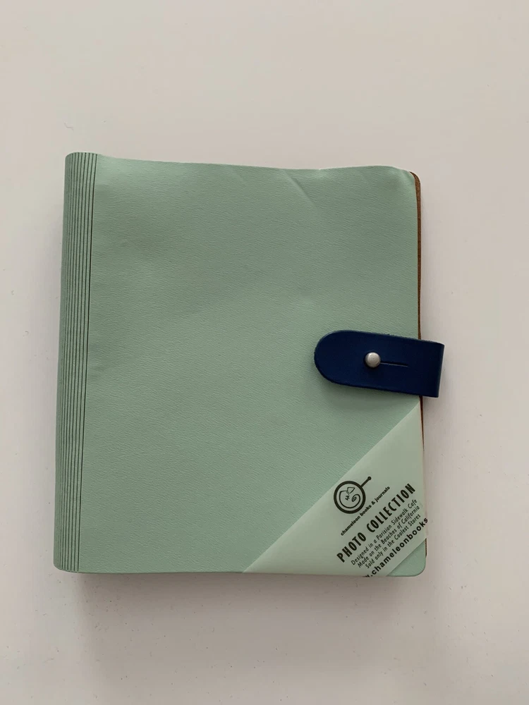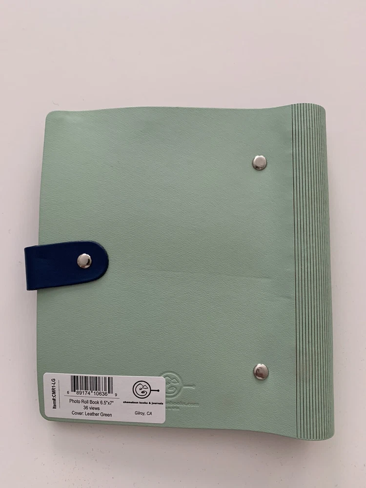 New - Photo Roll Book by Chameleon Like Material: Leather Closure: Leather Lappet with Silver Metal Knob Color: Mint Green Measurements: 6.5" x 7" Maximum Photo Size: 4" x 6" (36 views) Binding: Full Length Spiral - Black Fillers: 18 Clear Plastic Photo Sleeves Note: Check the small details in pictures 11-12. This resulted from the Photo Album being in storage for some time.