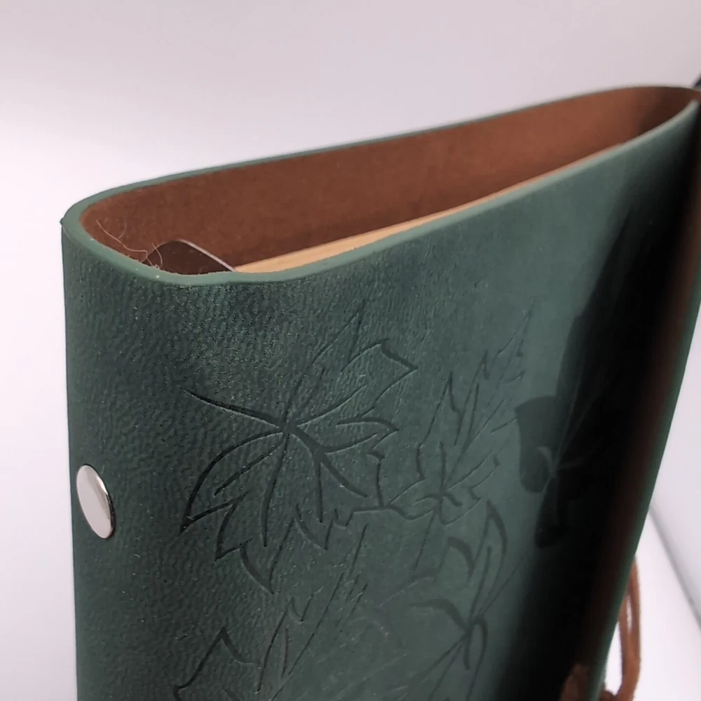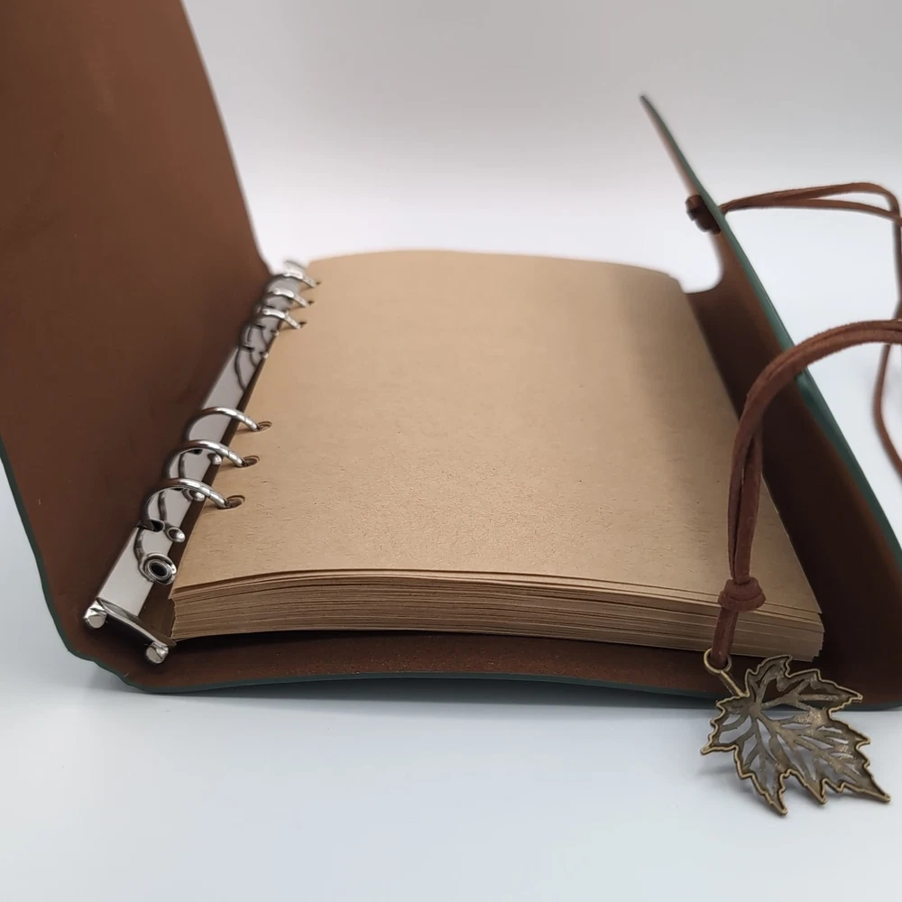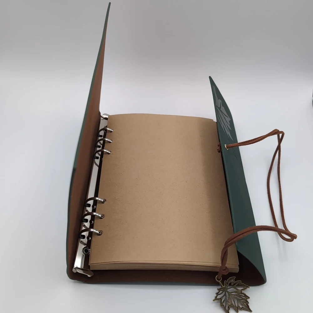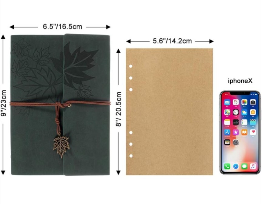 PU Leather Notebook: High quality leatherette makes durable cover, soft and comfortable in hands. Beautiful maples embossed with retro pendant create aesthetic nature and warm feelings. Perfect notebook gift for yourself, your families and friends. Refillable Binder Journal: Sturdy stainless steel 6-ring binder helps add or replace refills easily by pressing the up-down button, such as lined page, to do list, weekly planner, daily schedule, calendar and so on, making it a unique personal journal. Blank Journal: 100 GSM Thick kraft paper ensures not bleeding through or smearing for ink pens. Unruled pages lift restrictions your thoughts’ layout, you can freely write, sketch, draw as diary, photo album, scrapbook and dream journal. Handy Pocket Journal: 6.1 x 9.15 inch, lightweight to write in hands and suitable for purse and bag, you can take our small journal anywhere to instantly record precious memory and experience. Spiral design help lay flat to write and read easily. Condition Notes: Open box. Never used. Please see pictures for more details.