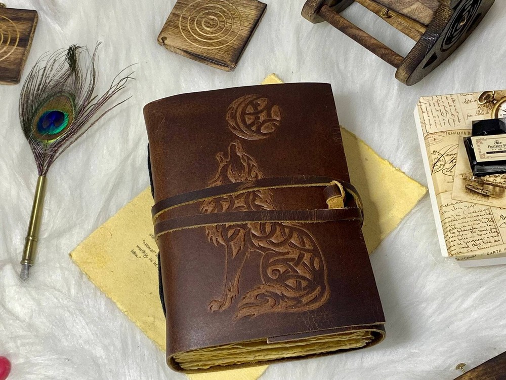 Fox print Vintage leather Journal The Lovers Book of Shadows Handmade Leather Journal Grimoire Journal with Deckle Edge Paper Gifts • C-Lock • genuine leather • vintage deckle edge old paper • Size - 7×5 inches • P ersonalization ● Vintage Journal is made of unique vintage paper which looks like it was pulled from history. You will love the old looking handmade which is unique to our vintage journals. ● The vintage lock will keep all your valuable writing locked inside. Study hand stitched binding to make sure that no paper comes out loose from your vintage notebook. ● It is a truly unique and wonderful gift for a friend, the men, women, and wiccans in your life! or to treat yourself to as a special keepsake ● our journals are influenced by symbolism that is derived from the Wicca/Pagan community, creating a personalized space where your inner creative genius can flourish. Leather notebook, leather journal, leather grimoire, book of shadows, gift for him, gift for her, gift for boyfriend, gift for girlfriend, gift for mother, wiccan, pagan, recipe notebook, travel notebook, wedding guest book.