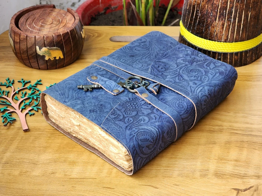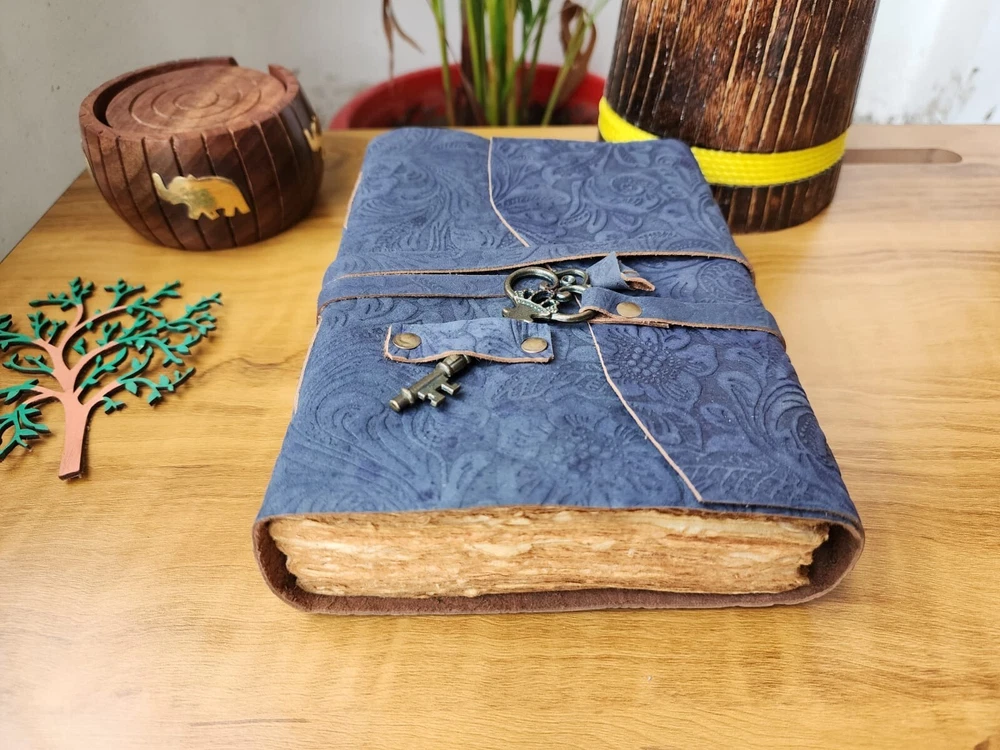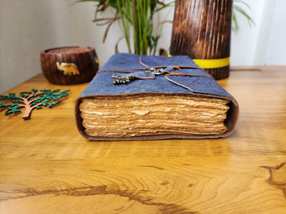 This handmade leather grimoire is a true treasure! The aged green cover feels rich and supple, gaining character over time. Inside, the thick antique-style paper adds a magical touch, perfect for writing, sketching, or crafting spells. The sturdy binding ensures durability, while the compact size makes it easy to carry anywhere. Every detail reflects the artisan's dedication—no two are alike, giving yours a unique charm. Ideal for Wiccans, writers, or anyone who loves rustic elegance!
