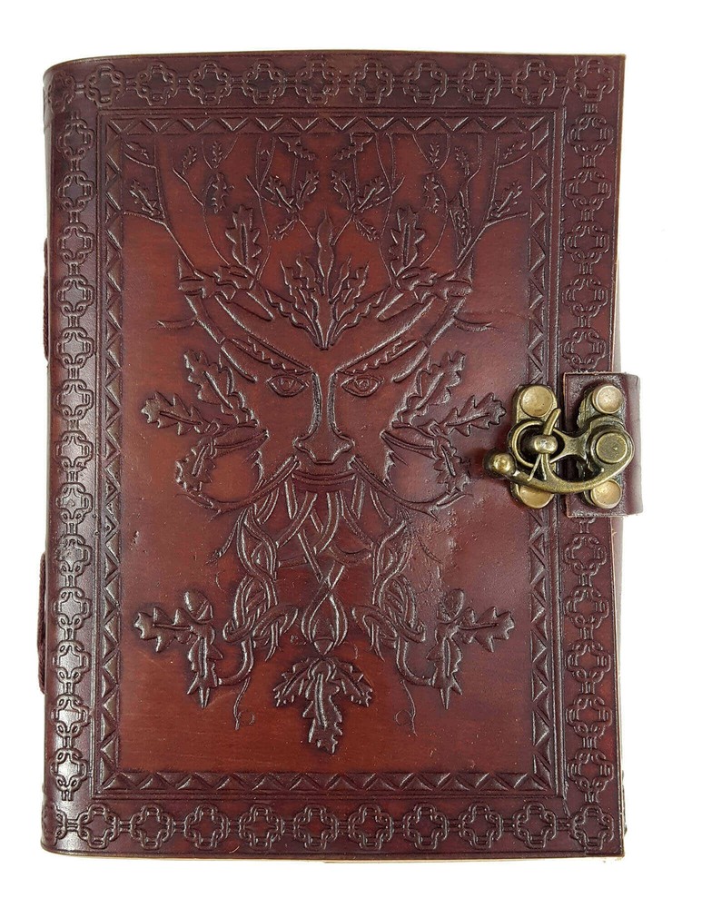 Leather-Bound Greenman Journal Leather-Bound Greenman Journal This greenman journal is really neat! Everyone in the office wanted to run off with my samples when they arrived! Measures 5″x7″, and it’s about an inch thick. It has very old-fashioned, rough-cut, hand-bound pages. The pages are leather bound and cannot be refilled or replaced. They are rustic, handmade and unlined paper pages. Neatest of all, the leather cover folds over and it closes with a brass clasp! Really nice embossed Greenman and knotwork on the front, with knotwork pattern embossed on the back. Each book is hand-made and has its own unique character. Measures Approx. 7″ x 5″ 1″ Old-Fashioned, Rough-Cut, Hand-Bound Pages Leather Bound Cannot Be Refilled or Replaced Rustic, Handmade, and Unlined Paper Brass Clasp Closure Check Out These Journals! When we introduced the Celtic roots journal last winter, they sold out fast! You’ll love our Greenman Journal, if you love mythology surrounding the figure. It also suits tree-huggers. Our classic plain leather-bound journal suits the minimalist types. Dragon lovers choose our Entwined Dragons Journal featuring two dragons. Floral lovers will like our Celtic Knot Journal that has a Celtic knot rosette on the cover. I have a feeling biker chicks would love a Celtic love birds journal . The beautiful trinity knot journal really suits the Celtic tastes of our customers. Shipping Shipping cost: Calculated based on item weights and destination zip code. Delivery time: All orders ship within 1 business day. Payment We accept PayPal. You can use your PayPal account to by by credit card. All payments are processed immediately when you place your order. Please contact us if you have any questions. Service We love happy customers! Returns and exchanges are accepted within 60 days of receiving your order.