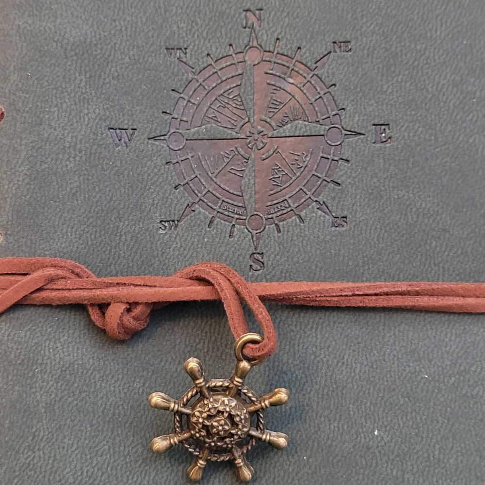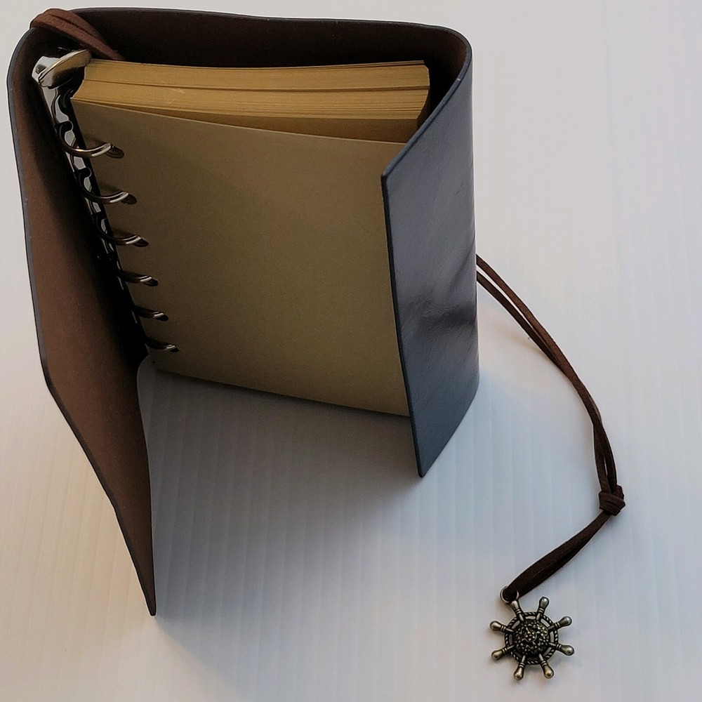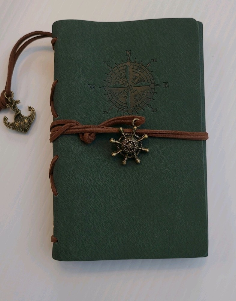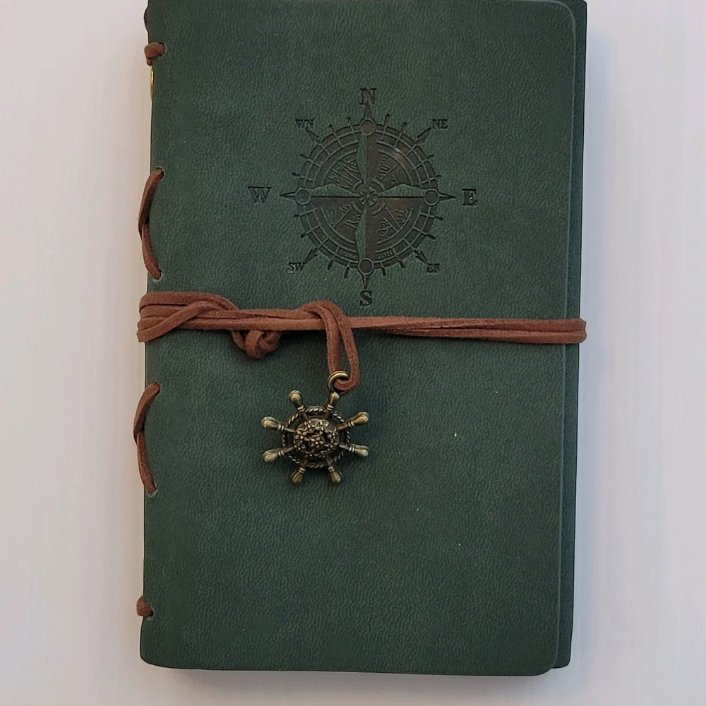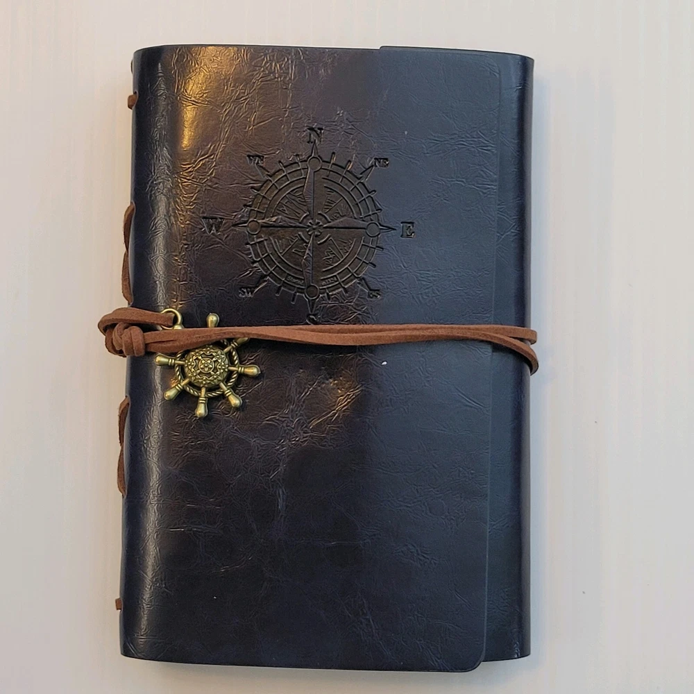 Leatherette Bound Journal Vintage Refillable Lined Pages Loose Leaf Noteboook Leatherette Binder wrap includes an Old-World compass charm, also embossed into the front of the journal. Features a bookmark with an anchor on the end. The 4" x 6" Passport size is ideal for travel.