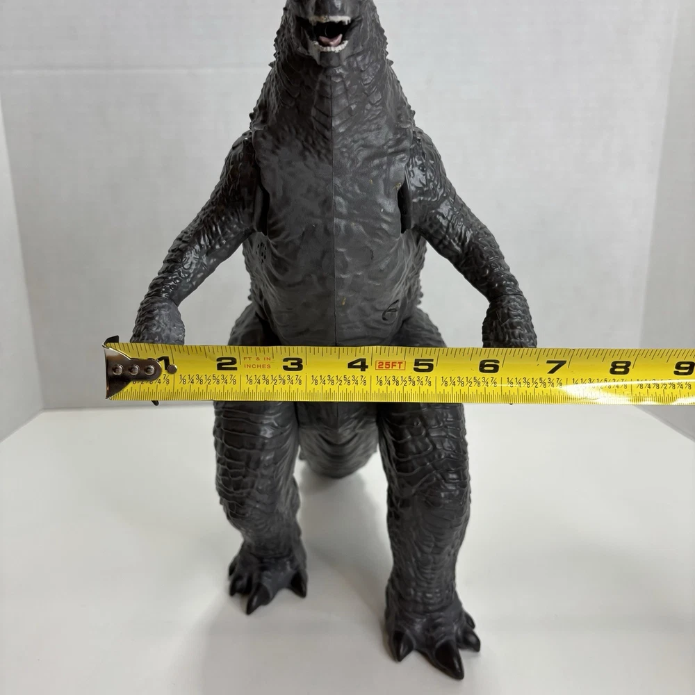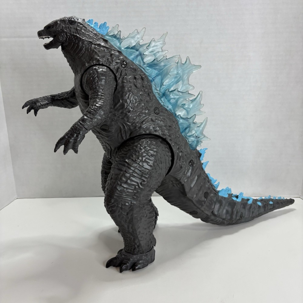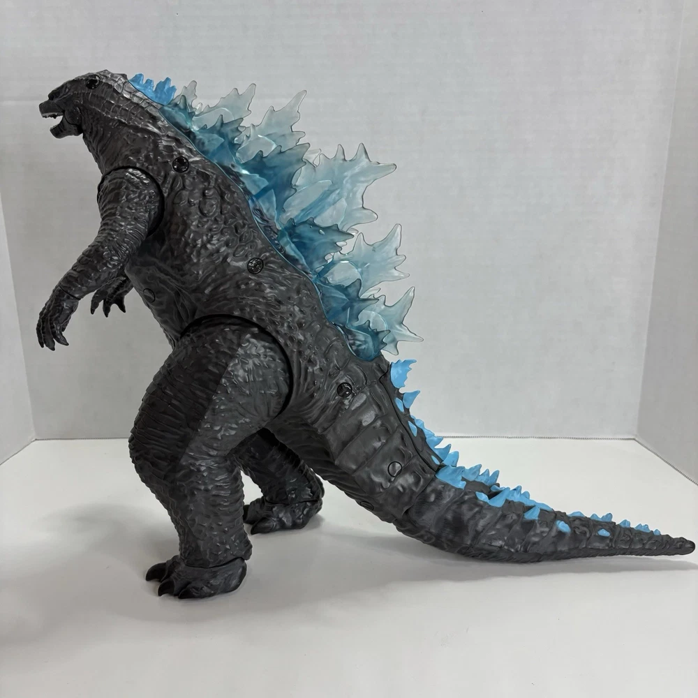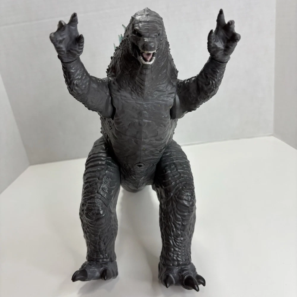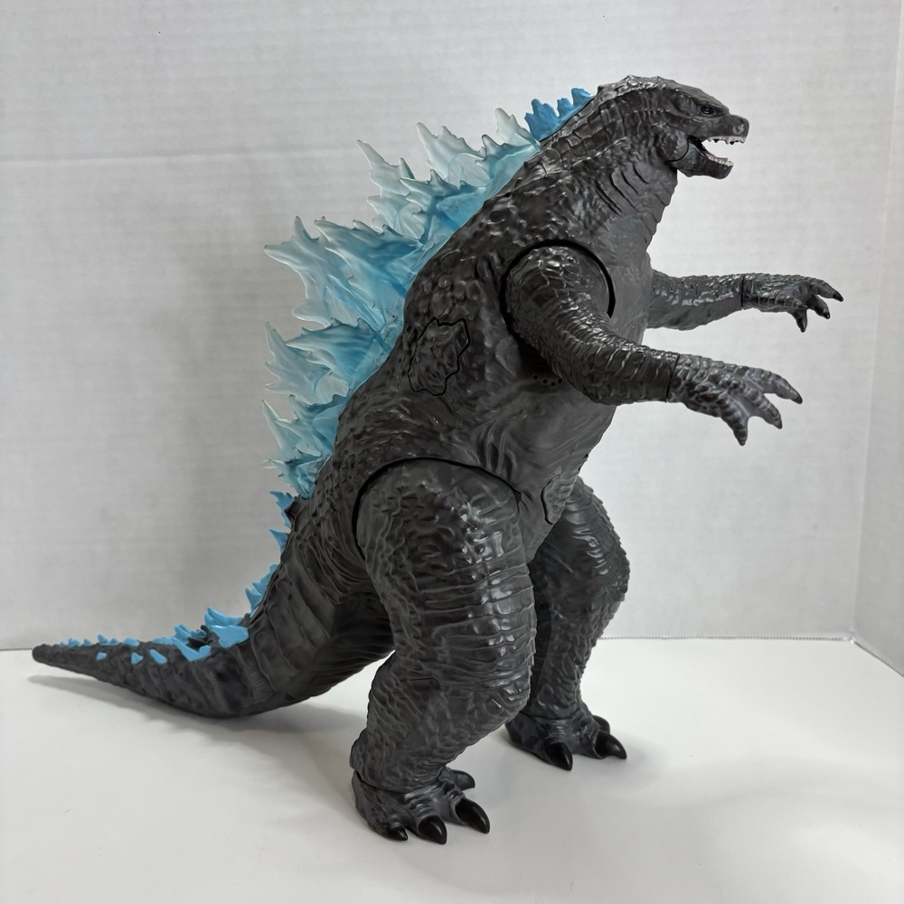 Rare Legendary TOHO Mega Heat Ray Godzilla Figure Lights & Sounds 13"x21" Godzilla VS Kong Playmates 2020 Monsterverse. Tested and Works. Preowned and clean. Incomplete (no fire missile or mini soldier) This Meag Godzilla figure is in Very good Preowned condition. The lights and sound feature works. Joints are good and hold in place. Figure has some very minor paint wear on chest and tail. See pictures for details on overall condition. It requires 3 AAA batteries which are included. The Size: 13 inches tall and 21 inches long. Features; Lights and sounds, including a heat ray effect. Illuminated spines and eyes. Moveable limbs. Detachable tail. Ships USPS in the Continental United States. Will be well packed for shipping. Stored in a smoke free and pet free environment. Thanks for viewing.