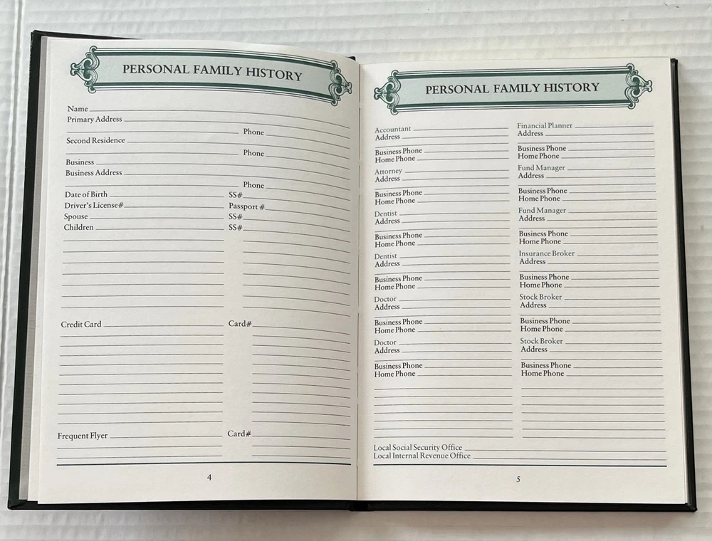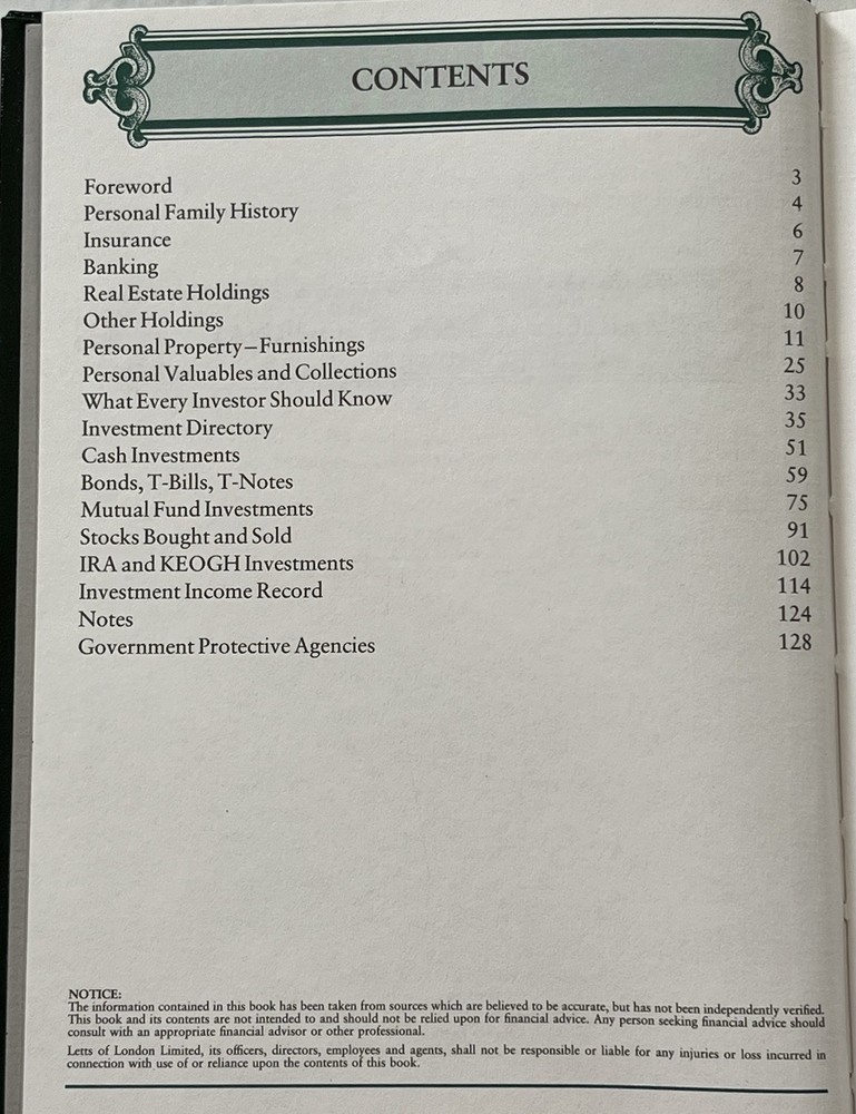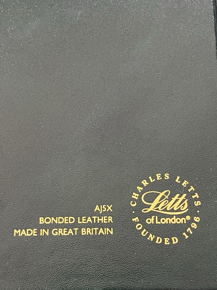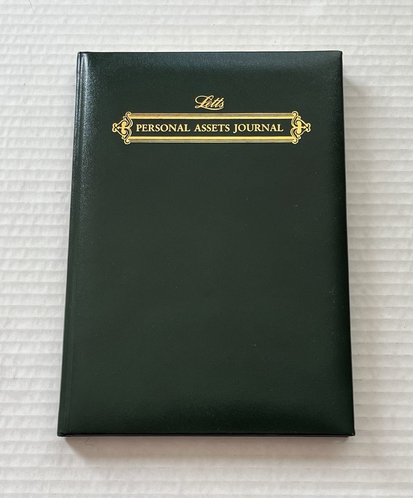 Letts of London Personal Asset Journal Book Leather Bound Hardcover Vintage Green bonded leather cover with gold lettering Table of contents can be viewed in the photos. Book measures approximately 6” x 8 1/2” Condition is Vintage. Unused. Cover is clean. Binding is good. No writing or marks inside. Some of the reference information in this book is outdated.