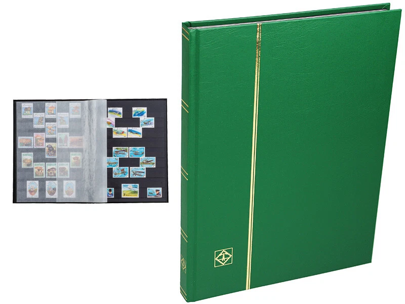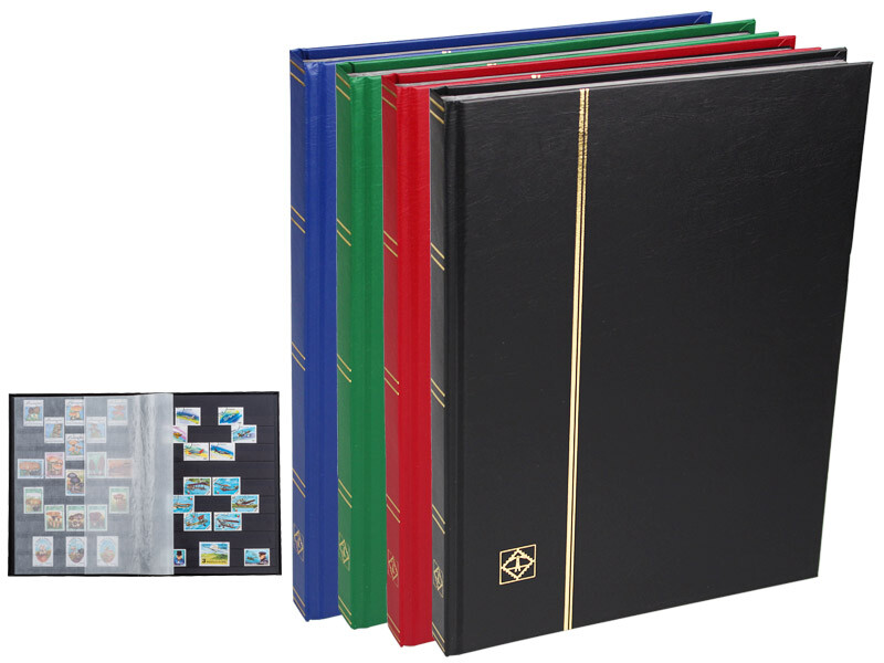 Leuchtturm Stamp Notebook BASIC Black Ground, Hard Cover, Leuchtturm BASIC Stamp Notebook, Available in four color options (Red, Blue, Green and Black), this stamp notebook series is a very ideal stamp notebook for professional collectors. The intermediate separator is located in the separator pergamin. Recommended collector type for this product: For professional collectors. Size Options: A4 + Size (230 x 305 mm.) Number of Pages Options: 32 Black Pages (A5 and A4 + options available) Number of tapes: A4 + Size; 9 Full Acetate tape on Each Page Divider: 2 Pergamine dividers between each page Back: With flexible back Cover: Hard cover Gilding: With Leuchtturm Logo (Golden Yellow Printed) NOTE: Manufactured in Leuchtturm.