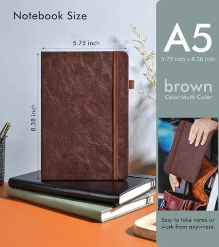 Return Policy Fast Delivery Trusted seller Lined Journal Notebook for Men Women, 200 Numbered Pages Leather Hardcover Journal with Pen, A5 Journaling Notebooks, Thick Paper College Ruled Journals for Writing Work Business 5.75'' X 8.38'' Brown Product Description 【Hardcover Leather Journal with Pen】Adopt premium hard cover leather make the lined notebooks more sturdy and touched comfortably, and will help to protect the pages inside and provide a comfortable writing surface. Which have a brown sumptuous vintage look, classic design style makes the notebook never goes out of fashion. What's more, our journal notebook is designed with your convenience in mind. It comes with a pen set, providing you with all the tools you need to bring your words to life. 【200 Numbered Pages with Contents】This leather notebook is specifically designed to provide you with all the writing space you need. It includes 200 pages numbers and a 3-page blank table of contents, you can jot down important notes from various pages and note them in the front of the book for easy and fast reference. Premium thick acid-free ivory paper that's smooth to the touch and thicker than your average notebook. Which ensures that t will no ghosting or bleed-through on your pages. 【Versatile and Functional Journal】Our hardcover journaling notebooks come with elastic closure design ensures that the notebook remains securely closed, keeping your notes and thoughts confidential. Additionally, the two exquisite ribbons bookmarks and a pen holder offer practicality, 2 index tabs stickers for papers classifying and marking. Back inner pocket making it easy to organize your things. Small a5 size 5.75"x8.38" notebooks, you can relax and confidently carry it on your trip. 【180°Lay Flat Design】 Make a statement with the stylish brown edge of this journal notebook, adding a touch of vibrancy to your writing experience. The 180°lay flat design allows for seamless writing and effortless page-turning, enhancing your comfort and convenience. Standard 8mm space classic college ruled journals. Each page has “Memo No” and “Date” header to help you keep track of the date. Unleash your creativity with this notebook, tailor-made for journaling notebooks enthusiasts. 【Wide Usage】This leather bound journal for men women is perfect for office, business work, school, or personal use. Its premium quality, combined with the included pen set, makes it suitable for professionals, students, and creative individuals in any setting. From boardrooms to classrooms and home, this notebook is your trusted companion for capturing ideas, taking notes, and unleashing your imagination. The diary journal is idea for a special gift you can share with your friends and family. Shipping Returns Payment Shipping Shipping is FREE to all addresses other than APO/PO boxes in the lower 48 states. All our stock ships from US-based warehouses. Shipped via USPS or UPS (depending on location and package weight) Unless stated otherwise, all orders will ship within 24-72 hours of your payment being processed. Check our feedback to see the great reviews of FAST shipping we offer. Returns Seller does not accept returns Payment We currently accept payment via eBay managed payments only. Once payment is cleared, we will dispatch your shipment within 1-3 business days. Please refer to the "Shipping" tab for more information regarding shipping speed to your destination.