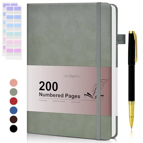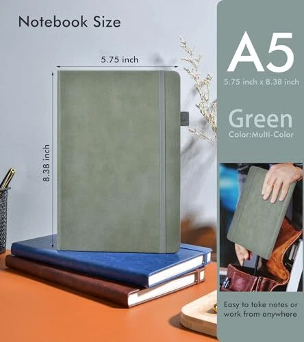 Return Policy Fast Delivery Trusted seller Lined Journal Notebook for Men Women, 200 Numbered Pages Leather Hardcover Journal with Pen, A5 Journaling Notebooks, Thick Paper College Ruled Journals for Writing Work Business 5.75'' X 8.38'' Green Product Description 【Hardcover Leather Journal with Pen】Adopt premium hard cover leather make the lined notebooks more sturdy and touched comfortably, and will help to protect the pages inside and provide a comfortable writing surface. Which have a green sumptuous vintage look, classic design style makes the notebook never goes out of fashion. What's more, our journal notebook is designed with your convenience in mind. It comes with a pen set, providing you with all the tools you need to bring your words to life. 【200 Numbered Pages with Contents】This leather notebook is specifically designed to provide you with all the writing space you need. It includes 200 pages numbers and a 3-page blank table of contents, you can jot down important notes from various pages and note them in the front of the book for easy and fast reference. Premium thick acid-free ivory paper that's smooth to the touch and thicker than your average notebook. Which ensures that t will no ghosting or bleed-through on your pages. 【Versatile and Functional Journal】Our hardcover journaling notebooks come with elastic closure design ensures that the notebook remains securely closed, keeping your notes and thoughts confidential. Additionally, the two exquisite ribbons bookmarks and a pen holder offer practicality, 2 index tabs stickers for papers classifying and marking. Back inner pocket making it easy to organize your things. Small a5 size 5.75"x8.38" notebooks, you can relax and confidently carry it on your trip. 【180°Lay Flat Design】 Make a statement with the stylish green edge of this journal notebook, adding a touch of vibrancy to your writing experience. The 180°lay flat design allows for seamless writing and effortless page-turning, enhancing your comfort and convenience. Standard 8mm space classic college ruled journals. Each page has “Memo No” and “Date” header to help you keep track of the date. Unleash your creativity with this notebook, tailor-made for journaling notebooks enthusiasts. 【Wide Usage】This leather bound journal for men women is perfect for office, business work, school, or personal use. Its premium quality, combined with the included pen set, makes it suitable for professionals, students, and creative individuals in any setting. From boardrooms to classrooms and home, this notebook is your trusted companion for capturing ideas, taking notes, and unleashing your imagination. The diary journal is idea for a special gift you can share with your friends and family. Shipping Returns Payment Shipping Shipping is FREE to all addresses other than APO/PO boxes in the lower 48 states. All our stock ships from US-based warehouses. Shipped via USPS or UPS (depending on location and package weight) Unless stated otherwise, all orders will ship within 24-72 hours of your payment being processed. Check our feedback to see the great reviews of FAST shipping we offer. Returns Seller does not accept returns Payment We currently accept payment via eBay managed payments only. Once payment is cleared, we will dispatch your shipment within 1-3 business days. Please refer to the "Shipping" tab for more information regarding shipping speed to your destination.