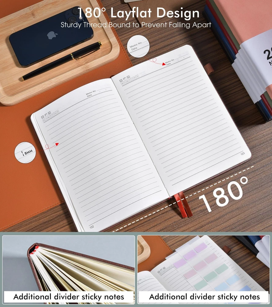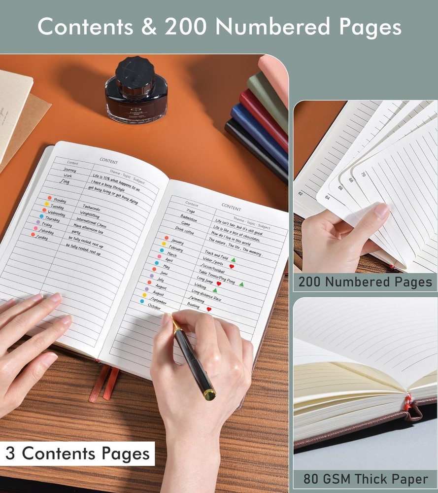 This journal is a perfect blend of style and function! The high-quality leather cover feels luxurious, and the thick, lined pages make writing a pleasure. I love the built-in pen holder and bookmark—so convenient for work or travel. The A5 size is just right, easy to carry but spacious enough for notes. The numbered pages keep everything organized, and the paper doesn’t bleed through. Great for business, journaling, or gifting!