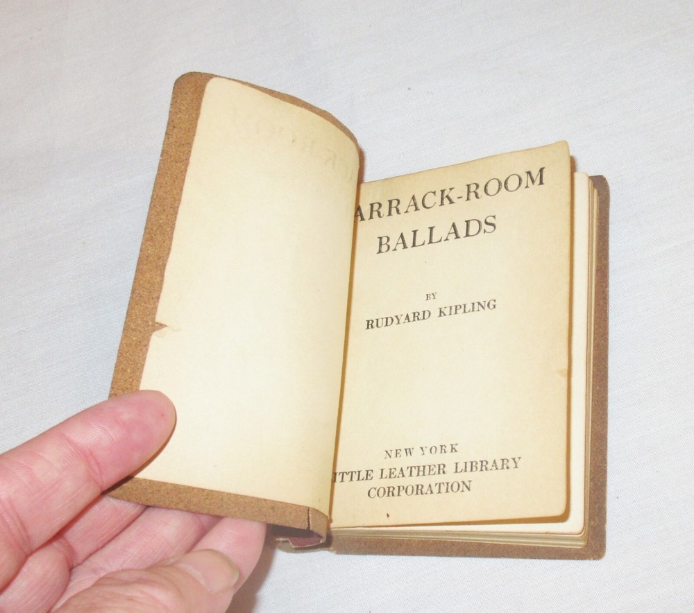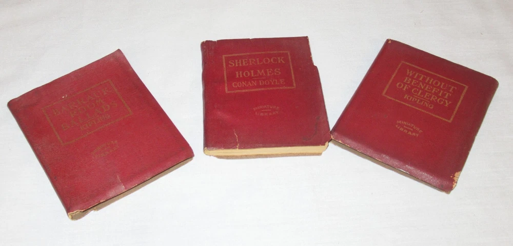 Little Leather Library. 3 Books. Barrack-Room Ballads And Other Poems by Rudyard Kipling; Sherlock Holmes by R. S. Conan Doyle and Without Benefit of Clergy by Rudyard Kipling. Published by Little Leather Diary, New York. Publications dates are not noted but research indicates 1920s. Each book measures approxcimately 4" X 3." All books are fragile. Best possible photos taken without damaging the books. Please carefully review photos for wear and issues. Please feel free to ask questions. Reasonable offers are welcome. Sold As Is. Shipping to continental US States only via USPS Media Mail.