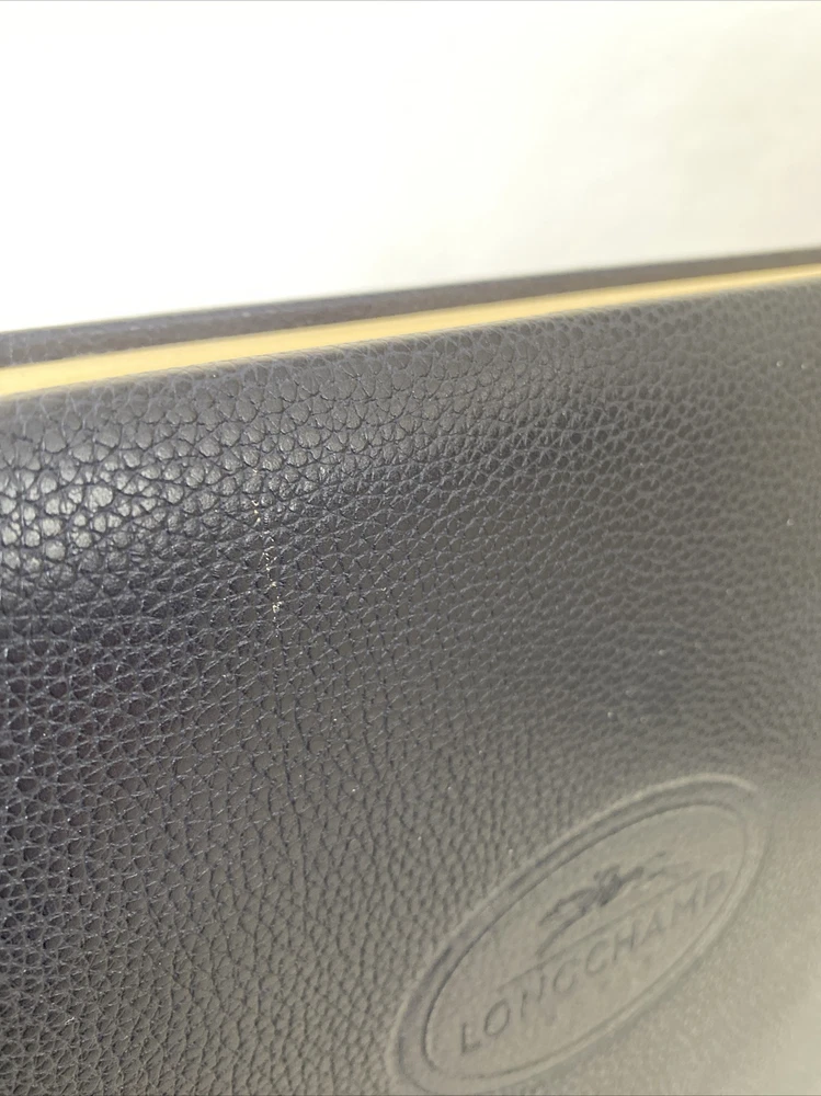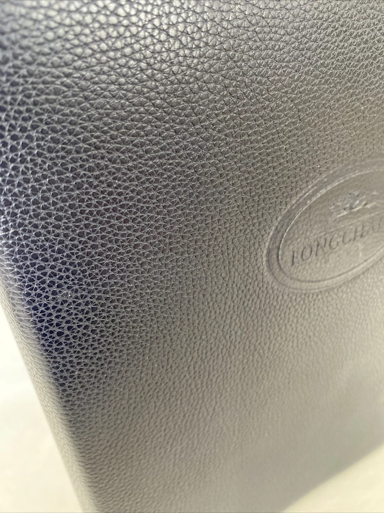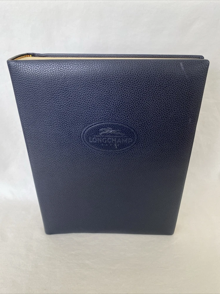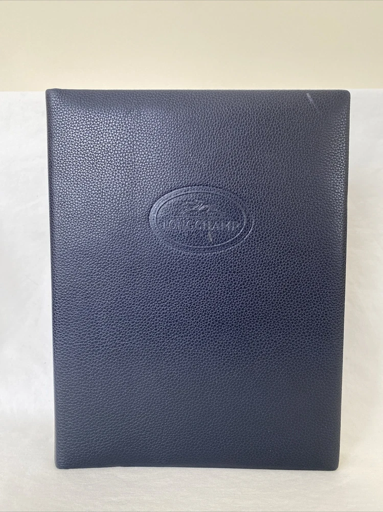 Beautiful VINTAGE LONGCHAMP NAVY PEBBLE GRAINED PHOTO ALBUM, new and rare! Personally purchased by me many years ago at a Longchamp boutique. NEVER USED. It has been stored away all these years in its dust bag, away from the elements and in a temperature-controlled environment. Book-bound. The Longchamp logo is embossed on the front. The leather is in generally very good condition save for a few cosmetic rubs on the front cover which I think can be gently buffed. Has 48 stiff paper pages, each with a layer of very thin glassine protector sheets on them to protect photos (very old fashioned!). The album is 9” x 12”, and photos must be glued or taped on. That said, you can put in pretty much any size /combination of photos on each page that is 8x10 or smaller. AMAZING VINTAGE LONGCHAMP PIECE! I have not been able to see any similar items anywhere. Comes with a big white Longchamp dust bag.