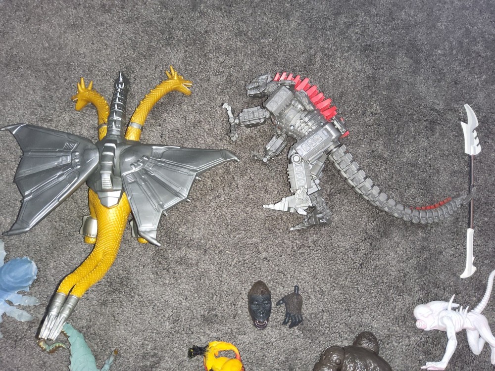 Mechagodzilla is electronic and works fine. Everything is in nice shape except the predator staff is broken and the alien is missing an arm.