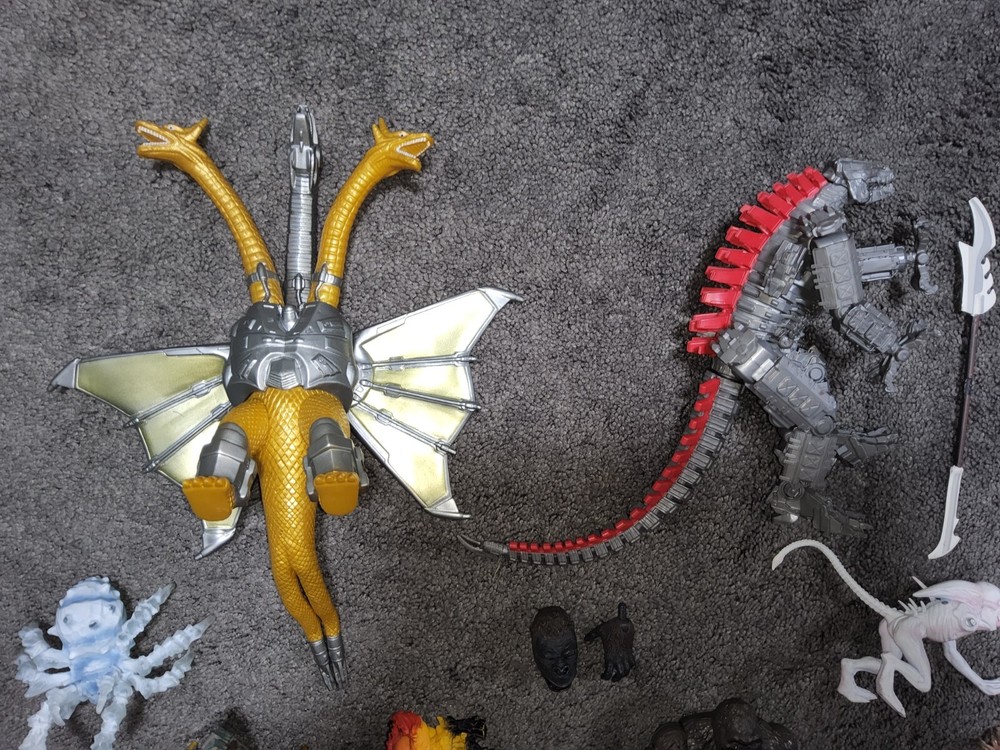 Mechagodzilla is electronic and works fine. Everything is in nice shape except the predator staff is broken and the alien is missing an arm....