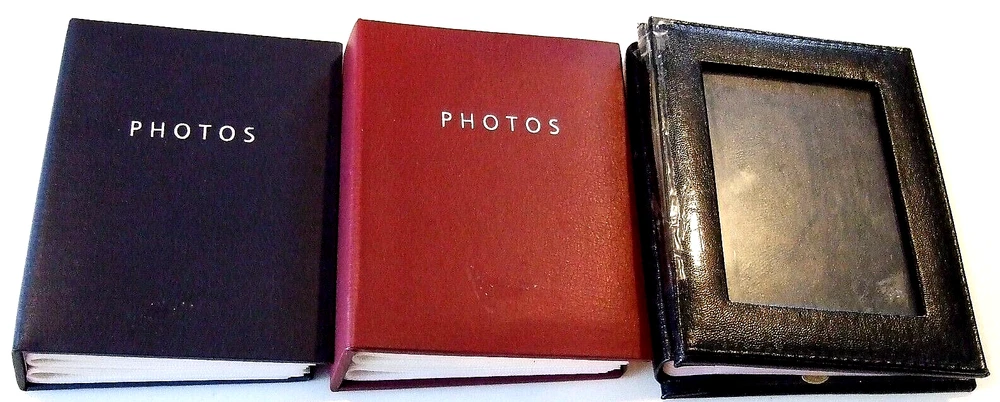 Up for sale is Lot of 3 Mini Photo Albums for 4" x 6" Size Photos - Hold Total of 270 Photos. The red and blue each holds 100 - 4" x 6" Size Photos. The outside is made from a very thick and strong cardboard. These each measure approx. 6-3/8" H x 5"W x 2" D. Both of these are in excellent condition. The third photo album is black in color with a clear plastic window to the front to insert a photo, holds a total of 70 photos - 4" x 6" and is made of faux leather. This photo album has tape to the outside binding, but the rest of the album is in great condition. This album measures approx. 6-5/8" H x 5-3/8" SW x 1-5/8" D. Each album has plastic clear sheets that the photo slides in to. If you have any questions about this item, please email me before bidding. I ask that only serious bidders need bid on my items. I do not sell on eBay to earn a living at it and I am not a "store" type seller. I list my items to the best of my ability with no intentions to mislead in the description of the item. I therefore do not accept returns unless my description of the item is purposely misleading to the Buyer. In such a case, a refund will be given for the sale price only. Shipping costs are not refunded in any way. I cannot guarantee that all my items do not come from a smoke-free home so if this bothers you, please do not bid. I sometimes list items for others and can not say who has handled them. PAYMENT I expect communication from the winning bidder via email within 3 days of auction closure. Payment is expected within 7 days or I reserve the right to re-submit the item for auction and will submit a Non-Paying Bidder Warning to Ebay. Payment is only allowed via PayPal per EBay rules. Please note that PayPal is free to buyers. If additional time is needed to submit payment, please contact me ASAP. SHIPPING Please note: The definition of shipping is the cost of getting the item to you. The definition of handling is packaging, labor, gas, ebay fees, paypal fees, etc. If you do not wish to pay the shipping and handling charges, do not bid. The item will be shipped to you within 3 days from payment clearing. I will ship within the United States only (this includes Alaska, Hawaii, etc.). I do not ship to Canada or Internationally. Do not bid if you live outside the United States. FEEDBACK I promise to leave feedback for each and every feedback received. Please be sure to leave feedback, which assures me that you received your item and that you are satisfied with your purchase. If for some reason you are not satisfied, please email me before leaving feedback so that we can attempt to resolve the issue.