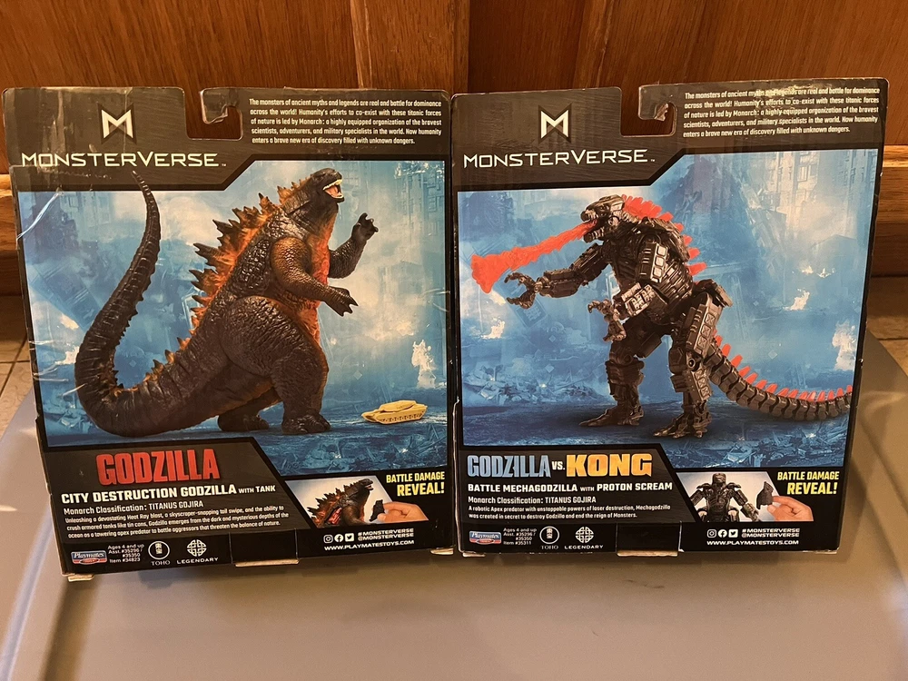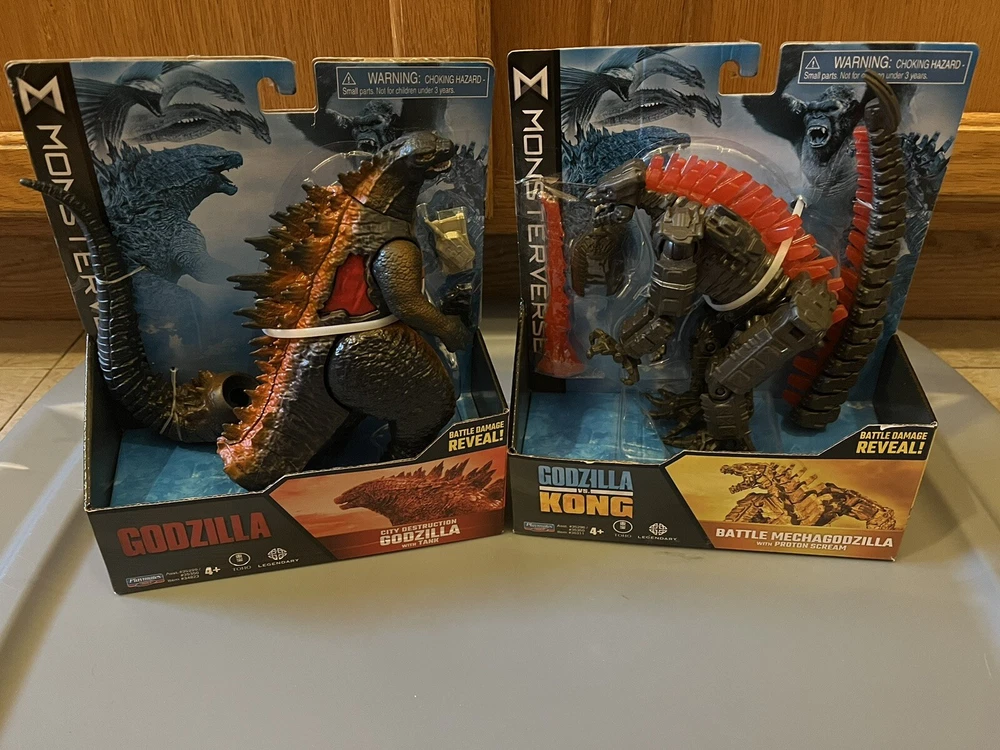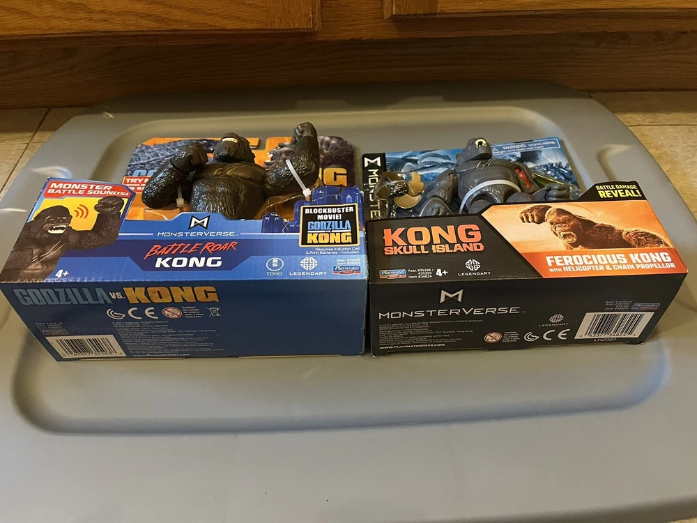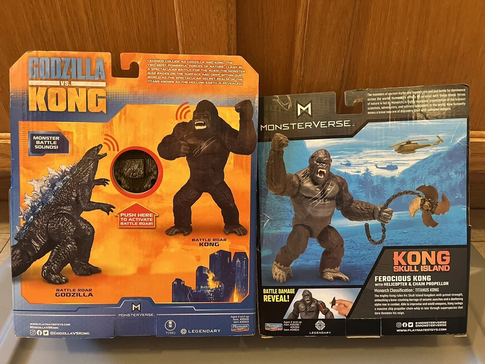 LISTING INCLUDES ALL 5 FIGURES, ALL 5 ARE BRAND NEW, NEVER BEEN OPENED. This lot of 5 action figures from the Monsterverse features the iconic characters of Godzilla, Kong, and Mechagodzilla. With sizes ranging from 11 inches and up, these figures are perfect for fans of the 2020 movie Godzilla vs. Kong and the Kong Skull Island franchise. The recommended age range is 4+, making these toys great for collectors and kids alike. The figures are made by Playmates Toys and were manufactured in the United States. The theme of these action figures is the epic battle between Godzilla and Kong, which is sure to captivate any fan of the Monsterverse. The lot includes a variety of different characters, each with their own unique design and features. Whether you're a collector looking to add to your collection or a parent looking for a great gift for your child, this lot of Monsterverse action figures is a must-have.