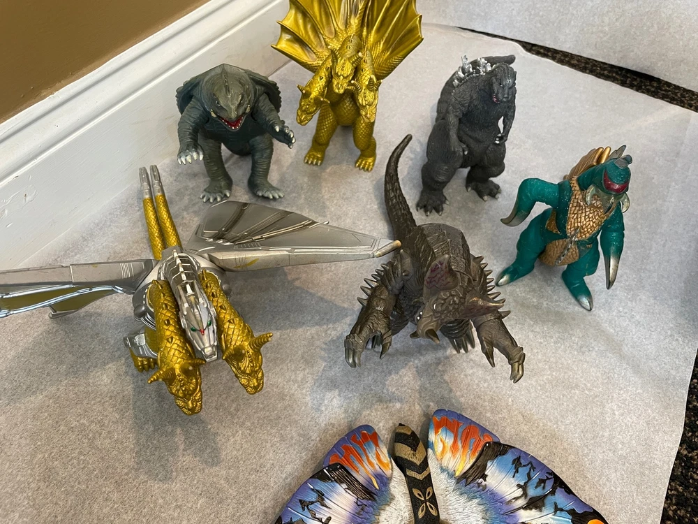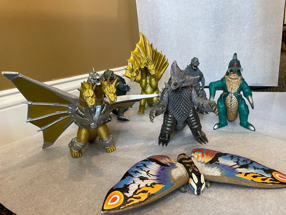 Lot of 7 Godzilla Figures Godzilla Dagahara Kaiju Gigan Gamore NICE Lot of 7 Godzilla Figures Godzilla Dagahara Kaiju Gigan Gamore NICE You never know what you are going to find in Kai's Garage. Be sure to look at our story: Kai's Garage on Judy Lane.... This is a lot of seven (7) Action Figures featuring Godzilla and characters produced by Bandai from the late 1990's - 2000's. They are in great/excellent condition. See individual descriptions. The lot includes: 1 - Mothra Dagahra: wingspan measures approx 10 inches, colors bright, some wear on the bottom side, 2009 1 - Godzilla: approx 7 inches tall, in the classic 1954 GodzillaDesign, minor wear, 2009 1 - Ghidorah: approx 10 inches tall, missing a teeny tiny tip of his horn, minor wear, 1998 1 - Ghidorah with Armor: approx 10 inches tall, minor wear, 1998 1 - monster: approx 7 inches tall, minor wear, 2007 1 - Gigan: approx 7 inches tall, minor wear, 2009 1 - Gamora: approx 7 inches tall, minor wear, 2009 Please review the photos. Figures measure approximately 6-10 inches inches tall. AMESOME Please pay for your item(s) within 24 hours of purchase so your package can go out ASAP! If its going to be day or 2 (or 3) just shoot me a message so I know. THANK YOU FOR SUPPORTING MY SMALL BUSINESS You never know what you are going to find in Kai's Garage so check it out often! Check out our store now SHIPPING Our packing & shipping are top notch - for the safety of your items but also for the environment. We use as many recycled materials as possible because who wants to to clog up landfill with single-use materials? Not me! I have a bunch of kids (and hopefully some grandchildren soon) so let's do our best to keep the earth in good condition (please). Most all items are shipped either USPS GROUND ADVANTAGE or USPS PRIORITY MAIL and I always supply tracking information. However, I'm not NOT RESPONSIBLE for any items mailed and NOT delivered by the USPS. Be sure you ALWAYS supply your correct address. If you have any questions or need help in any way, write me. Listing and template services provided by inkFrog