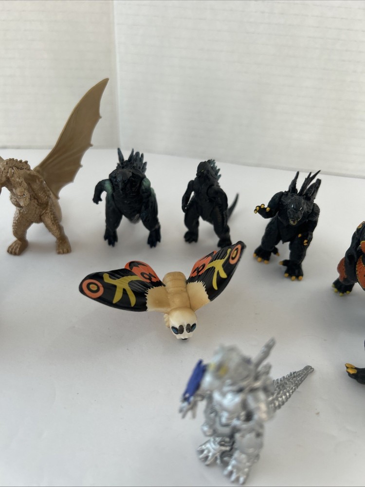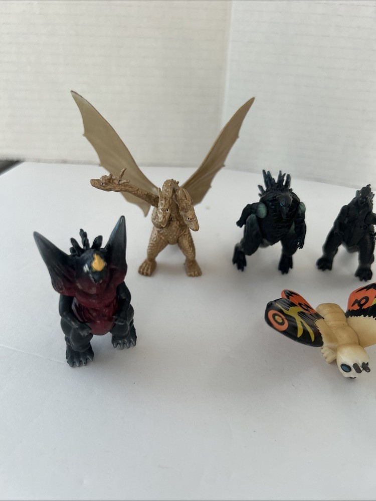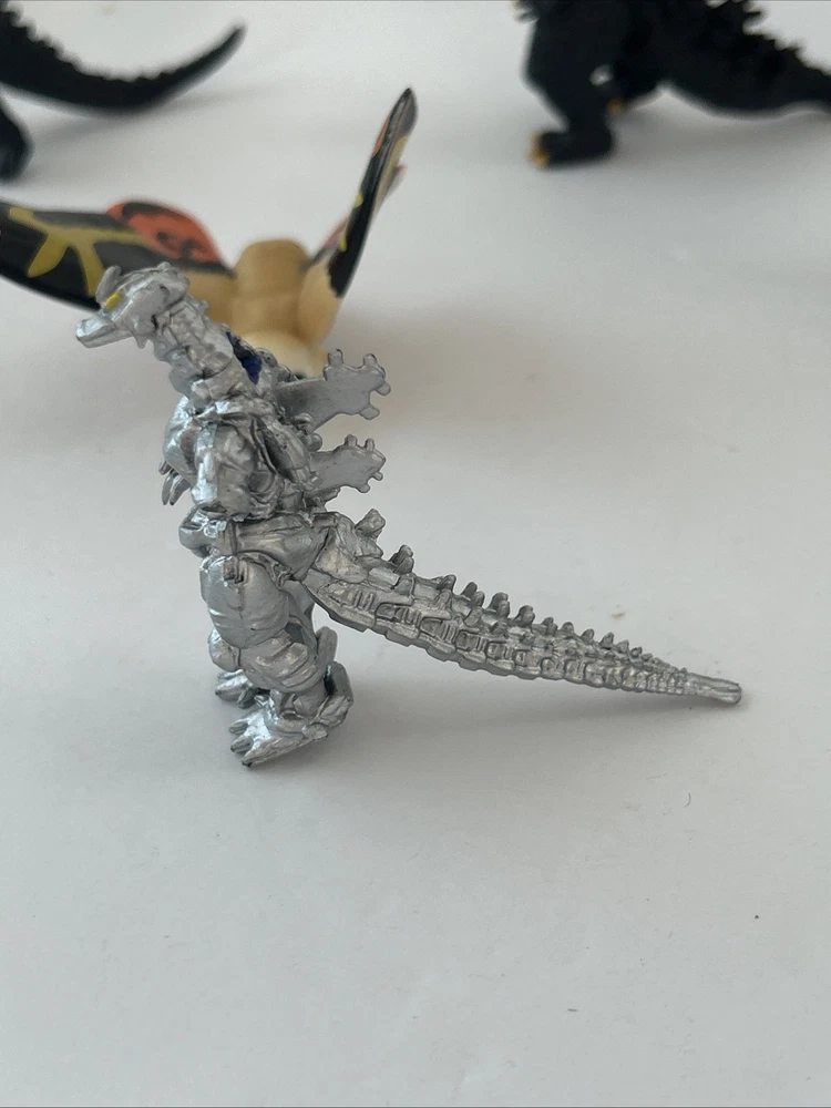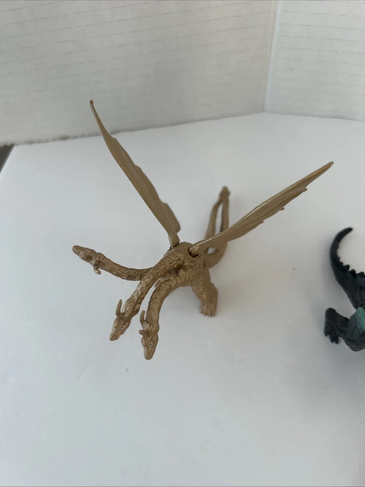 I believe these are Bandai figures...if I am wrong please let me know. The wings do not stay in very well of the 3 Headed Figure. Silver one is missing arm.