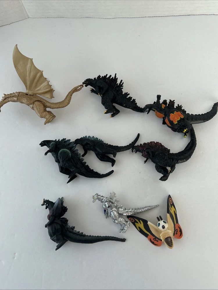 I believe these are Bandai figures...if I am wrong please let me know. The wings do not stay in very well of the 3 Headed Figure. Silver one is missing arm....