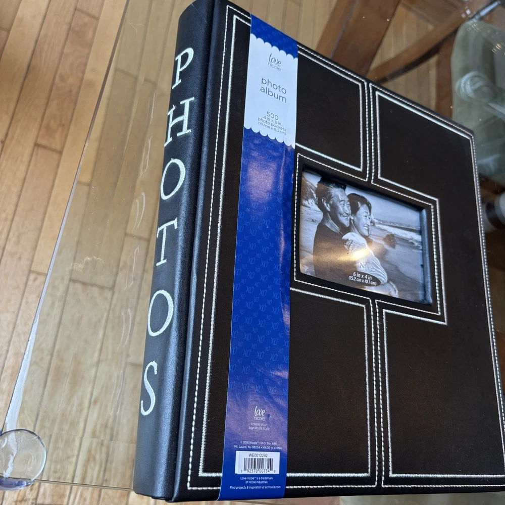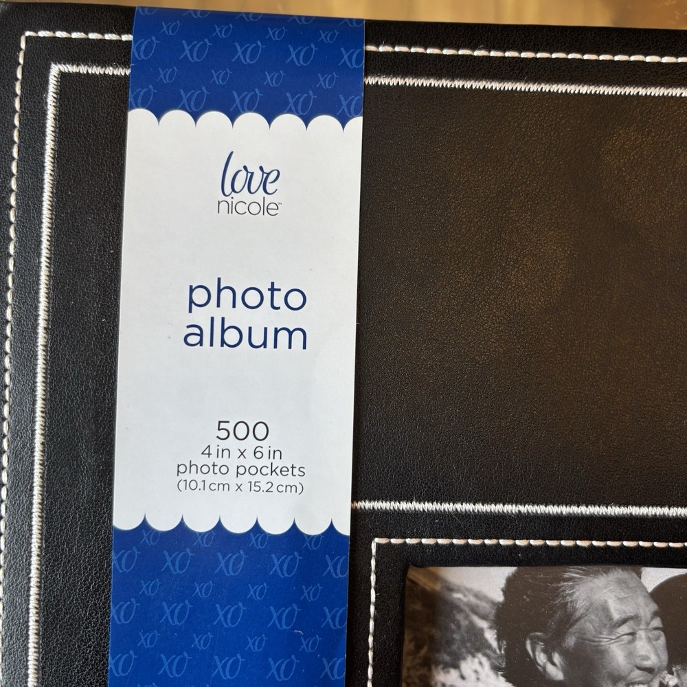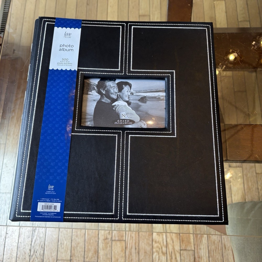 Capture and preserve your cherished memories with the Love Nicole 500 4”x6” Black Photo Album. This book-bound album features a sleek faux leather cover in a classic black and white color scheme, providing a stylish and timeless look for your photography collection. The slip-in design makes it easy to insert and protect your 6x4 photos, ensuring they stay secure and display beautifully. With a generous capacity to hold up to 500 photos, it's ideal for organizing a wide range of memories from special occasions, family gatherings, or personal moments. Whether you're a photography enthusiast or simply looking to keep your memories safe, this Love Nicole photo album is a perfect choice for safeguarding your images and sharing them with others.