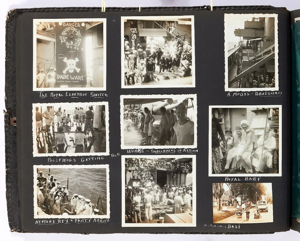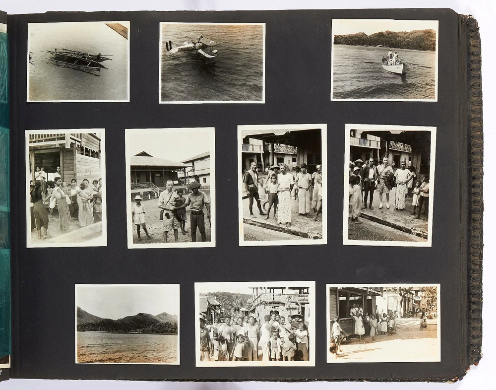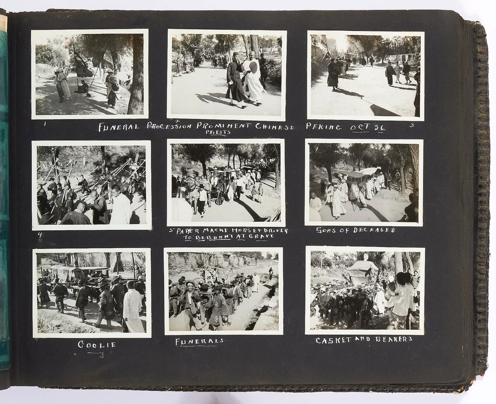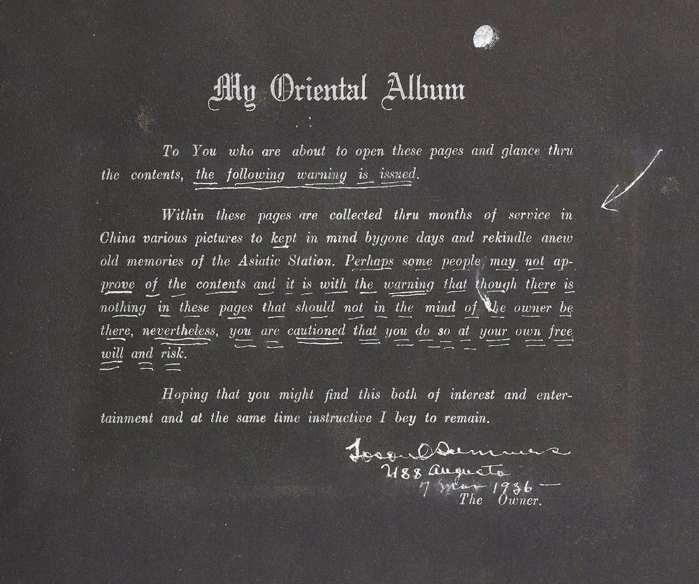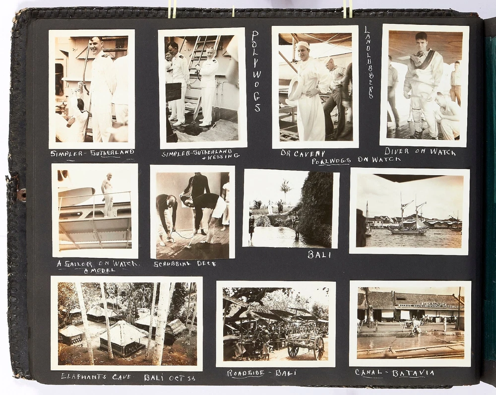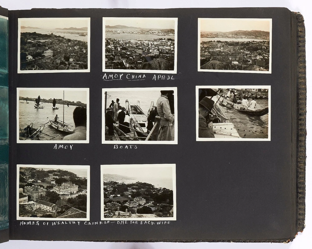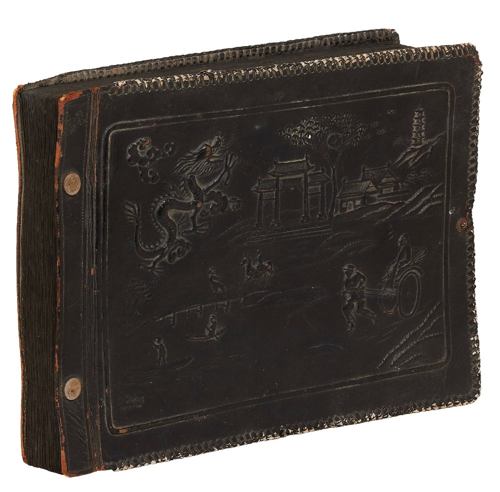 Photo Album of Medical Officer of the Asiatic Fleet Flagship "Augusta" Author: SUMMERS, Lt. Commander Toson O. Title: Photo Album of Medical Officer of the Asiatic Fleet Flagship "Augusta" Publication: China, Southeast Asia, and Japan: 1936 Description: Softcover. Oblong quarto. Measuring 15" x 11". Full decorative embossed leather album bound with steel rivets. 102 pages interleaved with tissue containing 846 mostly black and white gelatin silver photographs; measuring between 1.25" x 1.5" to 7.75" x 9.75", with most measuring between 2.5" x 3.75" to 3.75" x 5". Approximately three-quarters of the photos are captioned and a few items of ephemera tipped in. Approximately 25-30 are commercial images or real photo postcards, but the vast majority are well-composed snapshots. Album is very good or better with some scuffing and loss to the lower corner of rear cover and lacking the clasp; contents are generally fine. This massive album was compiled by Lt. Commander Toson O. Summers, the medical officer of the USS *Augusta* which was the flagship of the Asiatic fleet. The path of the *Augusta* in 1936 is well-documented. Summers went to great lengths to map his tour of duty and this album reflects that concern. It is artfully designed (the album itself handmade by an artist in Chefoo (now Yantai), very well-captioned, and filled with an extraordinary amount of interesting images. Summers visited many cities in China including Shanghai, Amoy, Nanking, Soochow, Tsingtao, Peiping, and Chingwantao. Additionally Summers compiled many images from Japan, Bali, the Philippines, Singapore, and Indonesia. Summers was an inveterate photographer with a keen eye for street imagery as well as native peoples and their cultures. Though an amateur, he artfully captured dozens of street scenes and markets; businesses such as a hemp factory, farming, restaurants, smugglers, and brothels; and many great birds-eye views of local towns. In addition to all the views of daily life there are more than one series of funerals; others show native dances, a lama service, a Eucharist Congress, acrobats, healers, and more. His landscape pictures are equally well-composed and some images include Mount Fuji, the Cloud Tower, Borabudur, The Great Wall, and various beaches. Additionally there are a couple of dozen images showing life on the ship, including a couple where the men are dressed in drag and one or two of a softball game. One particularly interesting shot shows a man standing between the wings of a seaplane flying over the water; another shows a man with a chicken; others show a line of camels at The Great Wall, a roadside restaurant, and a funeral pyre in Bali. Additionally there are 25 beautifully affected hand-colored images. A few of these are very nice panoramas measuring 3.75" x 11". In all a massive, unique, and comprehensive immersion into the people, lifestyle, culture and scenery of Asia in the years leading up to World War II, much more detailed than all similar albums of the period that we've handled. Seller ID: 409551 Subject: Photography Between the Covers Between the Covers has been selling books for more than 30 years. Today we offer a wide ranging inventory, from Modern First Editions to General Used Books to Rare Archival Collections. We are active members of the Antiquarian Booksellers' Association of America (ABAA) and the International League of Antiquarian Booksellers (ILAB) . Terms All orders ship within two business days. Standard mail is USPS Media Mail. Expedited and international shipping are also available. We offer combined shipping on multiple orders. All books are guaranteed to be as described or they may be returned within 30 days of receipt for a full refund. This listing was created by Bibliopolis.