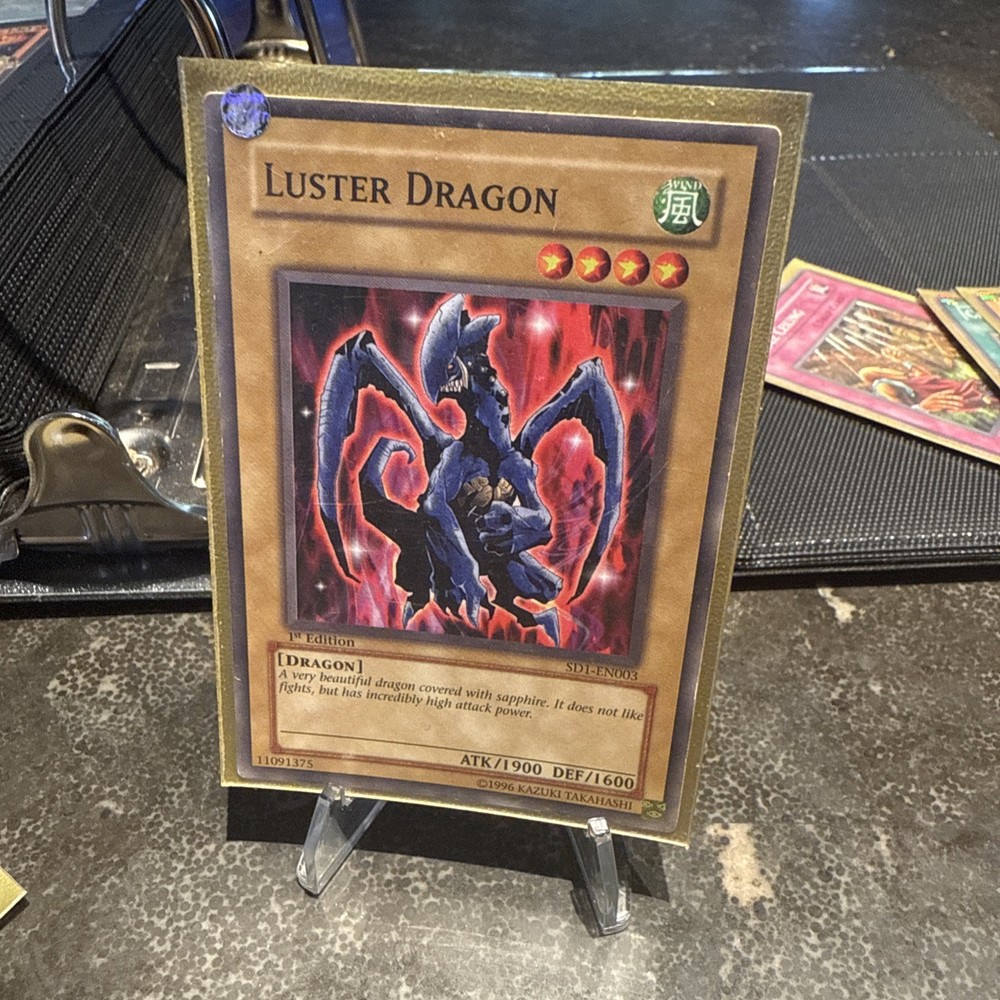 The Luster Dragon SD1-EN003 Structure Deck: Dragon's Roar 1st Edition is a highly sought after card in the Yu-Gi-Oh! TCG. This Wind-type Dragon card has a high Attack/Power of 1900 and a strong Defense/Toughness of 1600, making it a valuable addition to any deck. Manufactured by Konami, this English-language card is a common/short print rarity with the unique 1st Edition feature. Perfect for collectors and players alike, this Normal-type card is a must-have for fans of the game.