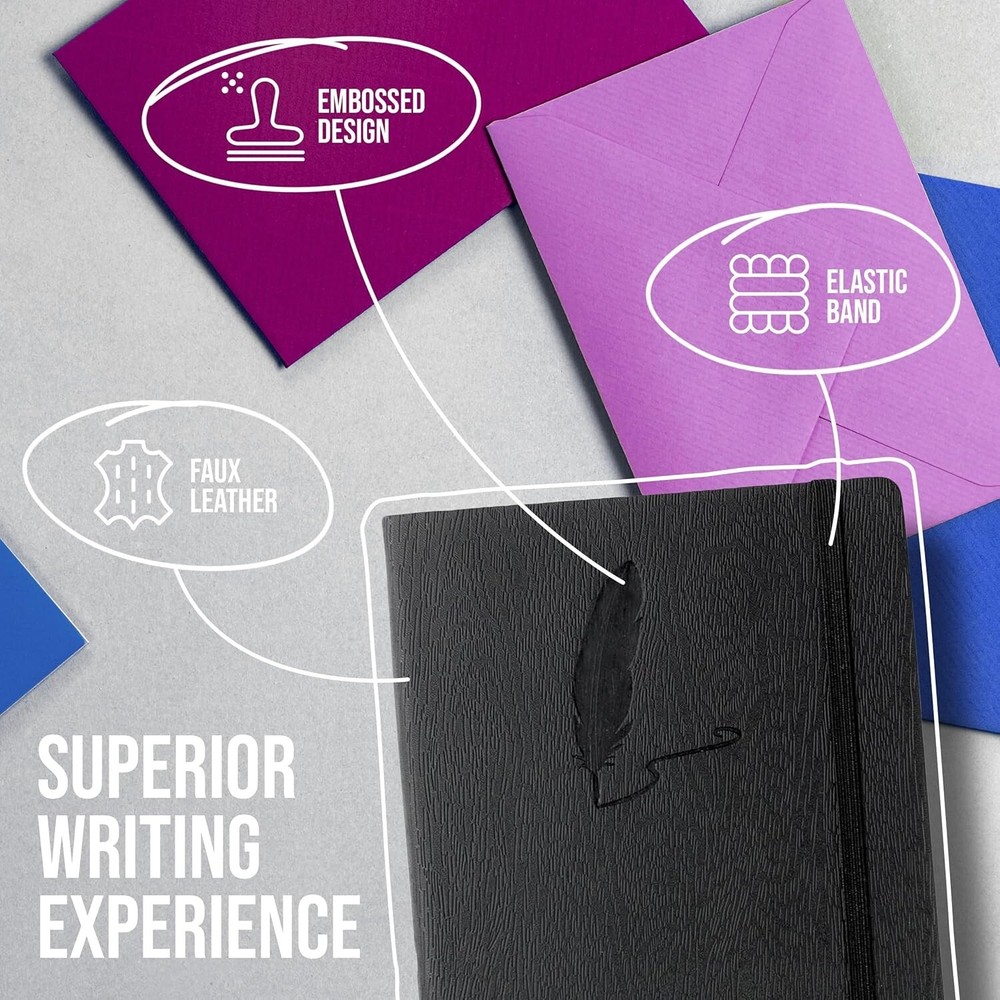 Luxury Black Faux Leather Journal: 240 Lined Pages with Quill Embossing ‹ › ‹ › ‹ › ‹ › ‹ › ‹ › ‹ › ‹ › ‹ › ‹ › ‹ › Luxury Black Faux Leather Journal 240 Lined Pages with Quill Embossing Features: Crafted from high-quality textured PU leather cover adorned with unique quill embossing. Equipped with an elastic band closure to securely keep your thoughts private and prevent accidental openings. Holds 120 sheets (240 pages) of 80g/m² acid-free ivory paper with elegant light grey line printing. Sheet size: 5” x 7” | Journal dimensions: 7.1” x 5.2” x 0.65”. Thread-bound format allows the journal to open flat for ease of writing and reading. Benefits: A perfect canvas for recording thoughts, memories, and ideas — ensuring your musings are captured in a beautifully crafted space. Ideal for midnight ramblings, daily entries, and thoughtful reflections. High ink compatibility on acid-free paper prevents bleed-through, preserving the integrity of your written words. Make an exceptional gift for your loved ones, symbolizing elegance and thoughtfulness. Why choose our Luxury Black Faux Leather Journal? This exquisite journal combines elegance and functionality, designed to elevate your writing experience. Its soft, velvet-like feel and embossed quill design not only reflect luxury but also a commitment to quality. With 240 pages waiting for your thoughts, each entry becomes a cherished memory, a new idea, or a unique story. The thoughtful construction ensures every page turns effortlessly, allowing your creativity to flow freely. Elevate your writing experience and embrace your muse — order your Luxury Black Faux Leather Journal today! Shipping Free & Fast Shipping - We offer free shipping to most of the USA with a normal delivery time of 3-7 days. However, due to the current situation, additional delivery time (up to 3 weeks) may be required for some items. Alternative Carriers - We may use alternative carriers (e.g. USPS, FedEx, UPS, etc.) to ensure your package arrives safely and on time. Due to the use of multiple carriers, we are unable to provide a tracking number automatically. Handling Time - Orders are processed and shipped within 1-2 business days of receiving cleared payment. Shipping Restrictions - Shipping to Alaska, Hawaii, Puerto Rico, Guam, and other US territories may incur shipping charges or delivery restrictions. Please contact us before ordering, or your order can be refunded/cancelled. State Restrictions - There may be restrictions based on your state of purchase. For example, certain items may not be shipped to California due to state regulations. Contact for Tracking Updates - If you require tracking updates or have any concerns about the delivery of your order, please feel free to contact us, and we will be happy to assist you. Return 30-Day Hassle-Free Returns - We want you to be completely satisfied with your purchase. If you are not, you can return the item within 30 days of receiving it for a full refund or exchange. Easy Return Process - To start a return, simply contact us and we will provide you with a prepaid return shipping label and detailed instructions. Restocking Fee - There are no restocking fees for returns. However, the buyer is responsible for return shipping costs if the return is not due to a seller's error. Refund Processing Time - Refunds will be processed within 5 business days of receiving the returned item in its original condition. Payment We accept all major credit cards, PayPal, and Apple Pay for your convenience. Your payment information is secure and encrypted to ensure a safe and seamless transaction. Please complete your payment within 3 days of purchase to avoid any delays in shipping. Feedback Your feedback is extremely important to us. We strive to provide the best products and customer service possible. If you are satisfied with your purchase, please take a moment to leave us a positive review. If you have any concerns or issues with your order, please contact us before leaving negative feedback. We are committed to resolving any problems and ensuring your satisfaction. Contact Us If you have any questions or concerns, please feel free to reach out to our customer support team. You can contact us through the eBay messaging system. We are available Monday to Friday, 9:00 am to 5:00 pm EST, and we will do our best to respond to your inquiry within 24 hours. Buy it now and enjoy a pleasant shopping experience! UPC: Not Set MPN: Not Set Unit Quantity: Not Set Special Attributes: Not Set Brand: Unbranded Cover Material: Faux Leather Country/Region of Manufacture: Not Set Unit Type: Not Set Personalized: Not Set Signed: Not Set