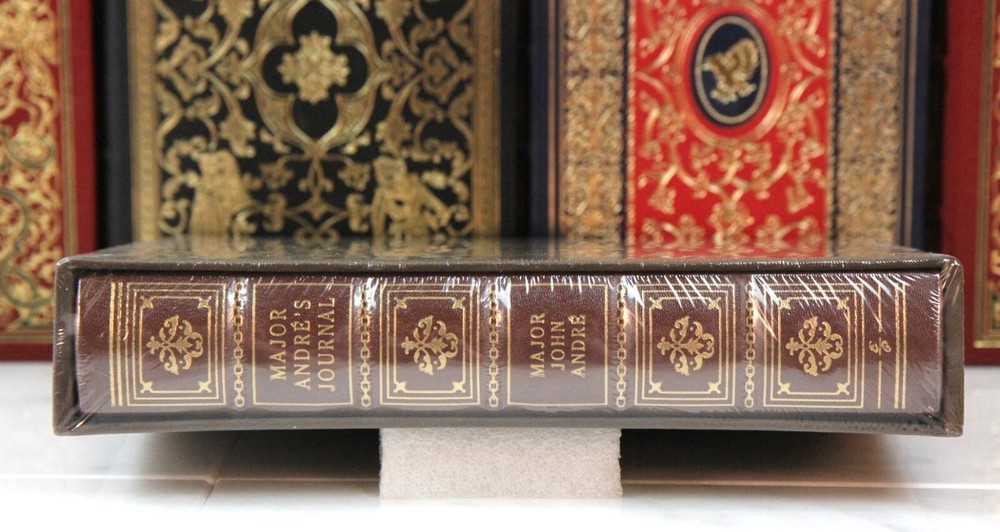 ***Copy of photos, personal formats, graphics, or text is prohibited . Ebay may drop listings with infractions. I review content regularly. Deluxe Limited Edition Major Andre's Journal Author: Illustrations by Description: L imited to just 600 hand numbered copies! Out of print and now extremely scarce. --- John Andre was a major in the British Army and head of its Secret Service in America during the American Revolutionary War. He was hanged as a spy by the Continental Army for assisting Benedict Arnold in his attempted to surrender to the British the fort at West Point, New York. André is typically remembered favorably by historians as a man of honor, and several prominent American leaders of the time including Alexander Hamilton and Marquis de Lafayette did not agree with his fate. Major Andre has been a prominent fixture and enigmatic figure in many books, movies and TV series about the Revolutionary War. -- This edition contains copious maps and details observed in Andre's Journal, along with a few beautiful illustrations added from an original publication. There are pages showing his handwriting, but the overall text is published in modern print to make it accessible to any military or history enthusiast. His cartography skills are on full display with beautiful maps drawn by him, and in several cases in fold-out form as shown in photos 14-15. The pages have a near cotton paper quality feel in a cream color (my photos make them look more white) and my poor lighting with occasional shadows don't do them justice! The beautiful brown leather has extravagant gold detail, to include even down to he spine hubs. This is a wonderful, slightly oversized edition and a historical prize for any well appointed leather library. This is the last copy I have in inventory and I don't expect to see it again, even as I buy more estate libraries in the future. It is a beautiful and scarce book. Condition : SEALED in original plastic. Factory Fresh ***Stock photos of illustrations are from the open copy in my own library. This Fine Leather Book Features: Top grade, gold embossed/ornamented leather Gilded page ends to protect against dust and moisture Decorative end papers Acid neutral archival paper to last generations