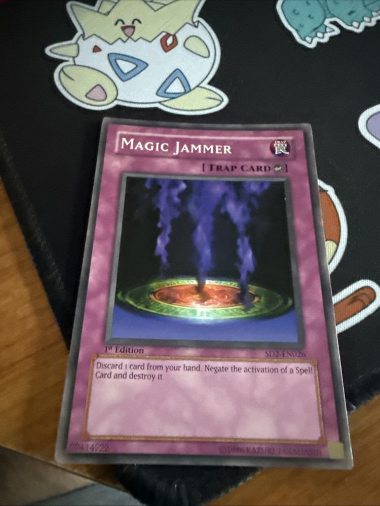 Elevate your Yu-Gi-Oh! TCG gameplay with the Magic Jammer card from the Structure Deck: Zombie Madness set. As a 1st Edition Trap-Counter card, SD2-EN026 provides a strategic advantage by disrupting your opponent's card draws, giving you an edge in battle. Manufactured by Konami and printed in English, this common rarity card is a valuable addition to any collection. With a card number of SD2-EN026, it's a must-have for players seeking to enhance their deck's performance.