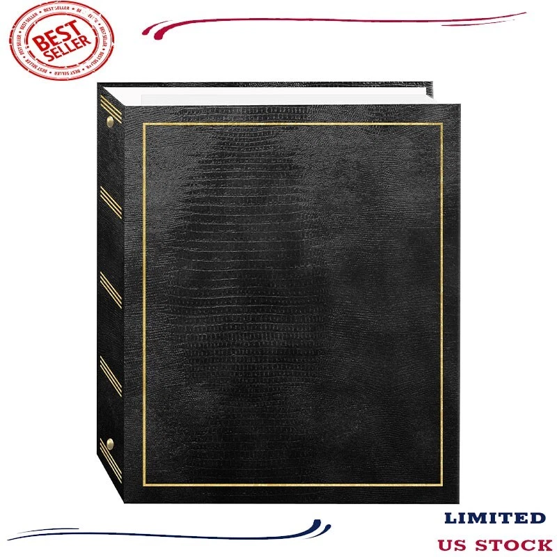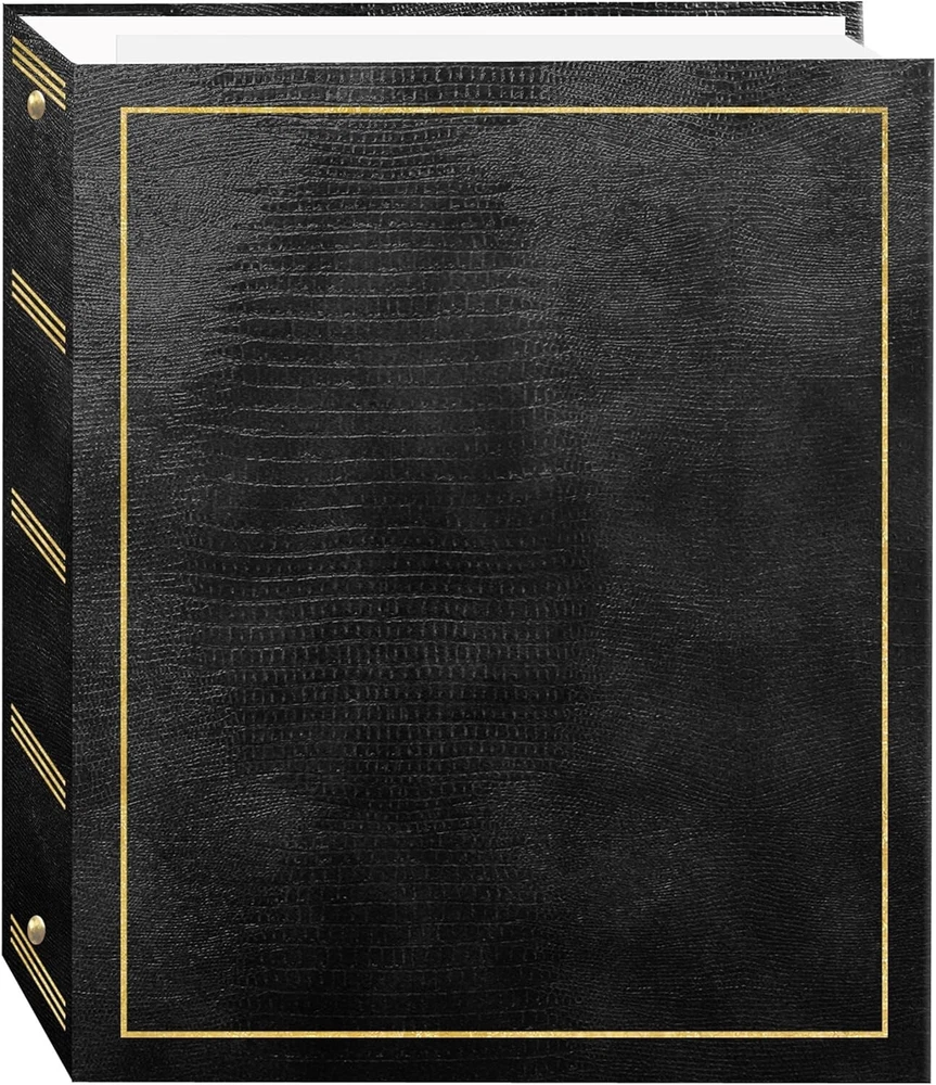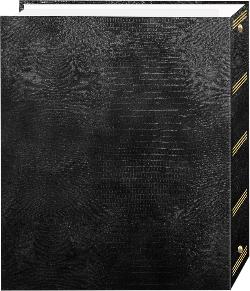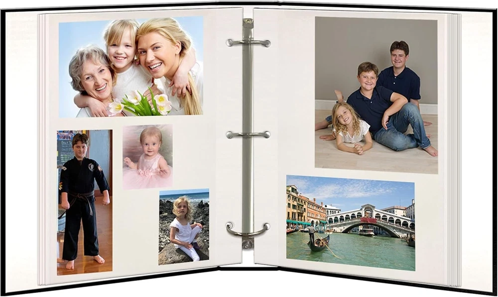 Magnetic Self-Stick 3-Ring Photo Album 100 Pages (50 Sheets), Black, Refillable About this item Fast-Stick magnetic pages feature a clear plastic overlay that self-adheres to the page, securely holding photos Initially contains 100 pages (50 sheets), plus 3-ring binding accepts refills (Style No. RLM) 8.25''x10.5'' pages hold many size photos including 2.5"x3.5" wallet, 4"x6", 5"x7", 6''x8'' and more Leatherette cover with gold stamping Photo safe: acid and PVC emission free